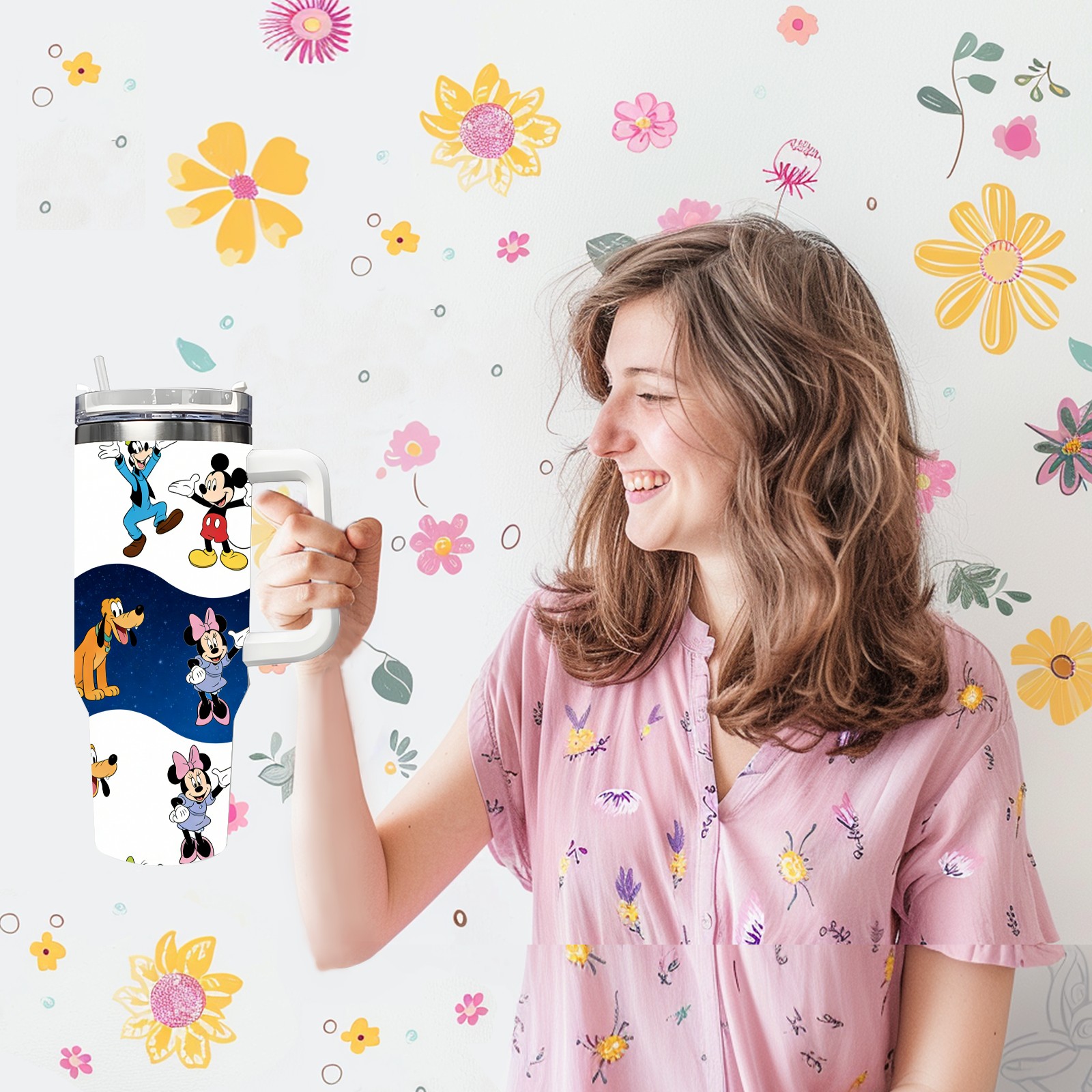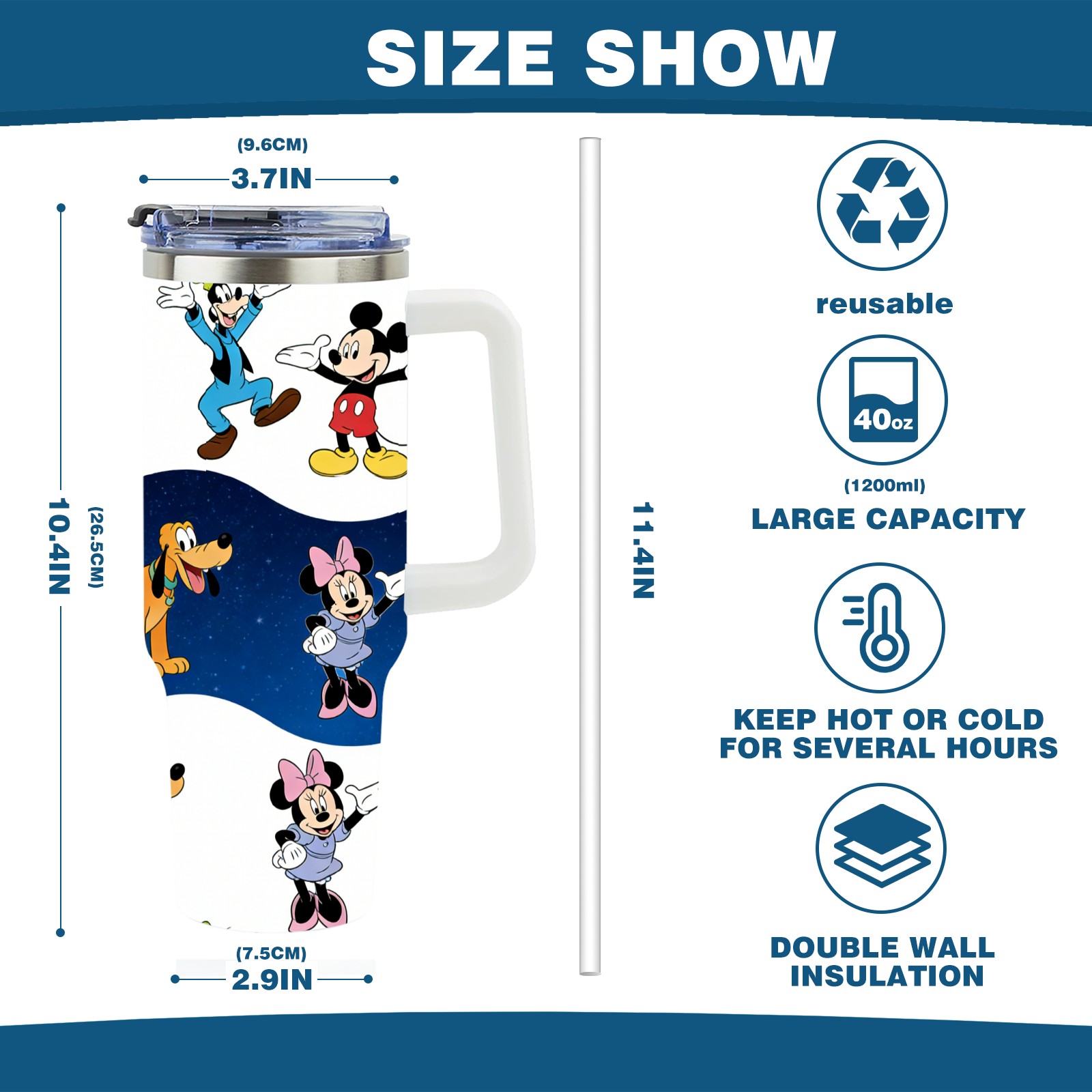 40oz 生成特定风格图片 (63) thermos with lid and straw, leak-proof stainless steel, with handle, spill-proof bottle, convenient for travel(white)