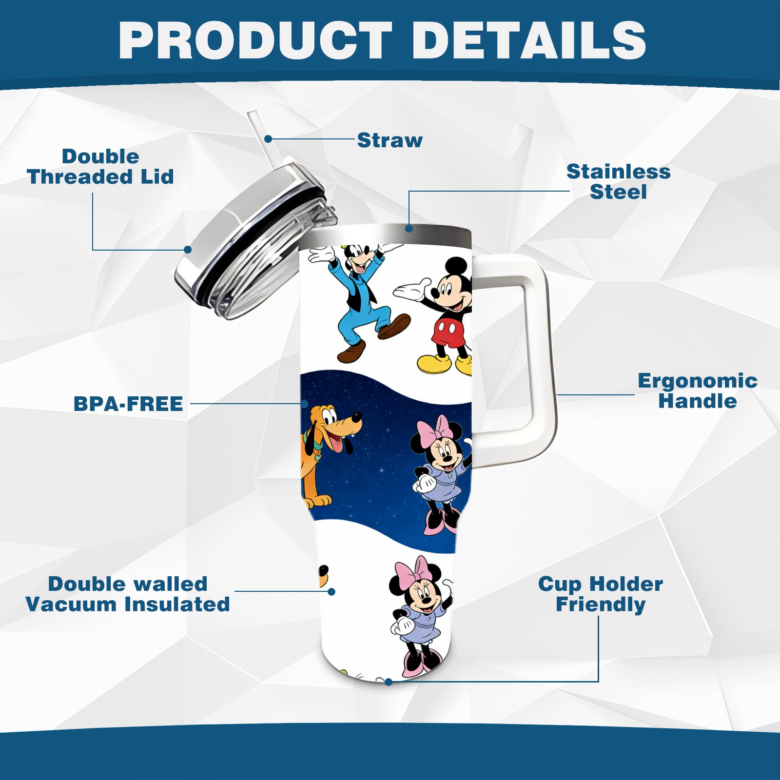 • <p>This multi-functional insulated water bottle features a simple and practical design, suitable for various daily scenarios. The ergonomic handle allows for easy one-handed drinking, and the detachable handle can be adjusted or removed as needed, making it convenient for commuting, exercising, or carrying to meetings. Made of high-quality stainless steel, it is BPA-free and features double-walled vacuum insulation technology that keeps drinks cold for 8 hours and hot for 6 hours, ensuring you can enjoy your beverage at the perfect temperature anytime, anywhere. The 40-ounce Christmas edition comes with a sliding lid, silicone straw, and a non-slip design. Accessories are dishwasher safe, and the narrow bottom and wide mouth design perfectly fits car cup holders. The exclusive flip-top straw lid is environmentally friendly and durable, with a one-touch leak-proof closure and two drinking modes: sip and gulp. A dust cover provides effective protection. This bottle is suitable for travel, office work, sports, camping, and other occasions, making it a thoughtful gift for friends and family.</p>