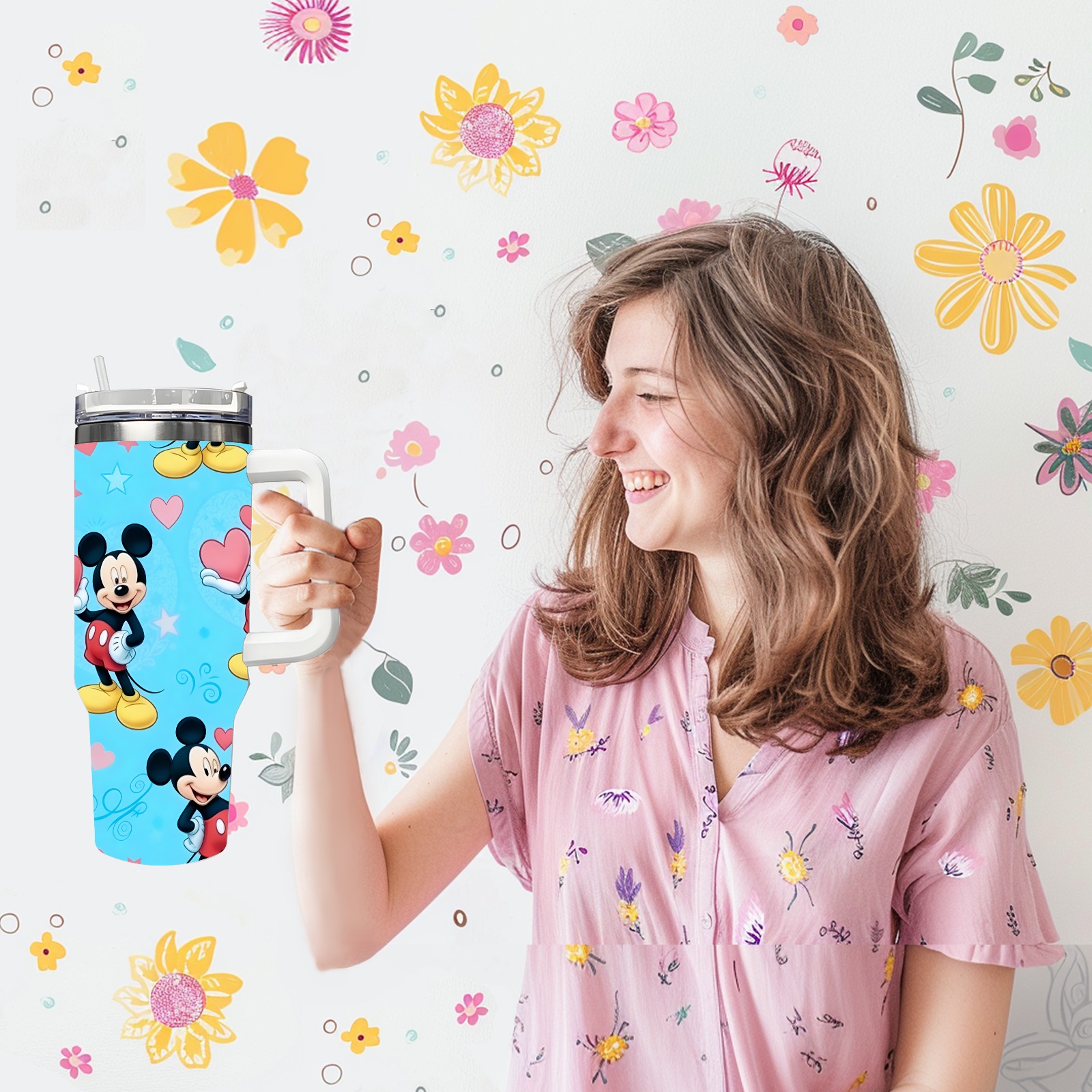 40oz 生成特定风格图片 (45) thermos with lid and straw, leak-proof stainless steel, with handle, spill-proof bottle, convenient for travel(white)