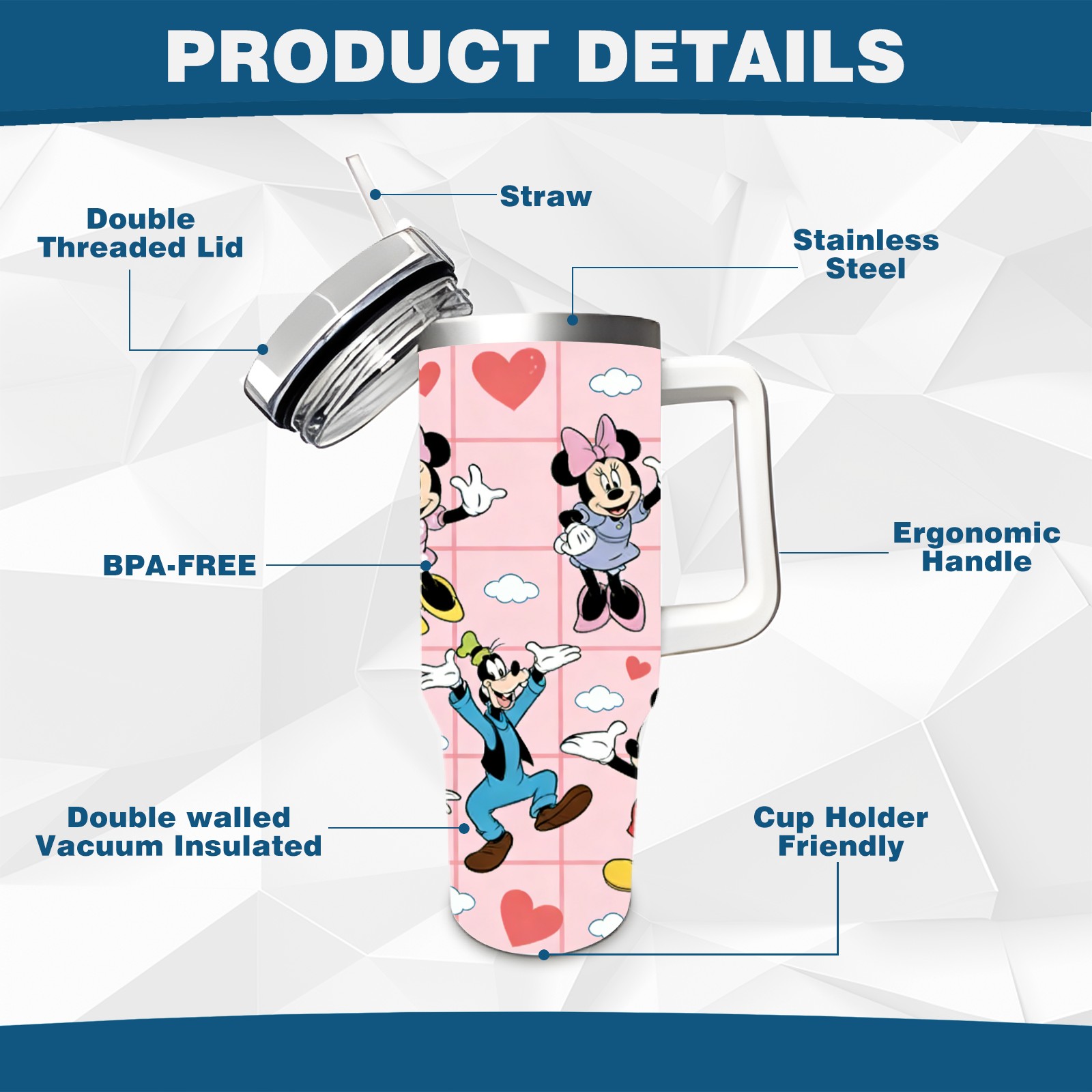 • <p>This multi-functional insulated water bottle features a simple and practical design, suitable for various daily scenarios. The ergonomic handle allows for easy one-handed drinking, and the detachable handle can be adjusted or removed as needed, making it convenient for commuting, exercising, or carrying to meetings. Made of high-quality stainless steel, it is BPA-free and features double-walled vacuum insulation technology that keeps drinks cold for 8 hours and hot for 6 hours, ensuring you can enjoy your beverage at the perfect temperature anytime, anywhere. The 40-ounce Christmas edition comes with a sliding lid, silicone straw, and a non-slip design. Accessories are dishwasher safe, and the narrow bottom and wide mouth design perfectly fits car cup holders. The exclusive flip-top straw lid is environmentally friendly and durable, with a one-touch leak-proof closure and two drinking modes: sip and gulp. A dust cover provides effective protection. This bottle is suitable for travel, office work, sports, camping, and other occasions, making it a thoughtful gift for friends and family.</p>