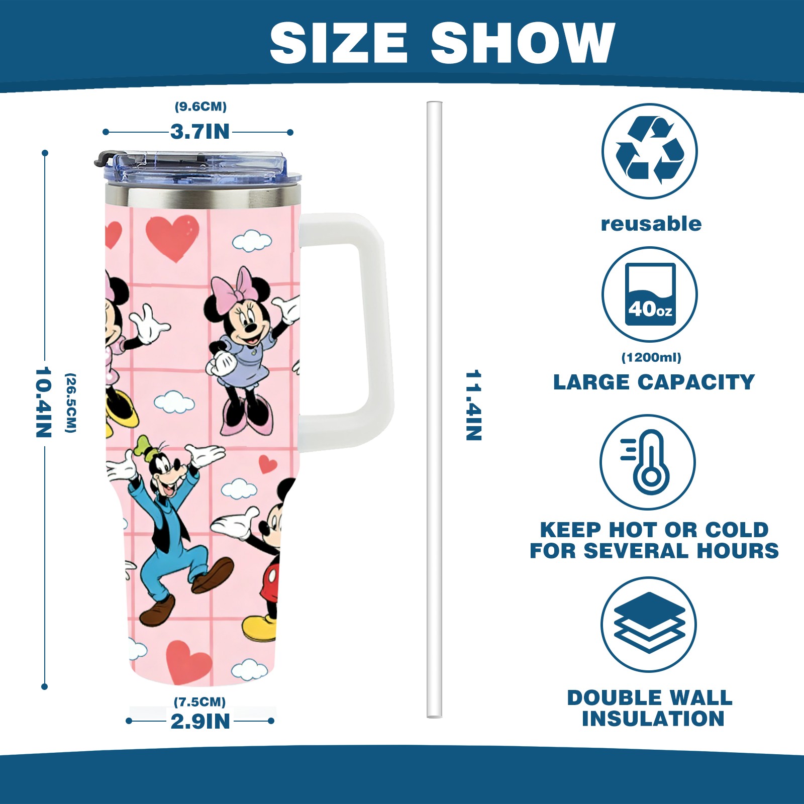 40oz 生成特定风格图片 (61) thermos with lid and straw, leak-proof stainless steel, with handle, spill-proof bottle, convenient for travel(white)