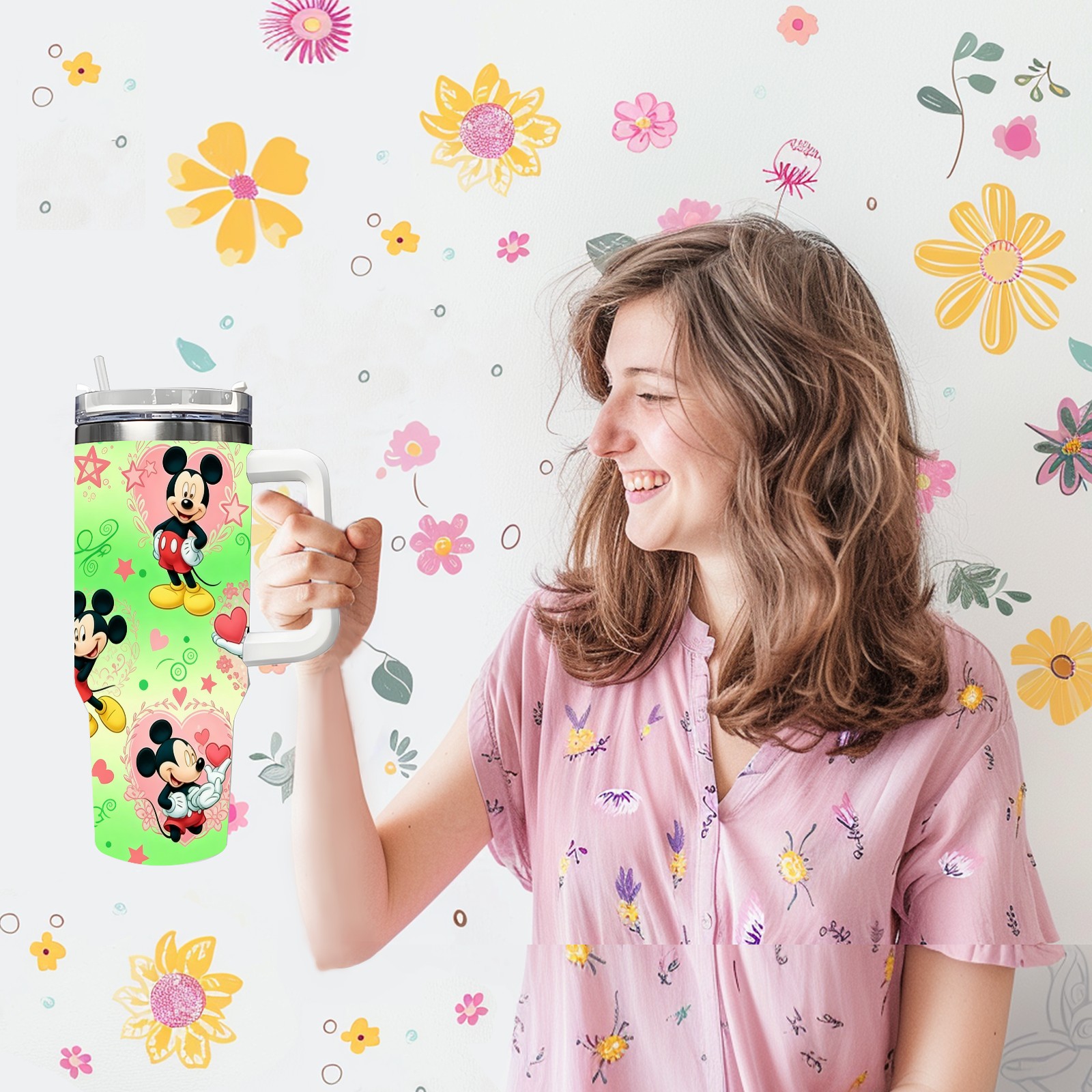 40oz 生成特定风格图片 (46) thermos with lid and straw, leak-proof stainless steel, with handle, spill-proof bottle, convenient for travel(white)