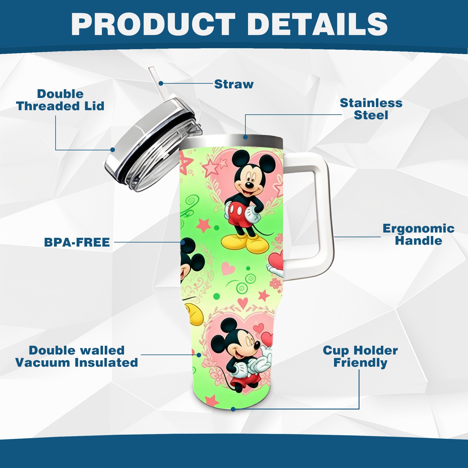 • <p>This multi-functional insulated water bottle features a simple and practical design, suitable for various daily scenarios. The ergonomic handle allows for easy one-handed drinking, and the detachable handle can be adjusted or removed as needed, making it convenient for commuting, exercising, or carrying to meetings. Made of high-quality stainless steel, it is BPA-free and features double-walled vacuum insulation technology that keeps drinks cold for 8 hours and hot for 6 hours, ensuring you can enjoy your beverage at the perfect temperature anytime, anywhere. The 40-ounce Christmas edition comes with a sliding lid, silicone straw, and a non-slip design. Accessories are dishwasher safe, and the narrow bottom and wide mouth design perfectly fits car cup holders. The exclusive flip-top straw lid is environmentally friendly and durable, with a one-touch leak-proof closure and two drinking modes: sip and gulp. A dust cover provides effective protection. This bottle is suitable for travel, office work, sports, camping, and other occasions, making it a thoughtful gift for friends and family.</p>