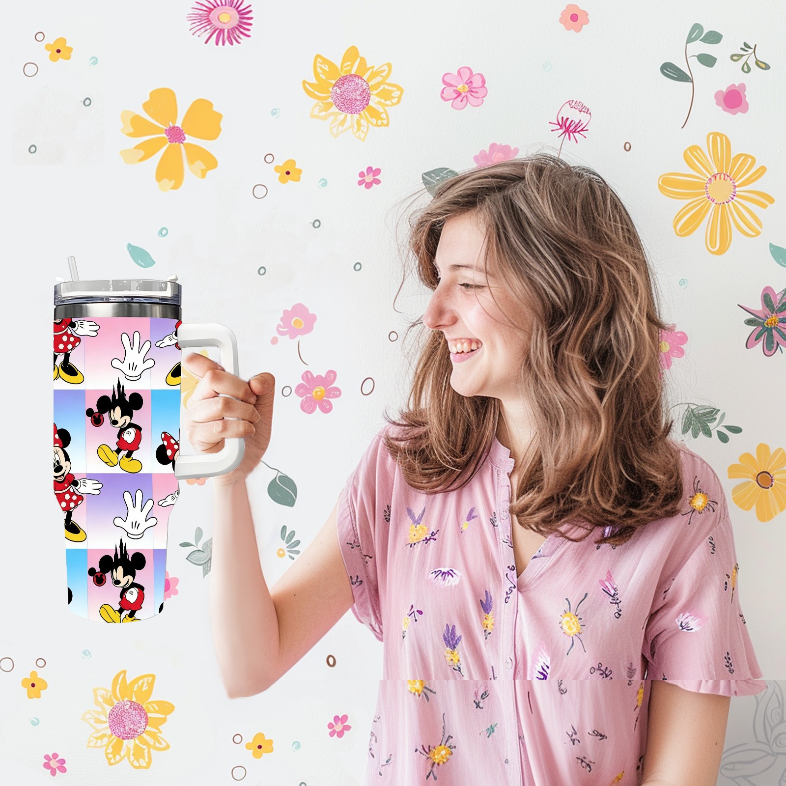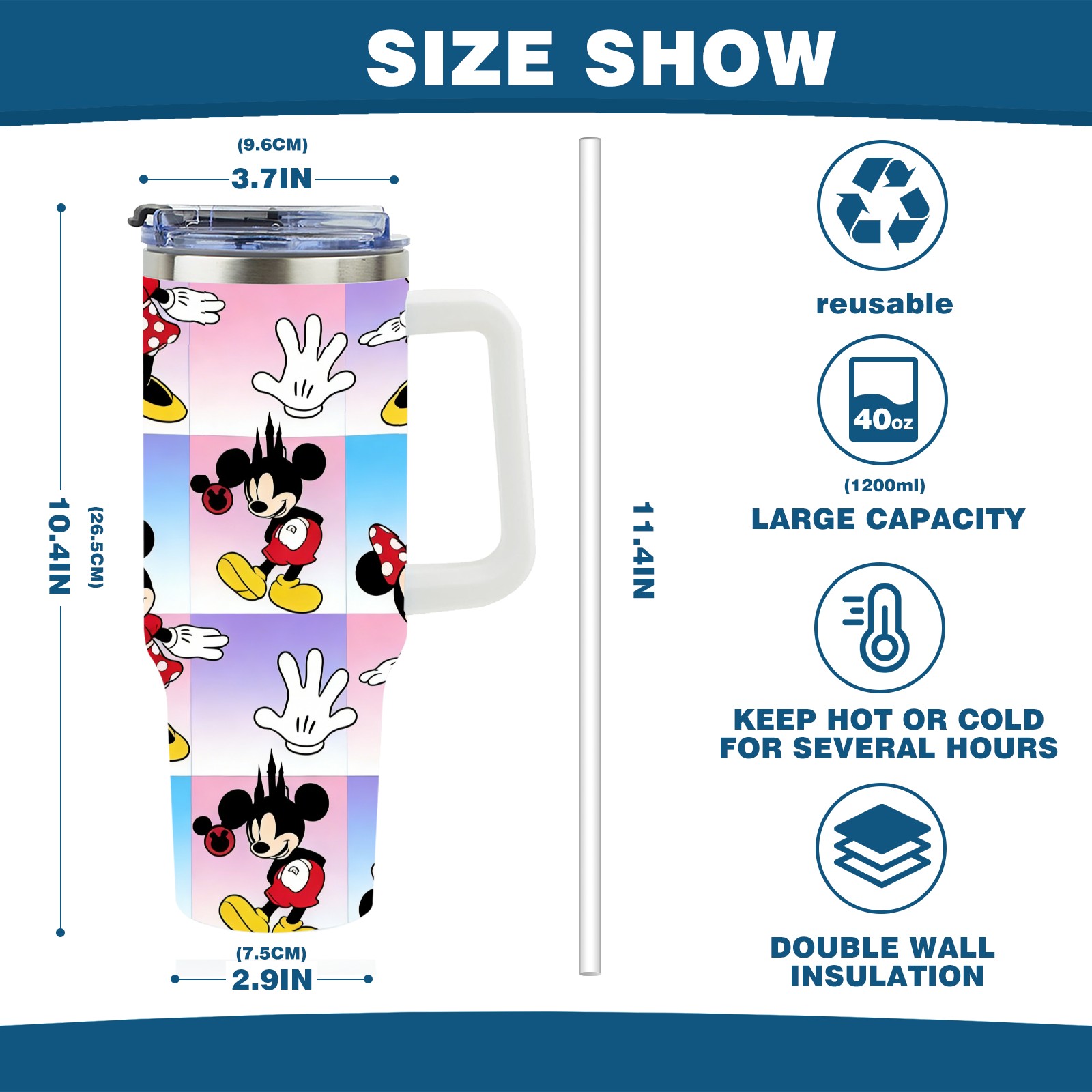 40oz 生成特定风格图片 (52) thermos with lid and straw, leak-proof stainless steel, with handle, spill-proof bottle, convenient for travel(white)