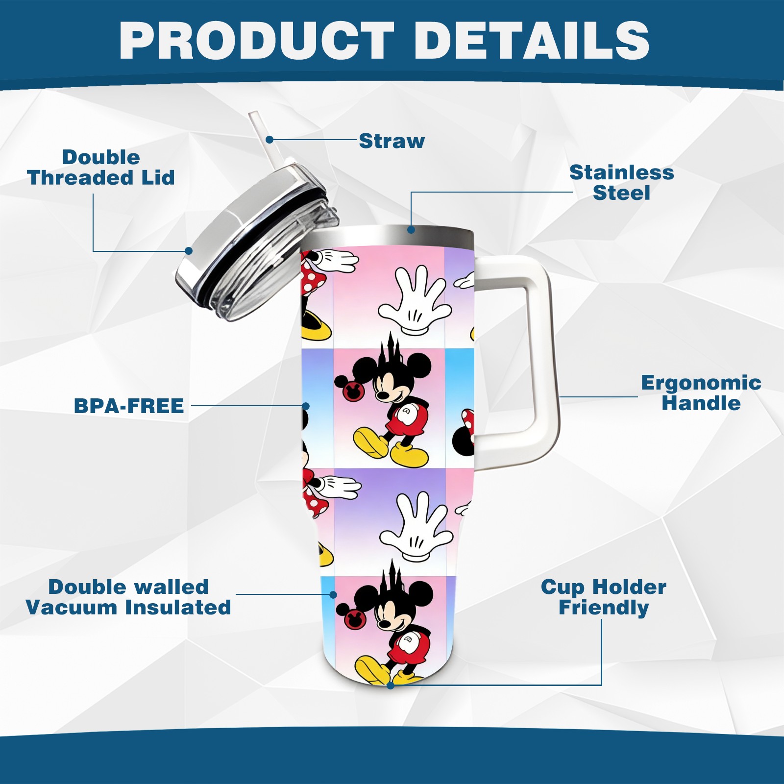 • <p>This multi-functional insulated water bottle features a simple and practical design, suitable for various daily scenarios. The ergonomic handle allows for easy one-handed drinking, and the detachable handle can be adjusted or removed as needed, making it convenient for commuting, exercising, or carrying to meetings. Made of high-quality stainless steel, it is BPA-free and features double-walled vacuum insulation technology that keeps drinks cold for 8 hours and hot for 6 hours, ensuring you can enjoy your beverage at the perfect temperature anytime, anywhere. The 40-ounce Christmas edition comes with a sliding lid, silicone straw, and a non-slip design. Accessories are dishwasher safe, and the narrow bottom and wide mouth design perfectly fits car cup holders. The exclusive flip-top straw lid is environmentally friendly and durable, with a one-touch leak-proof closure and two drinking modes: sip and gulp. A dust cover provides effective protection. This bottle is suitable for travel, office work, sports, camping, and other occasions, making it a thoughtful gift for friends and family.</p>