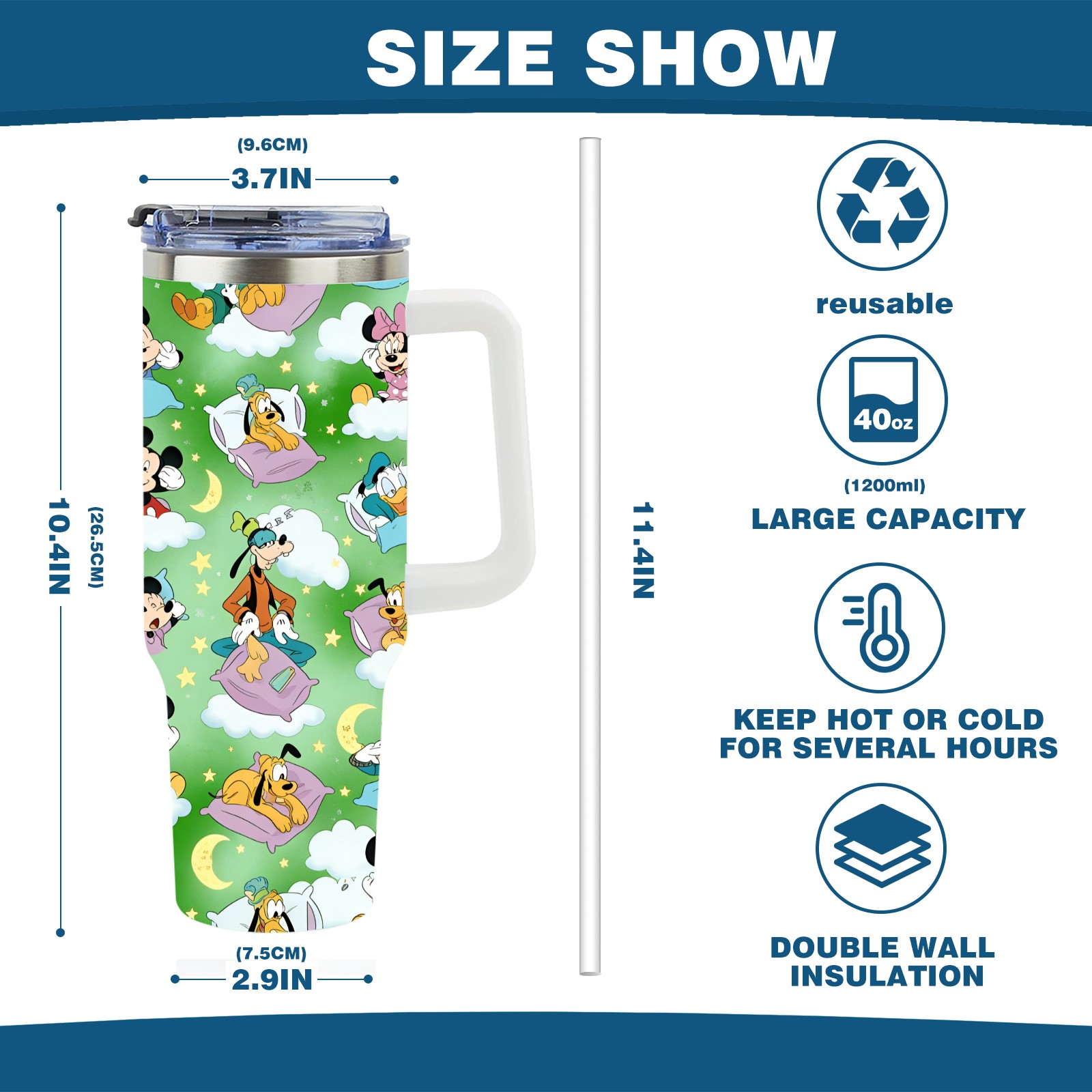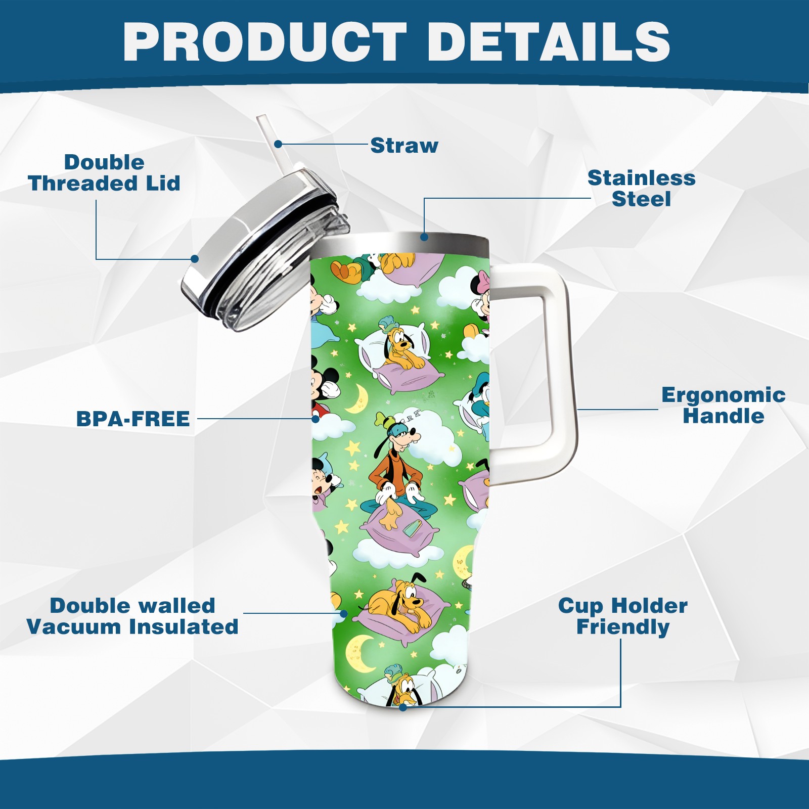 • <p>This multi-functional insulated water bottle features a simple and practical design, suitable for various daily scenarios. The ergonomic handle allows for easy one-handed drinking, and the detachable handle can be adjusted or removed as needed, making it convenient for commuting, exercising, or carrying to meetings. Made of high-quality stainless steel, it is BPA-free and features double-walled vacuum insulation technology that keeps drinks cold for 8 hours and hot for 6 hours, ensuring you can enjoy your beverage at the perfect temperature anytime, anywhere. The 40-ounce Christmas edition comes with a sliding lid, silicone straw, and a non-slip design. Accessories are dishwasher safe, and the narrow bottom and wide mouth design perfectly fits car cup holders. The exclusive flip-top straw lid is environmentally friendly and durable, with a one-touch leak-proof closure and two drinking modes: sip and gulp. A dust cover provides effective protection. This bottle is suitable for travel, office work, sports, camping, and other occasions, making it a thoughtful gift for friends and family.</p>