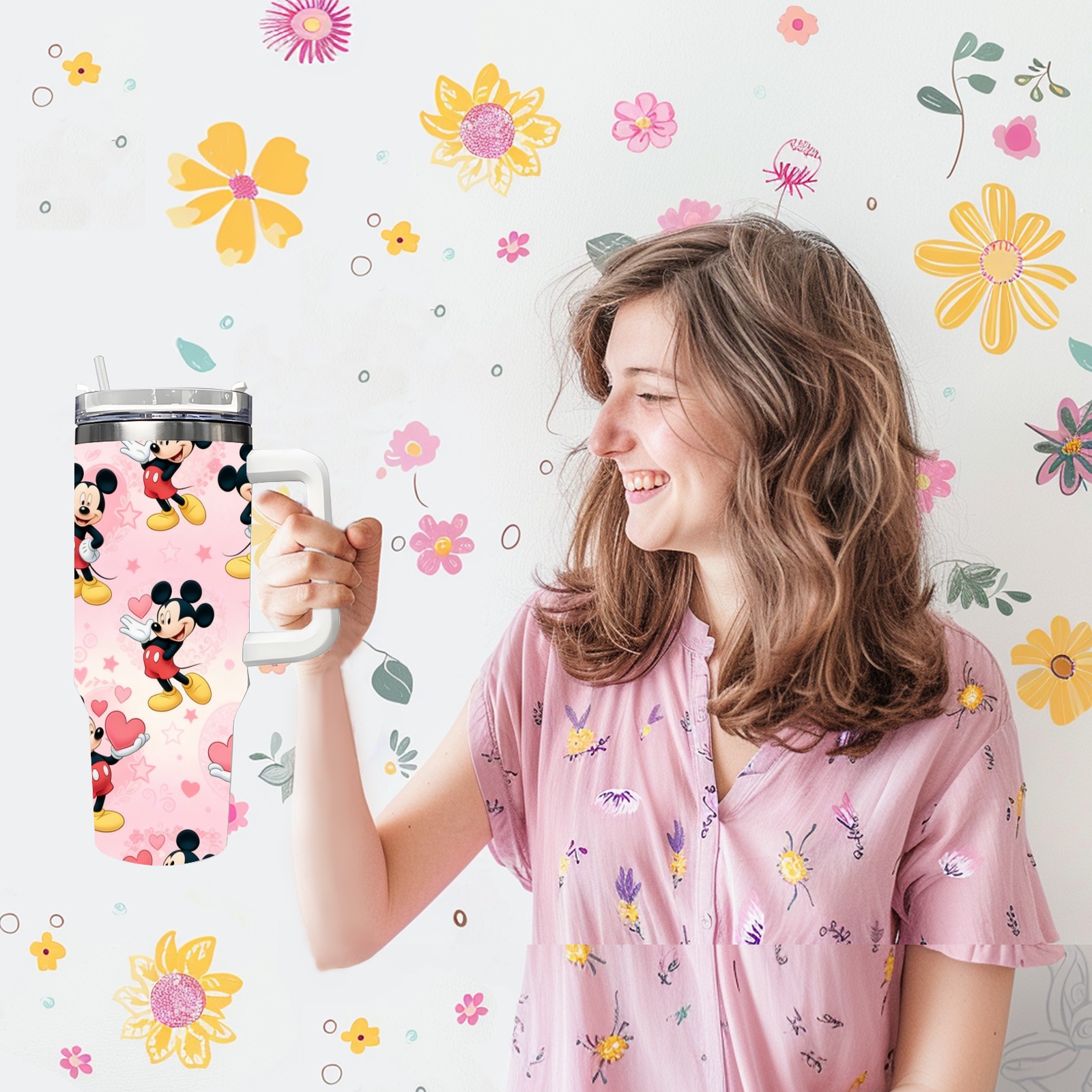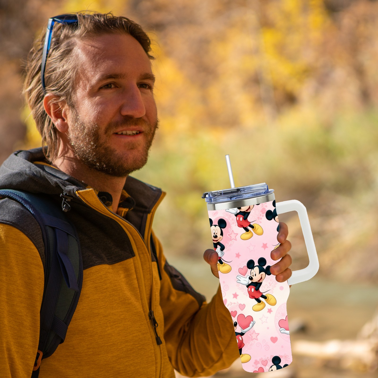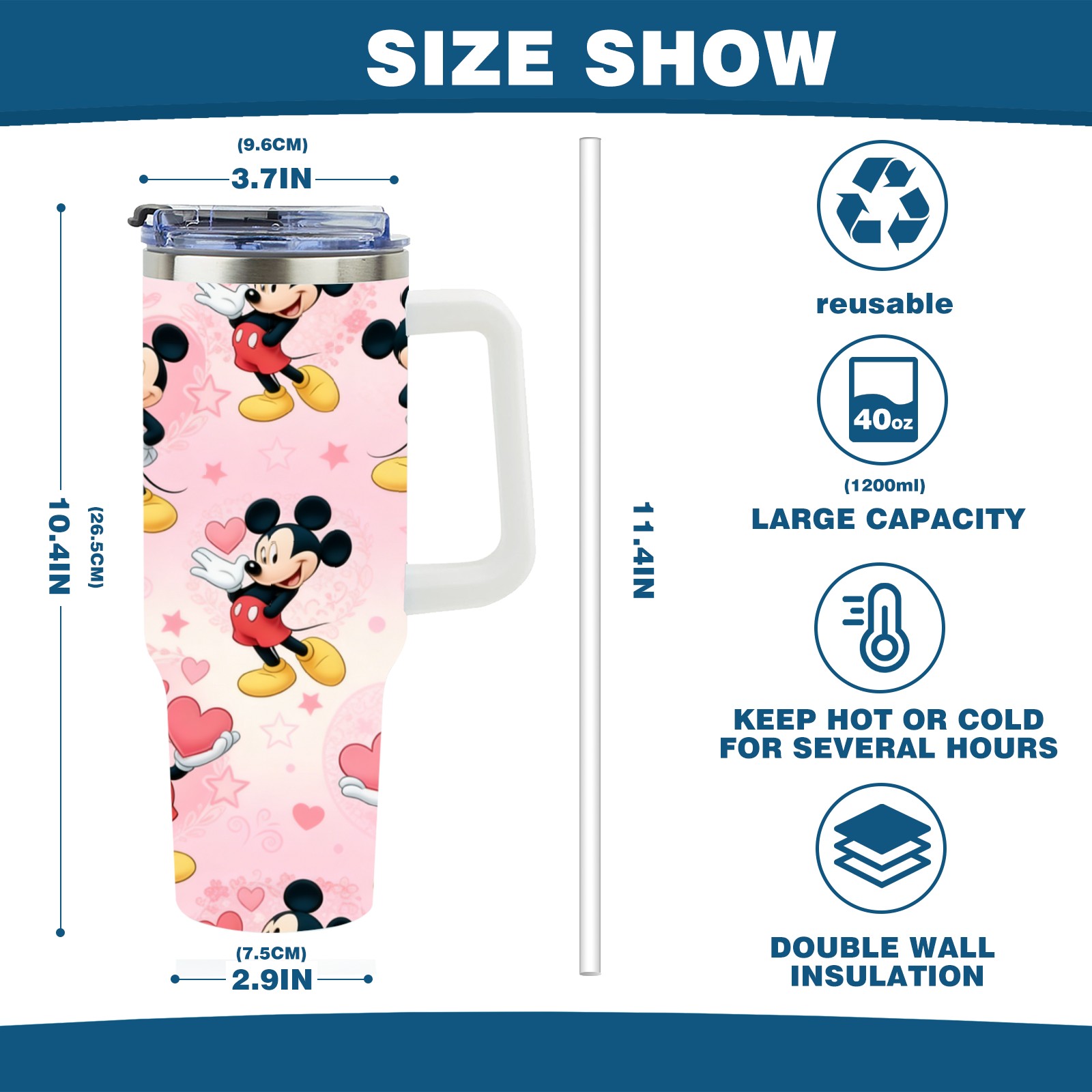 40oz 生成特定风格图片 (43) thermos with lid and straw, leak-proof stainless steel, with handle, spill-proof bottle, convenient for travel(white)