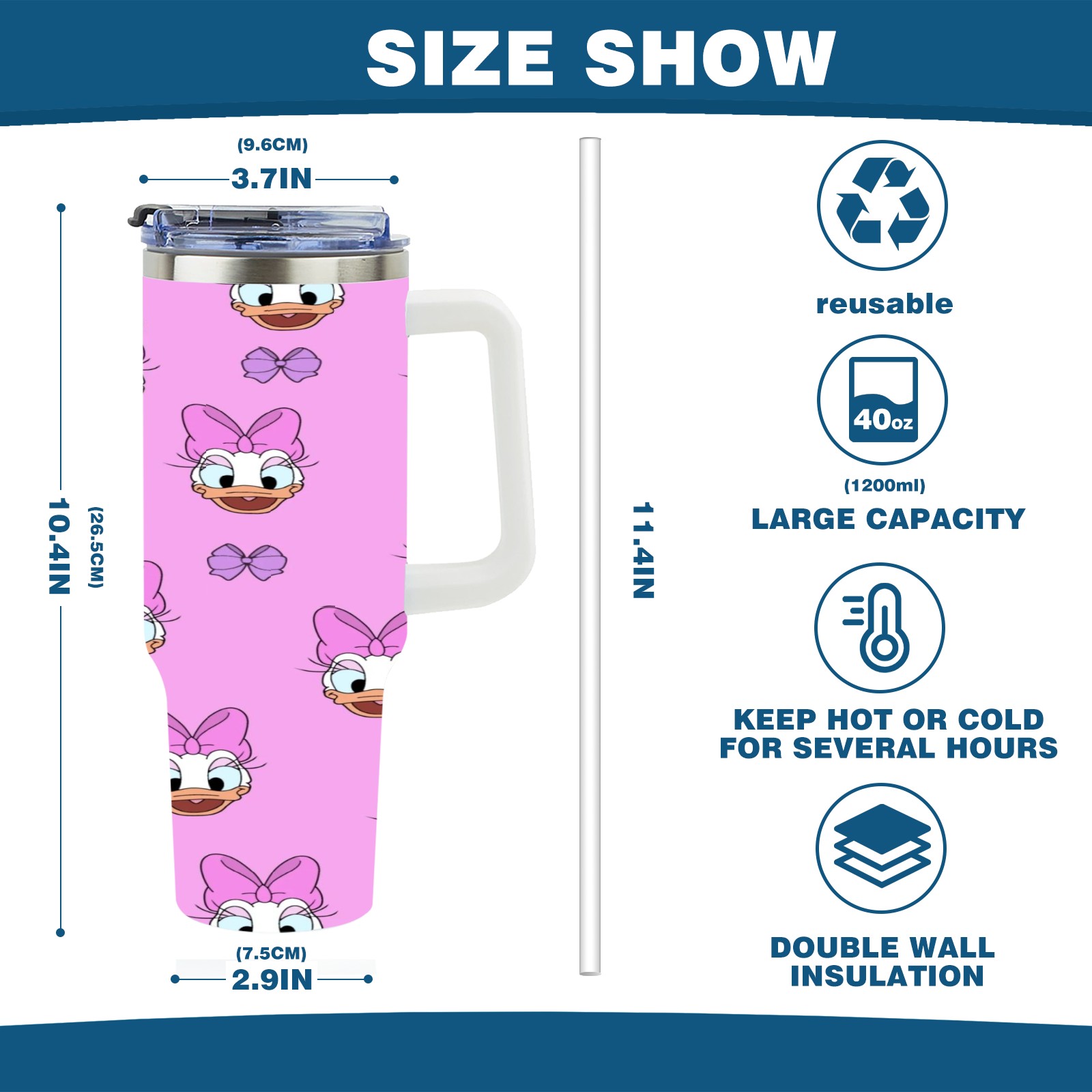 • <p>This multi-functional insulated water bottle features a simple and practical design, suitable for various daily scenarios. The ergonomic handle allows for easy one-handed drinking, and the detachable handle can be adjusted or removed as needed, making it convenient for commuting, exercising, or carrying to meetings. Made of high-quality stainless steel, it is BPA-free and features double-walled vacuum insulation technology that keeps drinks cold for 8 hours and hot for 6 hours, ensuring you can enjoy your beverage at the perfect temperature anytime, anywhere. The 40-ounce Christmas edition comes with a sliding lid, silicone straw, and a non-slip design. Accessories are dishwasher safe, and the narrow bottom and wide mouth design perfectly fits car cup holders. The exclusive flip-top straw lid is environmentally friendly and durable, with a one-touch leak-proof closure and two drinking modes: sip and gulp. A dust cover provides effective protection. This bottle is suitable for travel, office work, sports, camping, and other occasions, making it a thoughtful gift for friends and family.</p>