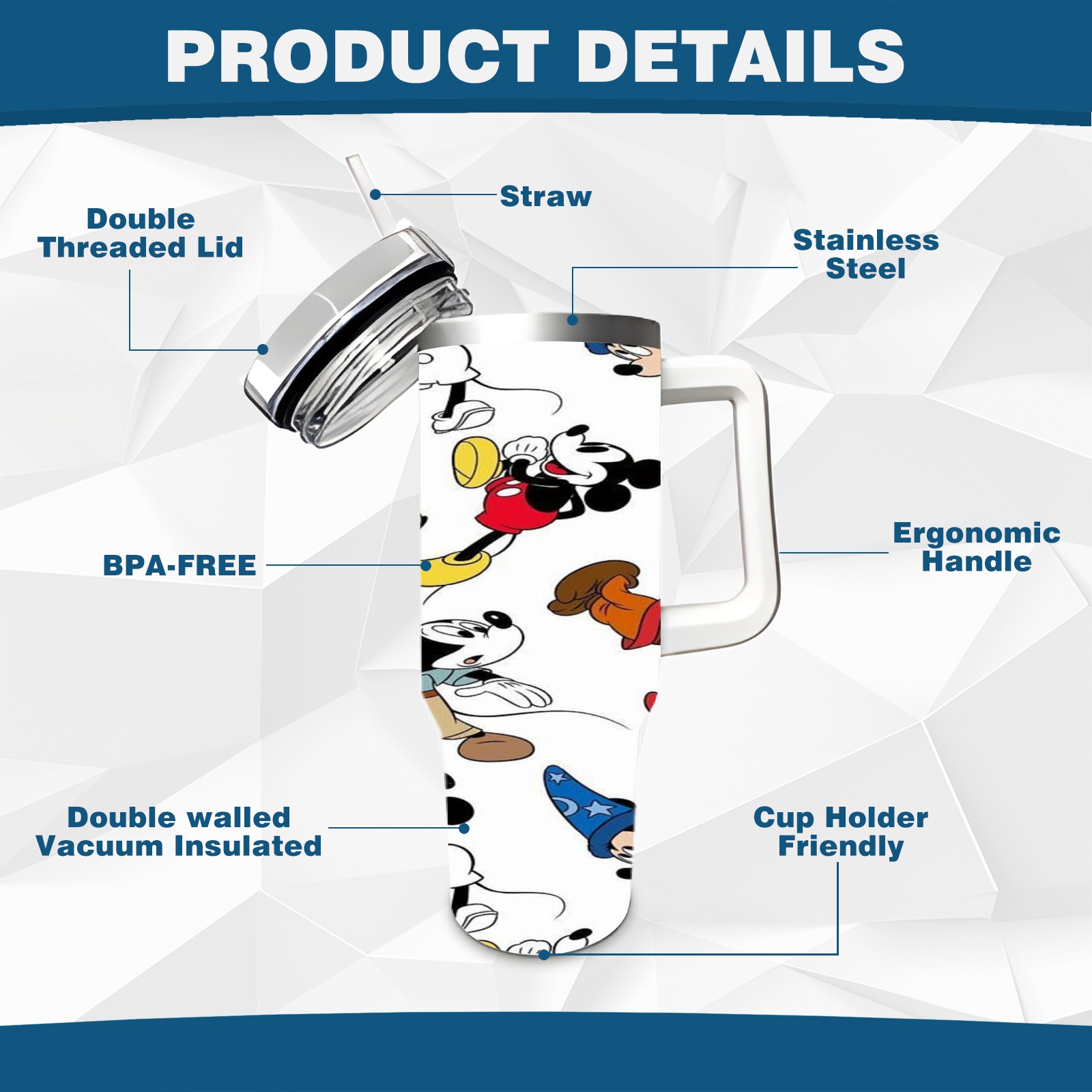 • <p>This multi-functional insulated water bottle features a simple and practical design, suitable for various daily scenarios. The ergonomic handle allows for easy one-handed drinking, and the detachable handle can be adjusted or removed as needed, making it convenient for commuting, exercising, or carrying to meetings. Made of high-quality stainless steel, it is BPA-free and features double-walled vacuum insulation technology that keeps drinks cold for 8 hours and hot for 6 hours, ensuring you can enjoy your beverage at the perfect temperature anytime, anywhere. The 40-ounce Christmas edition comes with a sliding lid, silicone straw, and a non-slip design. Accessories are dishwasher safe, and the narrow bottom and wide mouth design perfectly fits car cup holders. The exclusive flip-top straw lid is environmentally friendly and durable, with a one-touch leak-proof closure and two drinking modes: sip and gulp. A dust cover provides effective protection. This bottle is suitable for travel, office work, sports, camping, and other occasions, making it a thoughtful gift for friends and family.</p>