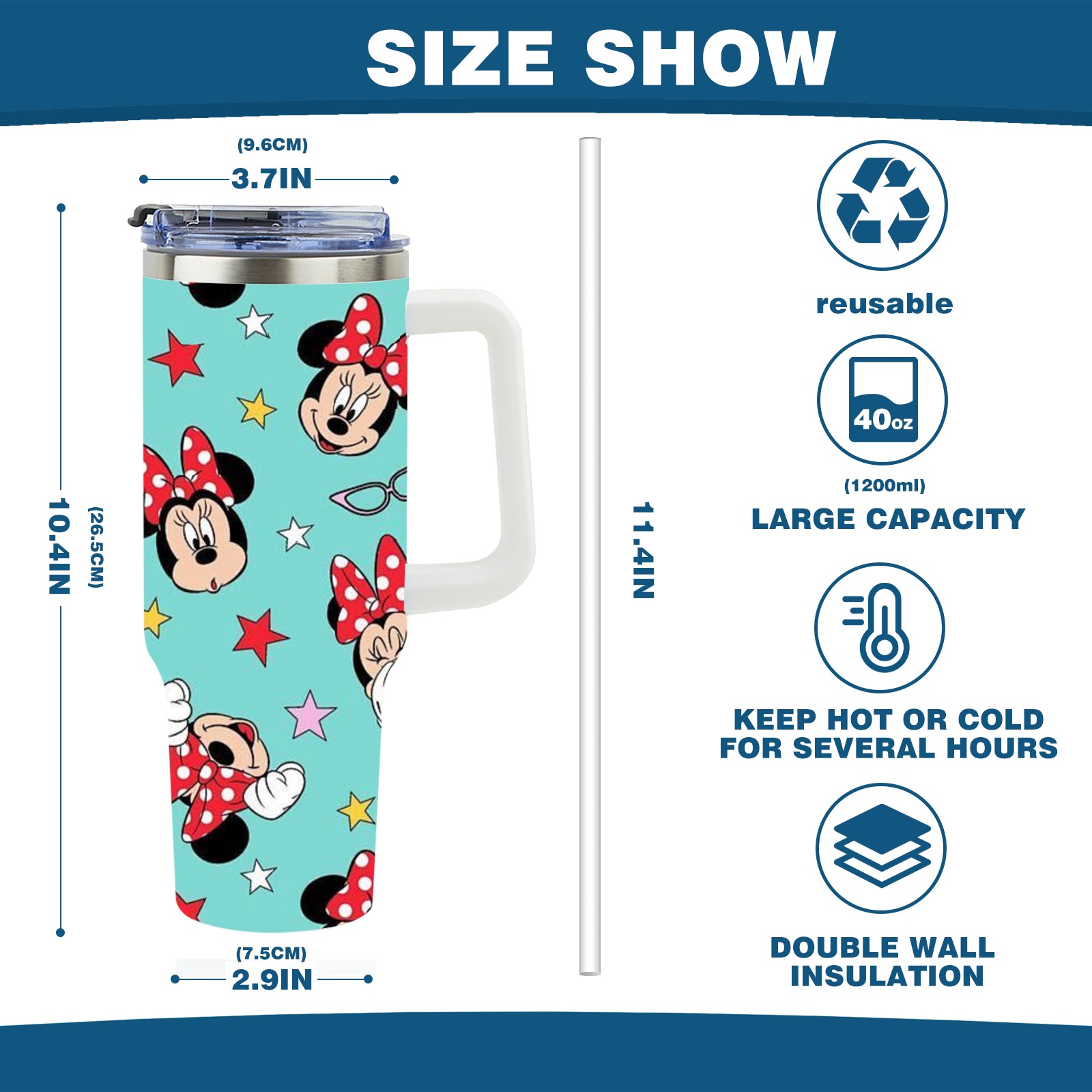 • <p>This multi-functional insulated water bottle features a simple and practical design, suitable for various daily scenarios. The ergonomic handle allows for easy one-handed drinking, and the detachable handle can be adjusted or removed as needed, making it convenient for commuting, exercising, or carrying to meetings. Made of high-quality stainless steel, it is BPA-free and features double-walled vacuum insulation technology that keeps drinks cold for 8 hours and hot for 6 hours, ensuring you can enjoy your beverage at the perfect temperature anytime, anywhere. The 40-ounce Christmas edition comes with a sliding lid, silicone straw, and a non-slip design. Accessories are dishwasher safe, and the narrow bottom and wide mouth design perfectly fits car cup holders. The exclusive flip-top straw lid is environmentally friendly and durable, with a one-touch leak-proof closure and two drinking modes: sip and gulp. A dust cover provides effective protection. This bottle is suitable for travel, office work, sports, camping, and other occasions, making it a thoughtful gift for friends and family.</p>