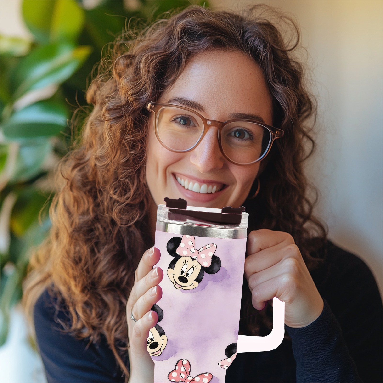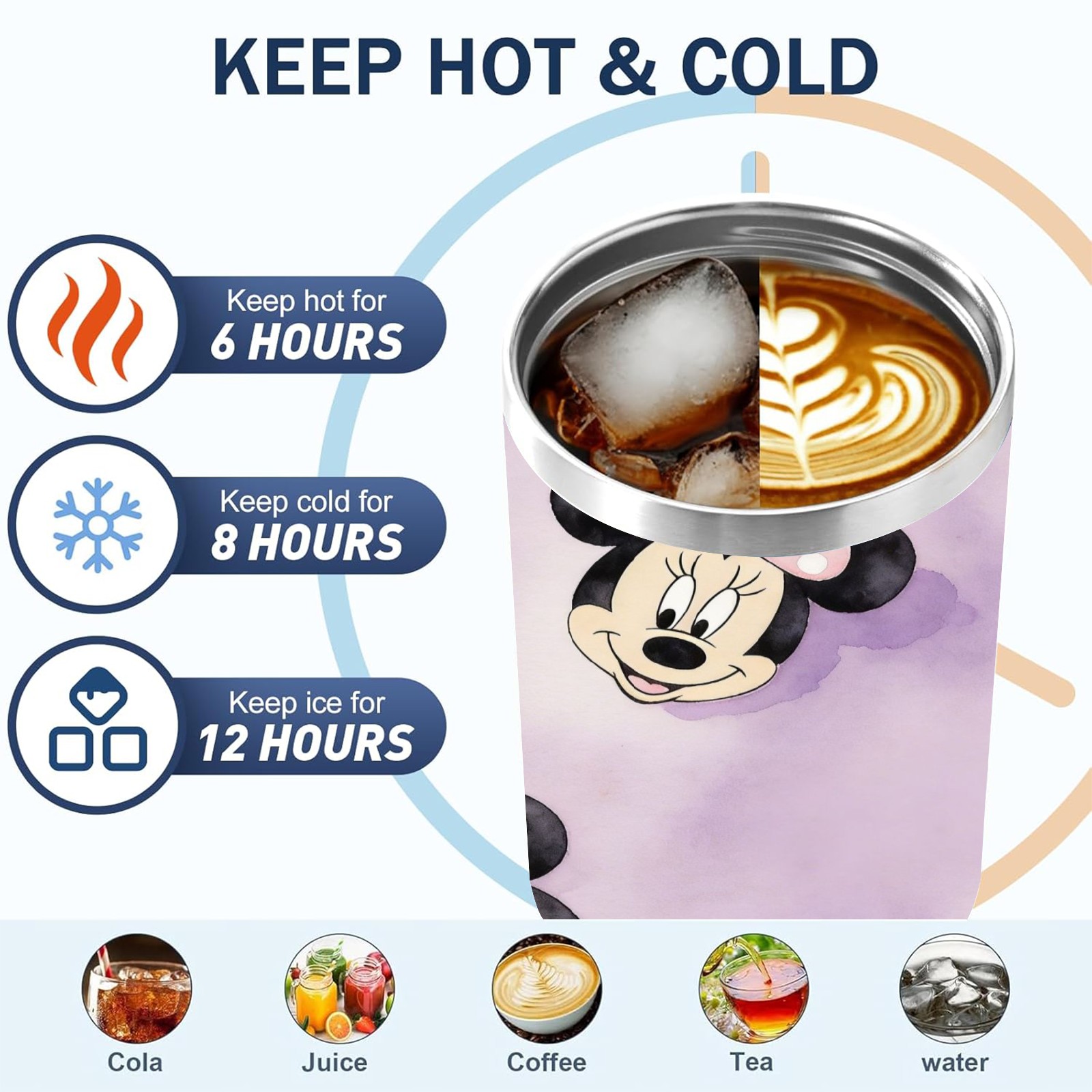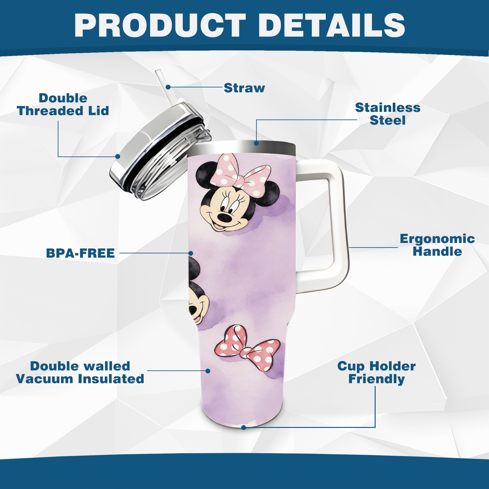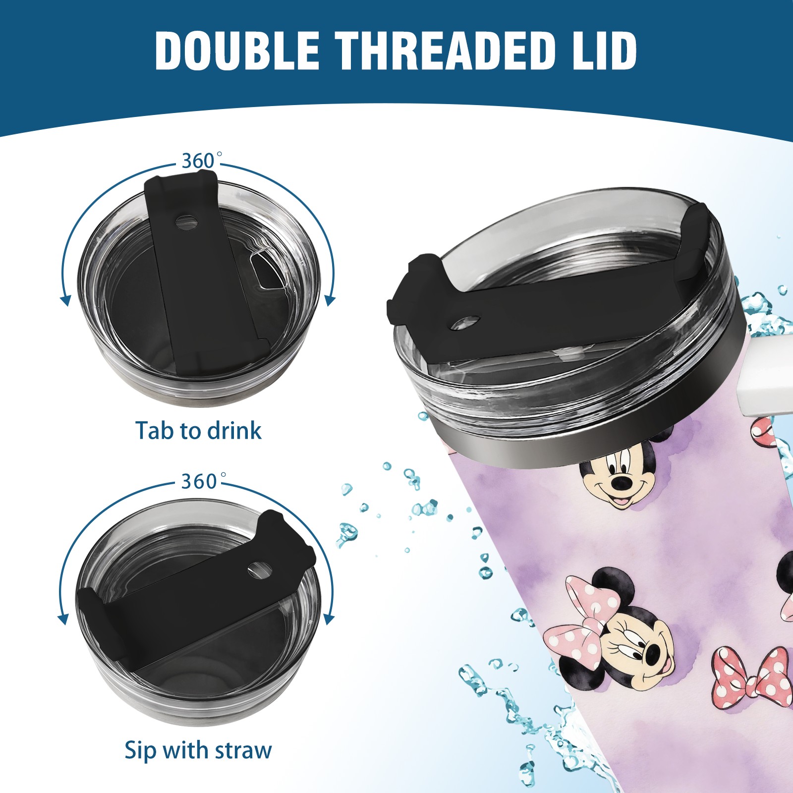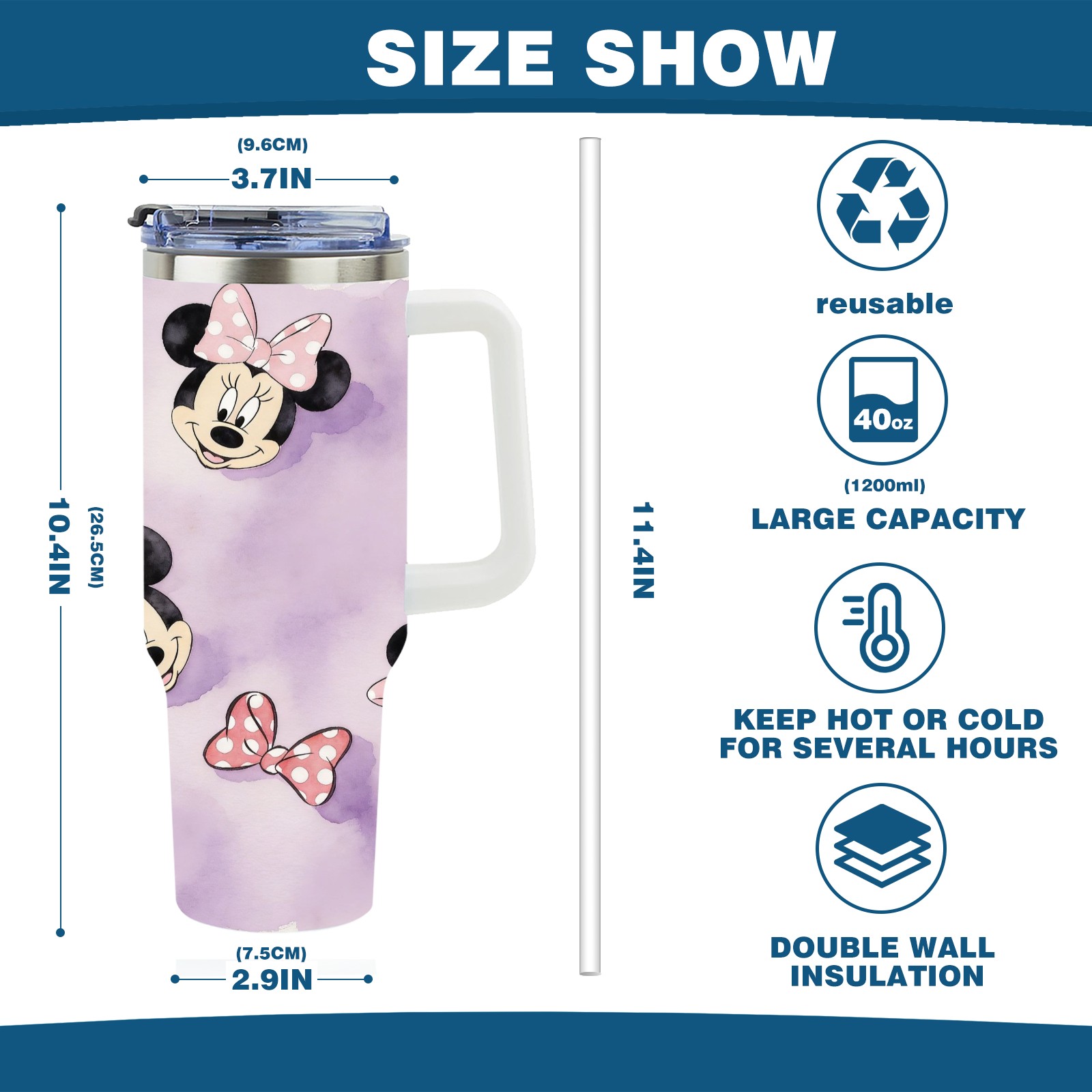 40oz Minnie Cutie thermos with lid and straw, leak-proof stainless steel, with handle, spill-proof bottle, convenient for travel(white)