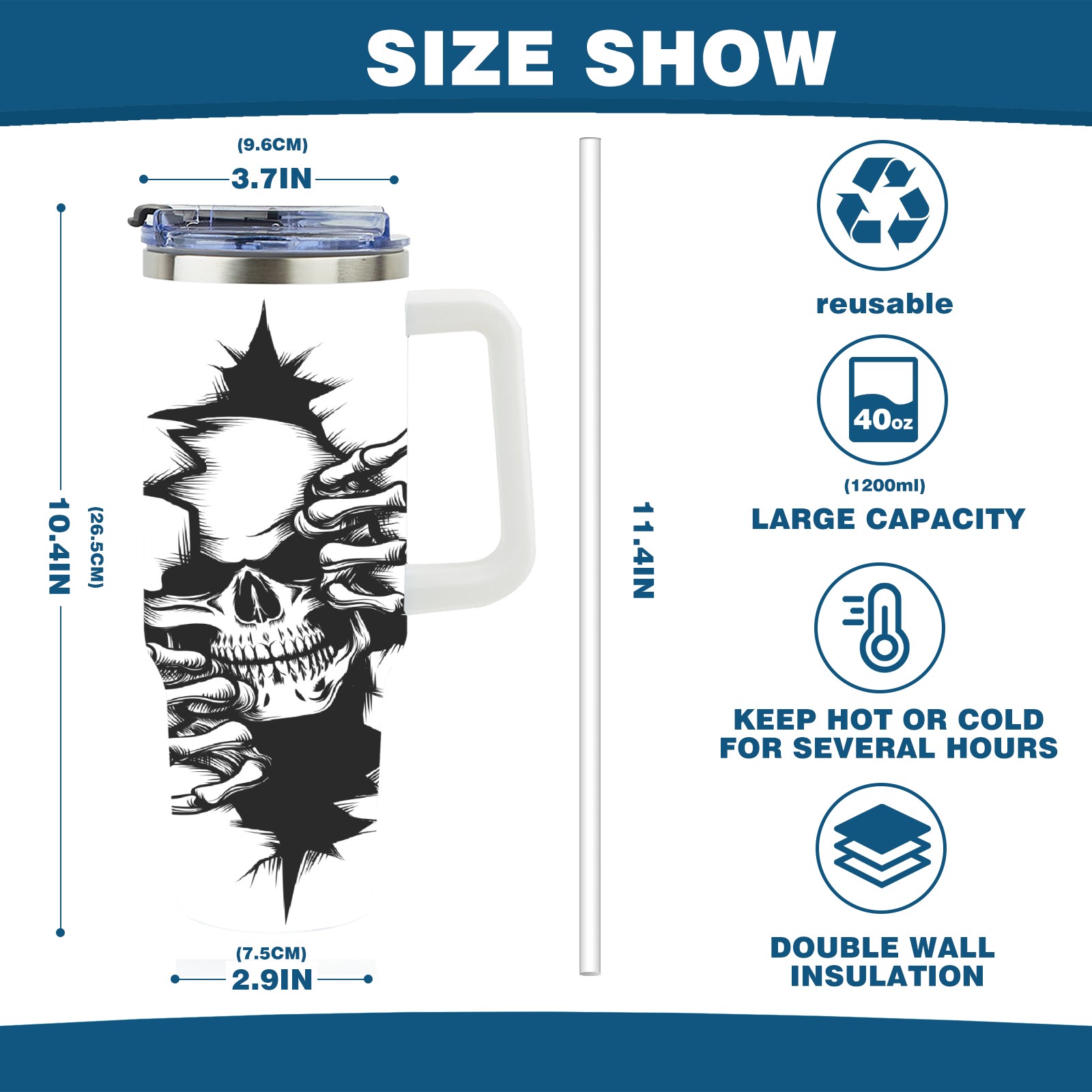 • С большой емкостью 40 унций, он обеспечивает вас гидратацией в течение всего дня, идеально подходит для воды, кофе, сока или других напитков. Эргономичный дизайн идеально вписывается в автомобильные держатели для бутылок, а прочный, герметичный колпачок предотвращает утечки во время передвижения. Путешествие. Антискользящее основание обеспечивает устойчивость, а гладкие поверхности делают уборку легкой — просто мойте вручную или кладите в посудомоечную машину (рекомендуется верхний поддон).