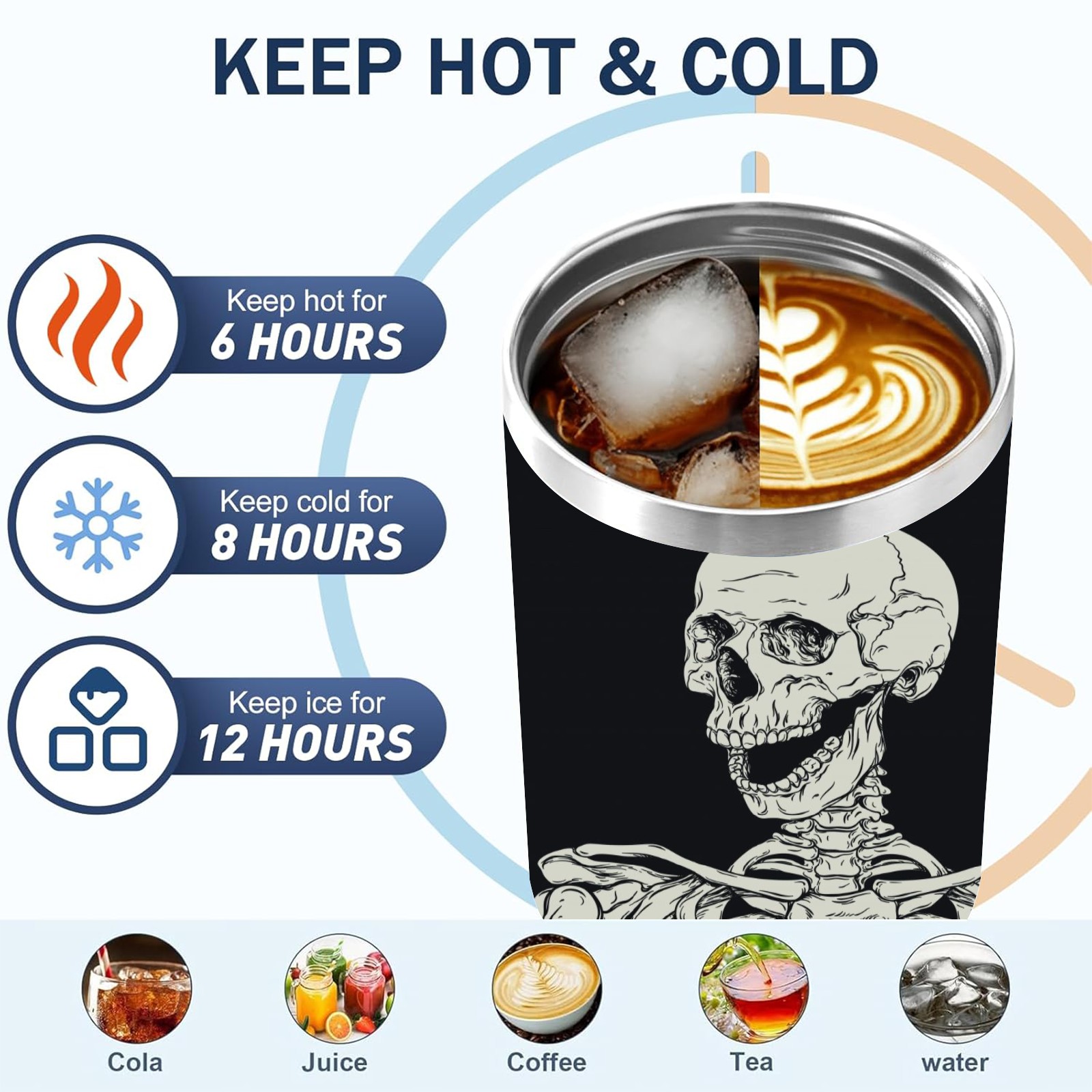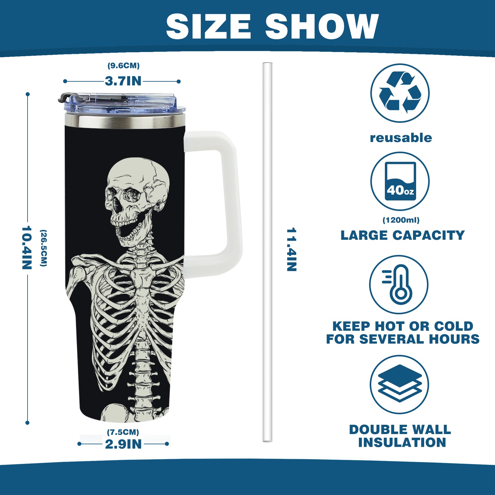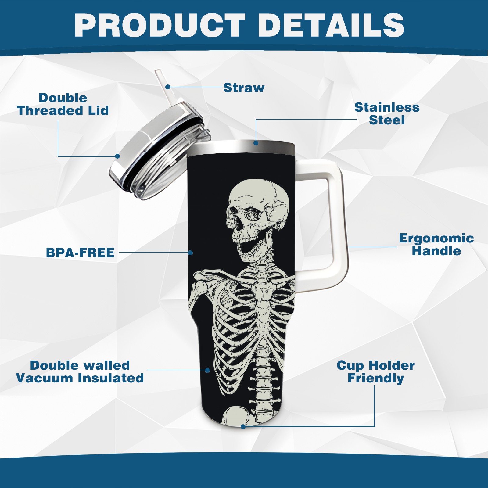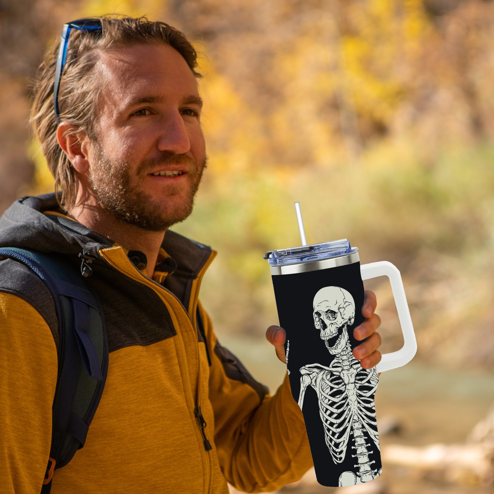40 унций полностью напечатанный автомобильный стакан Human Skeleton Posture