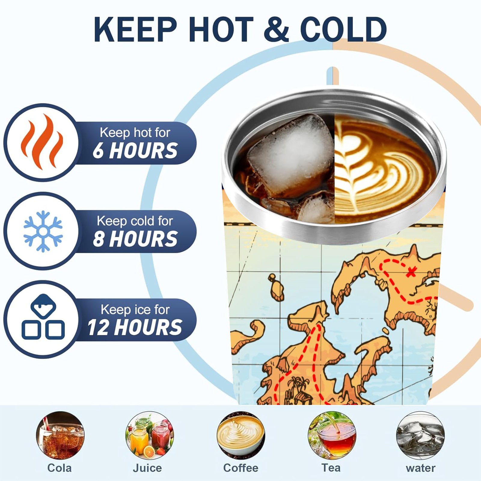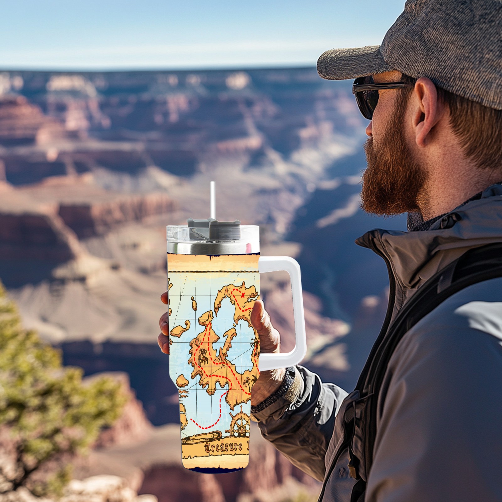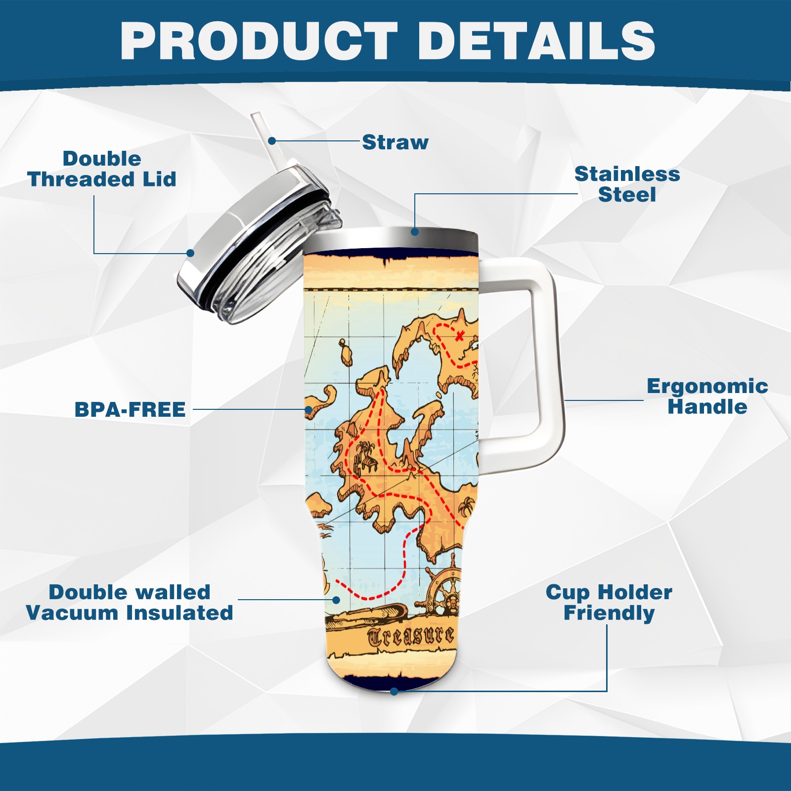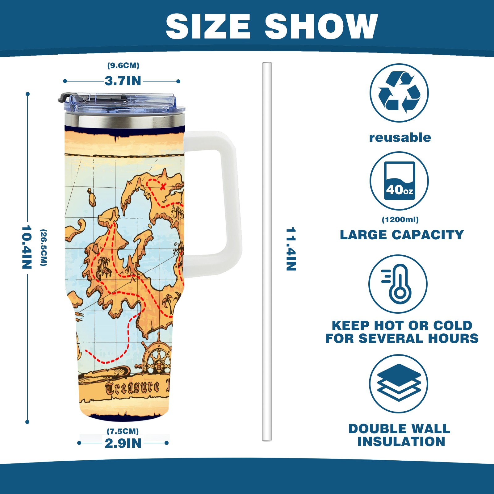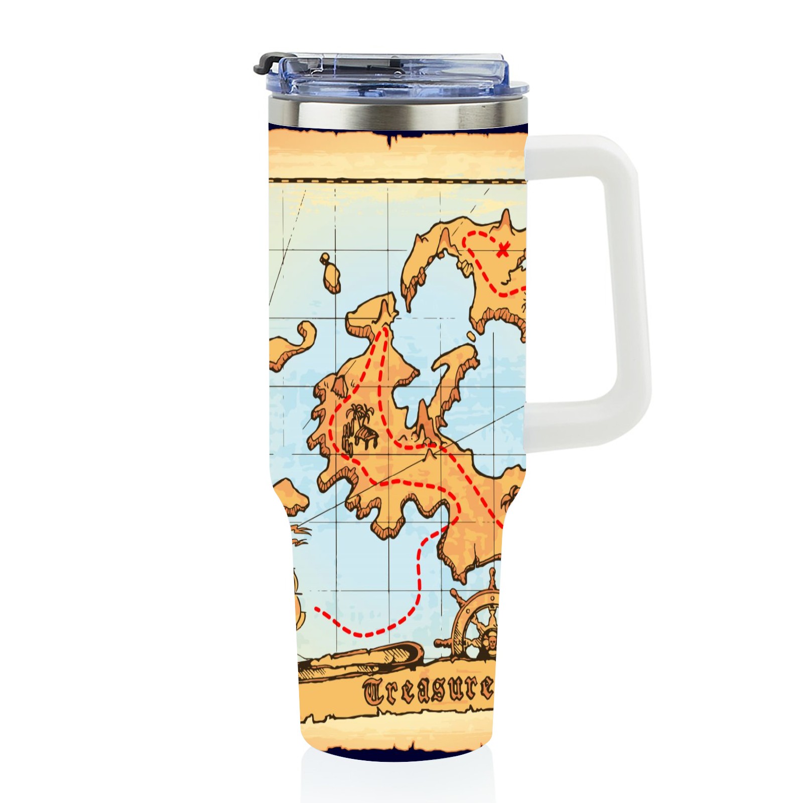 40 унций полностью напечатанный автомобильный стакан Old Pirate Map Skull Island Treasure