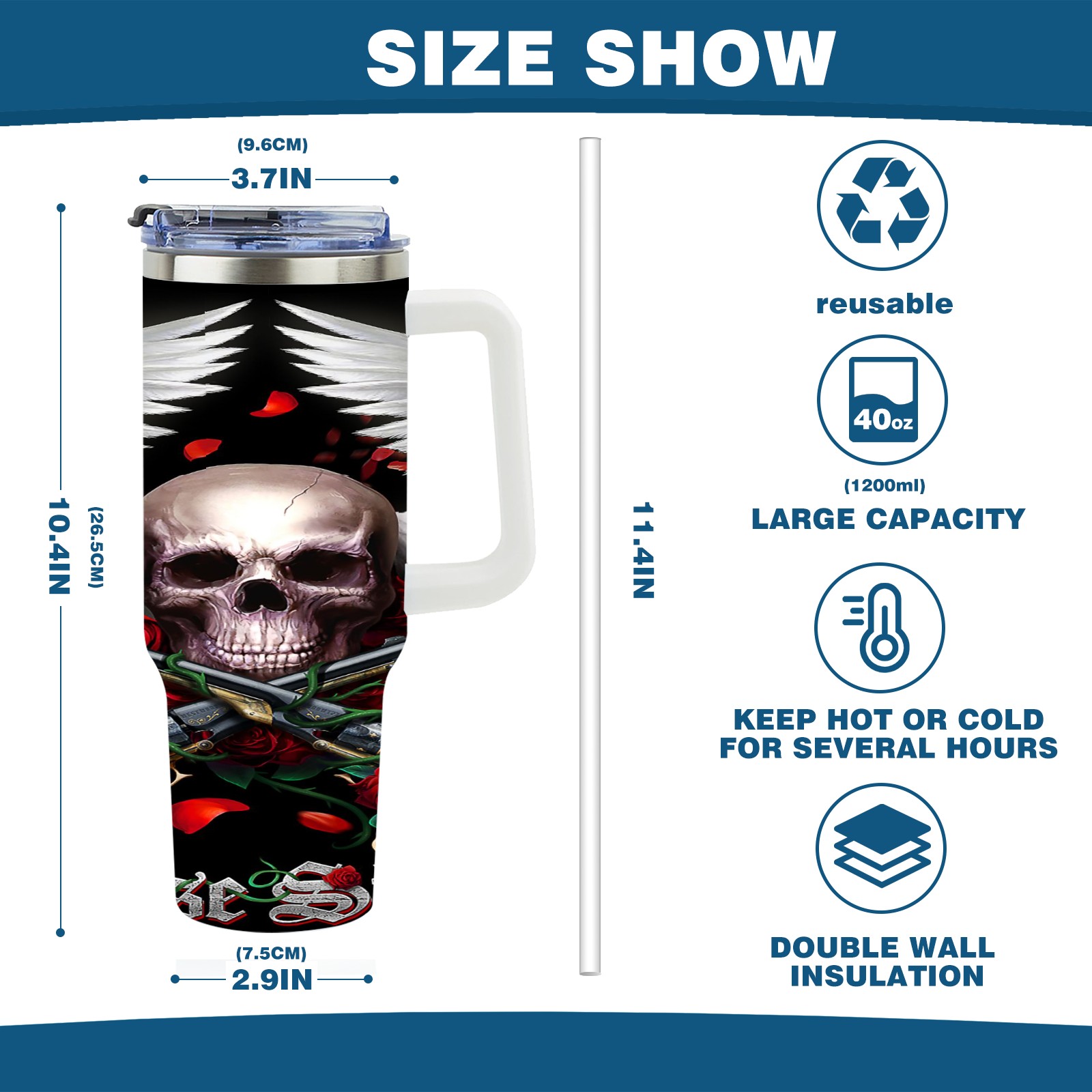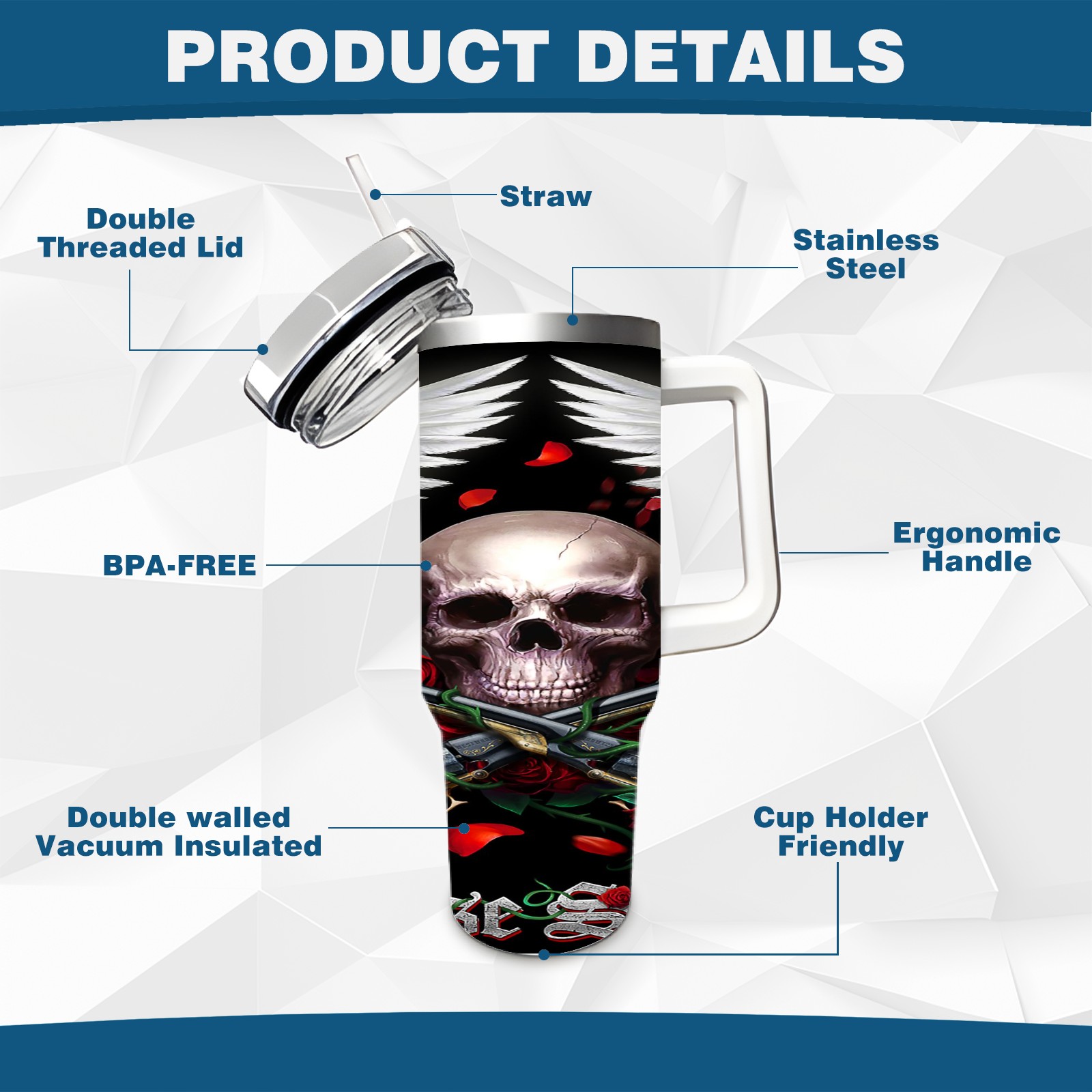 40 унций полностью напечатанный автомобильный стакан Skeleton