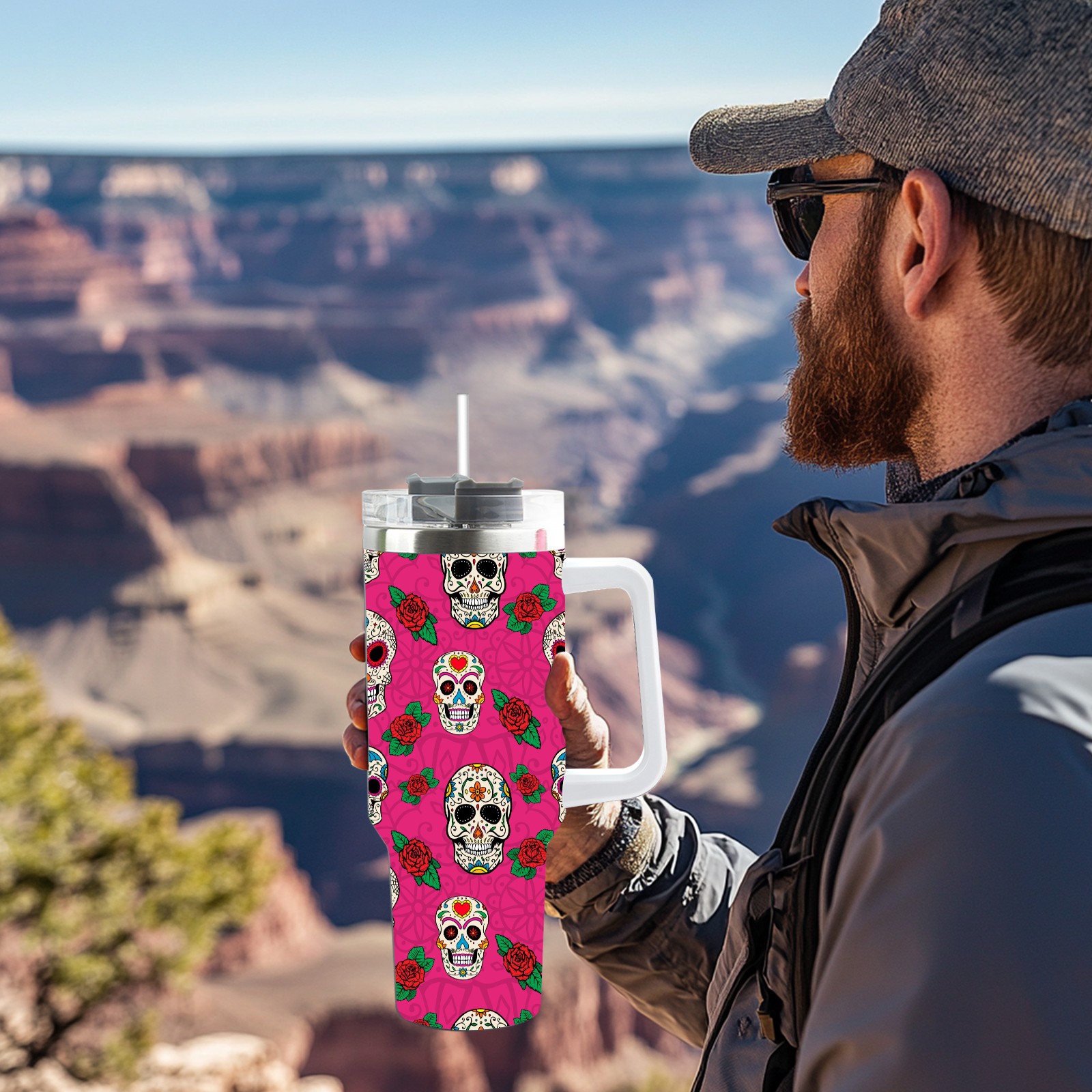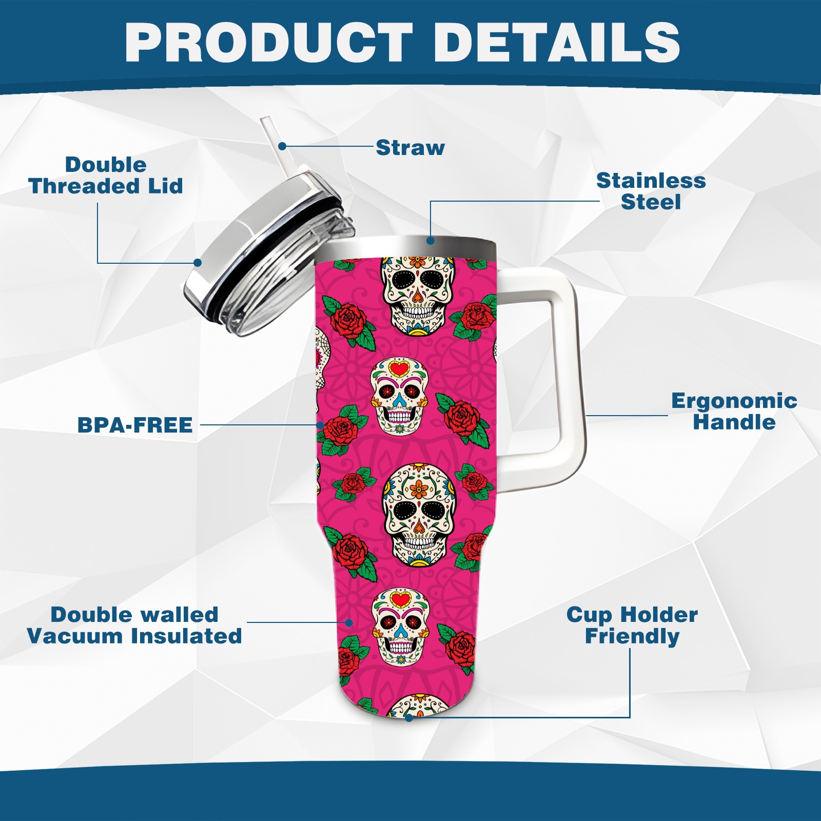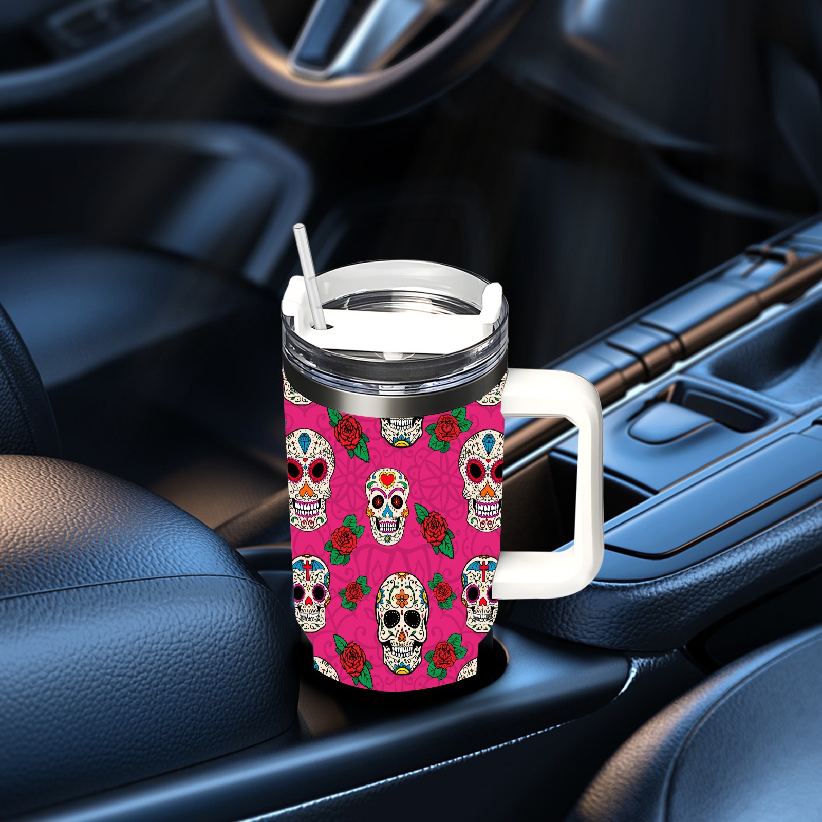 40 унций полностью напечатанный автомобильный стакан Sugar Skull