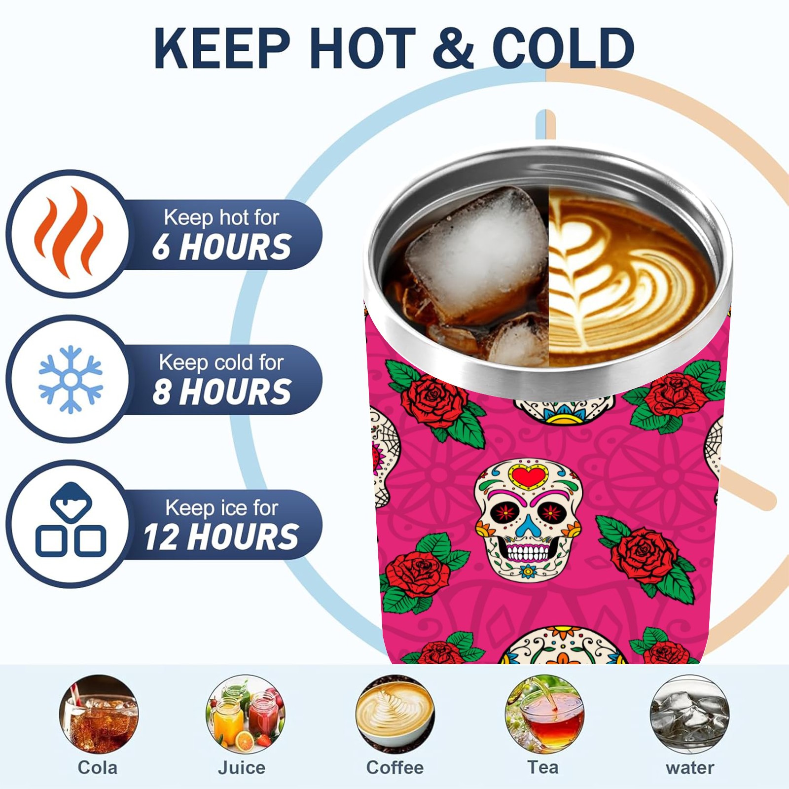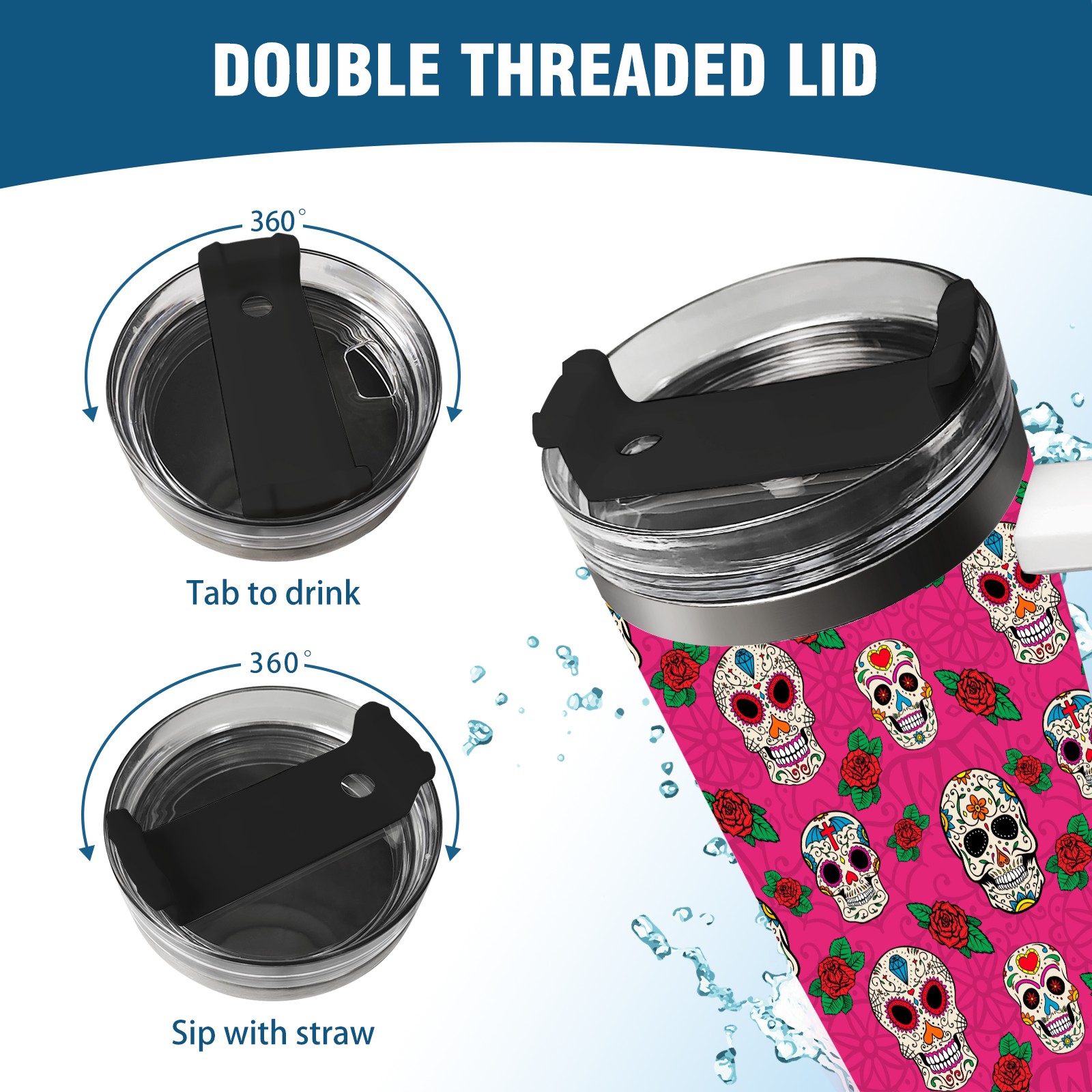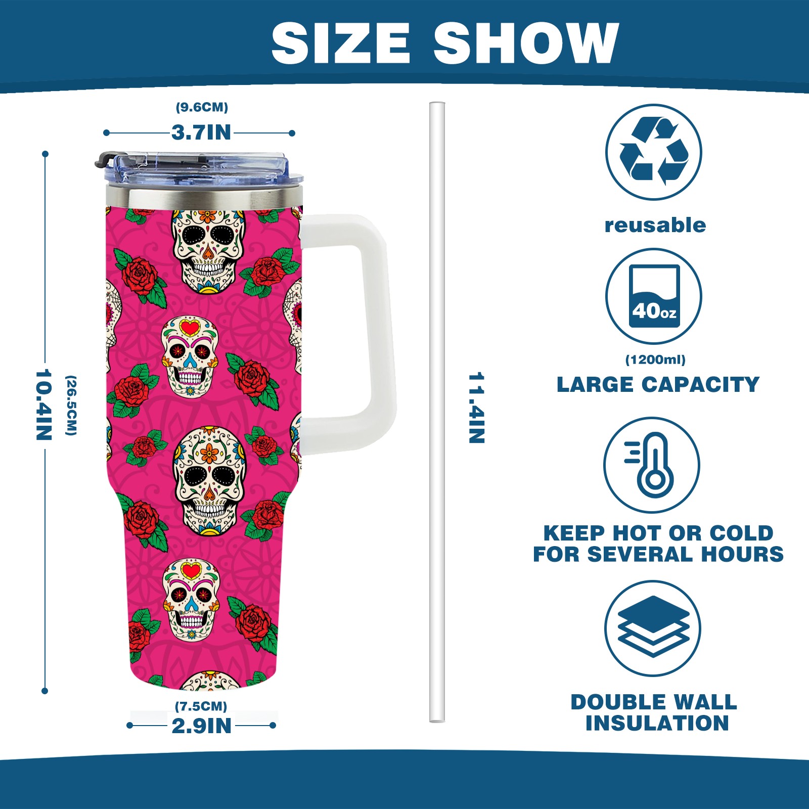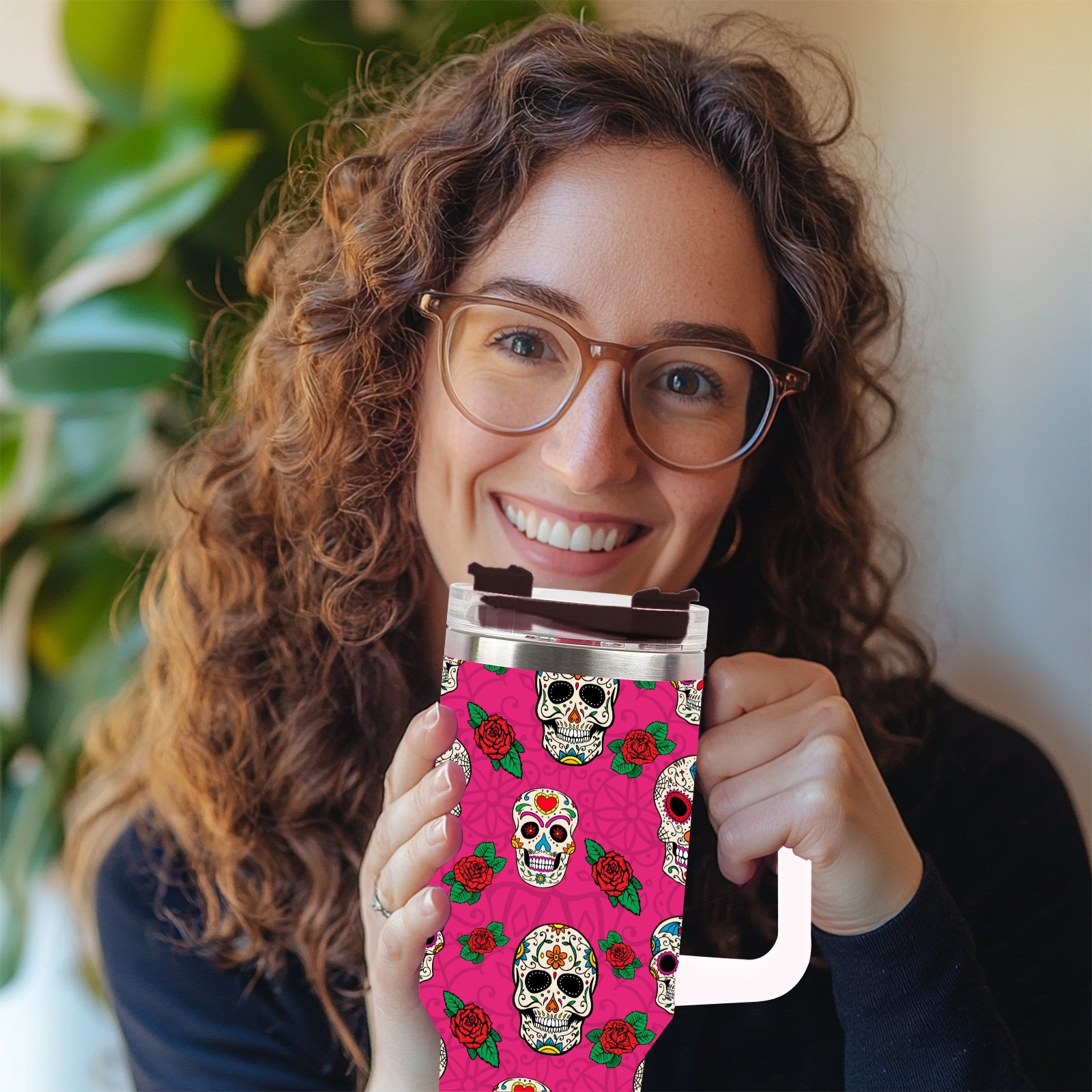 40 унций полностью напечатанный автомобильный стакан Sugar Skull