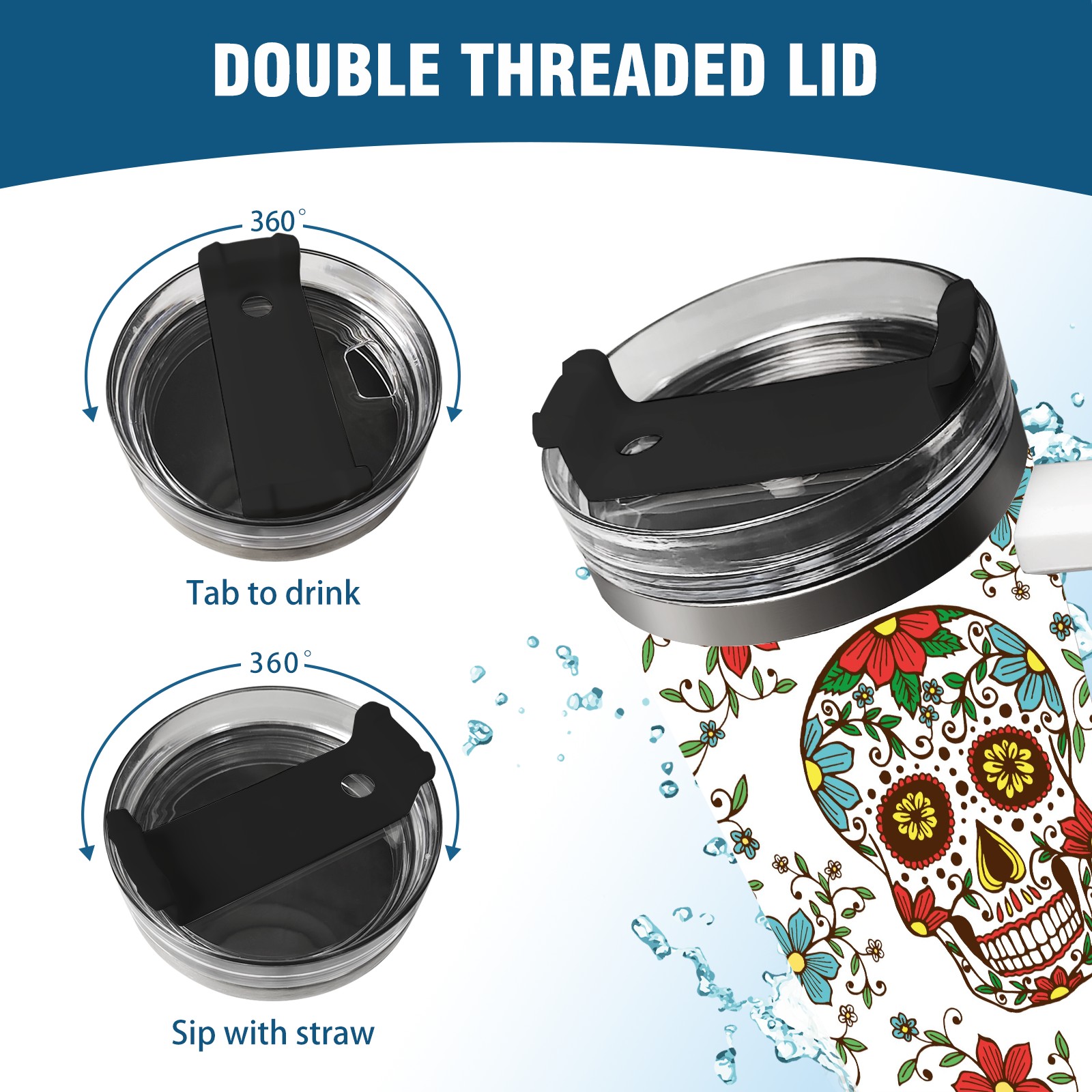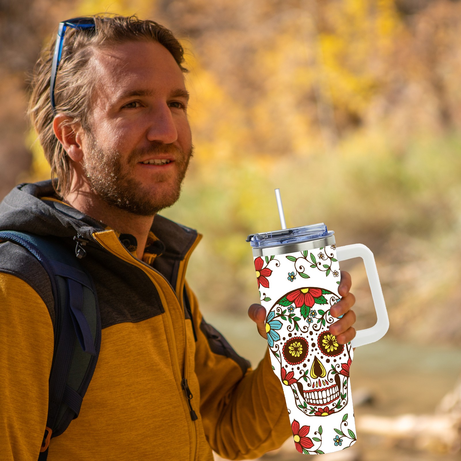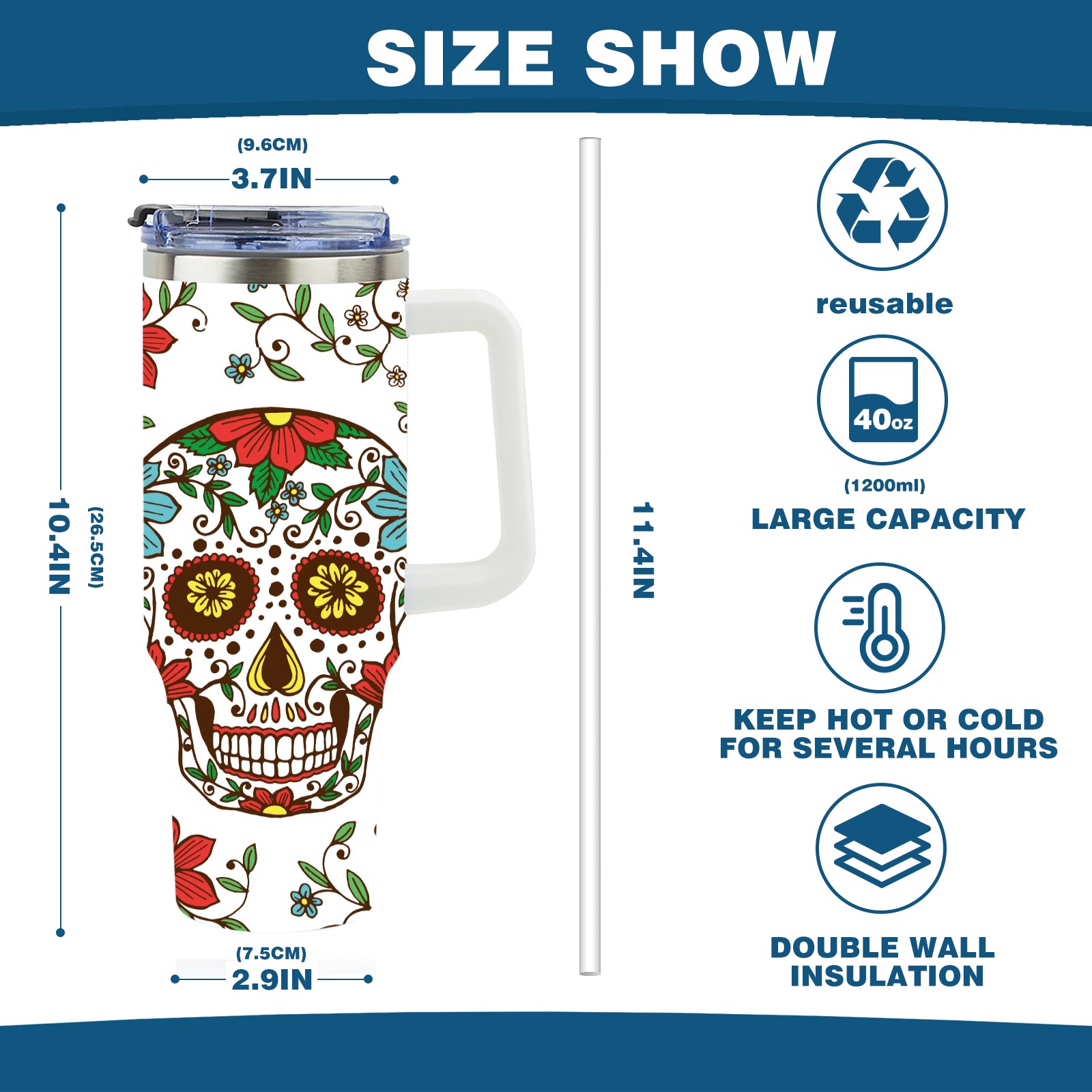 40 унций полностью напечатанный автомобильный стакан Sugar Skulls And Flowers Day Of The Dead