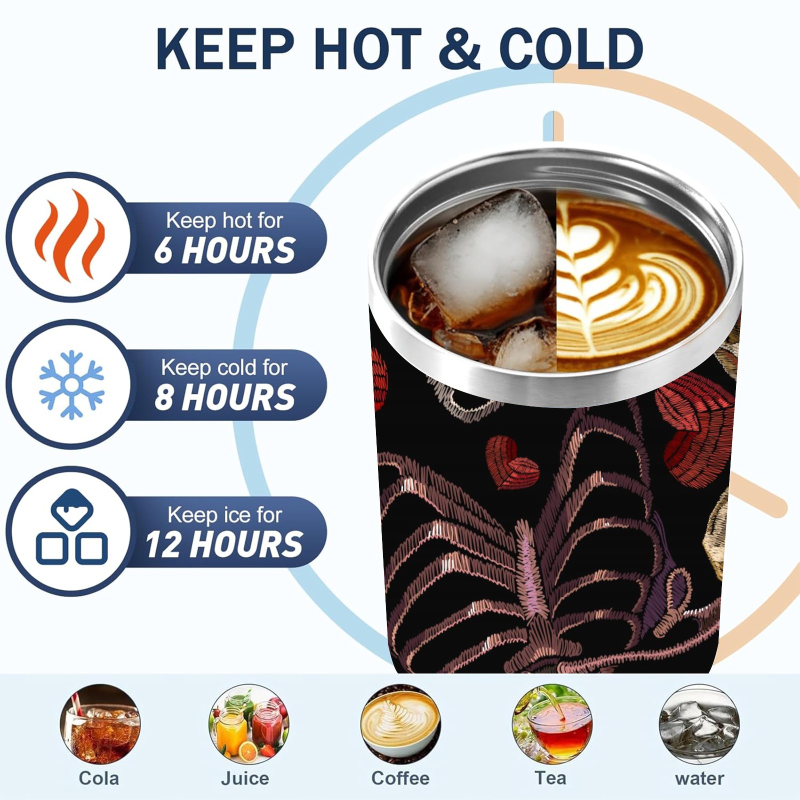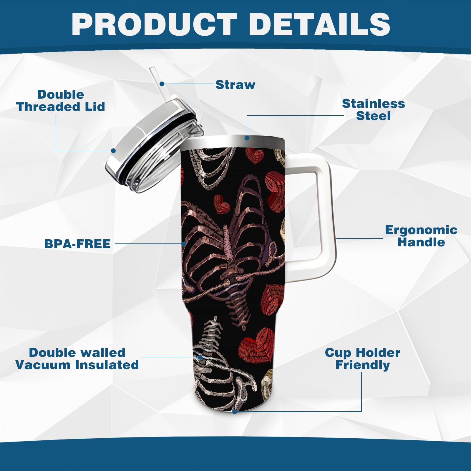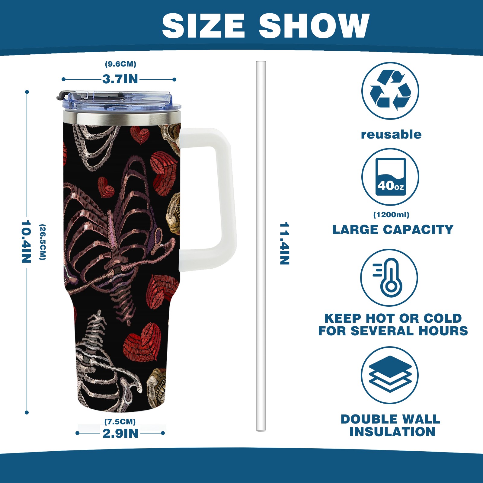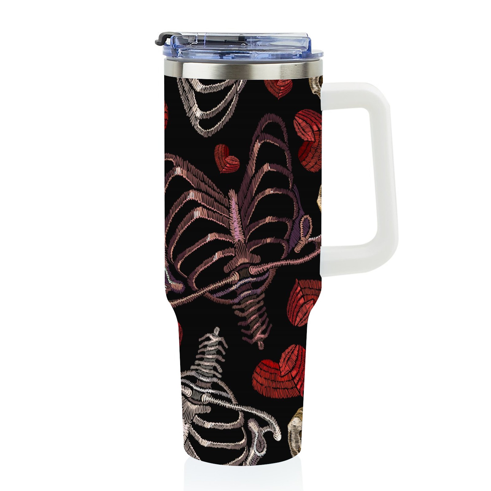 40 унций полностью напечатанный автомобильный стакан Retro Embroidery Skull With Red Love