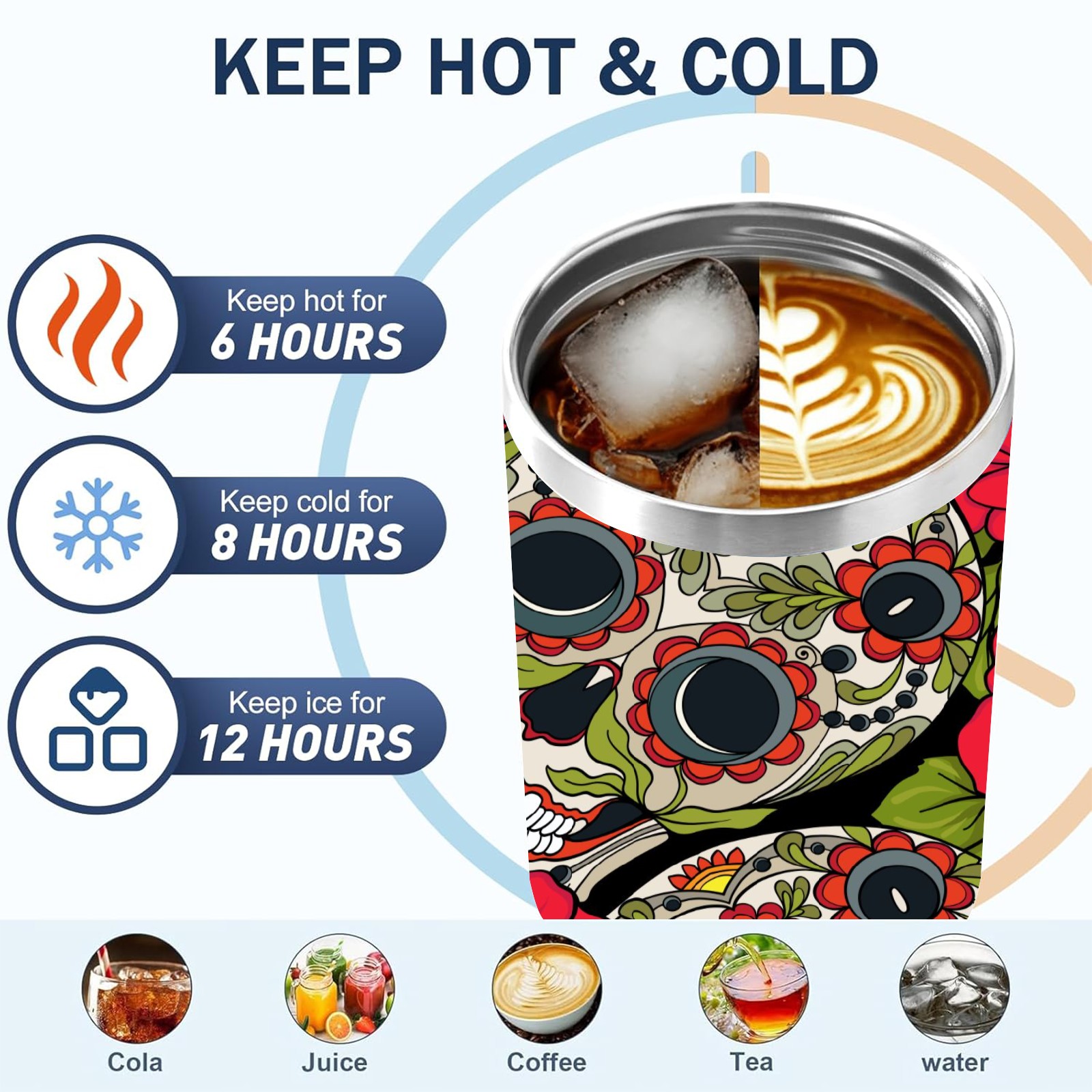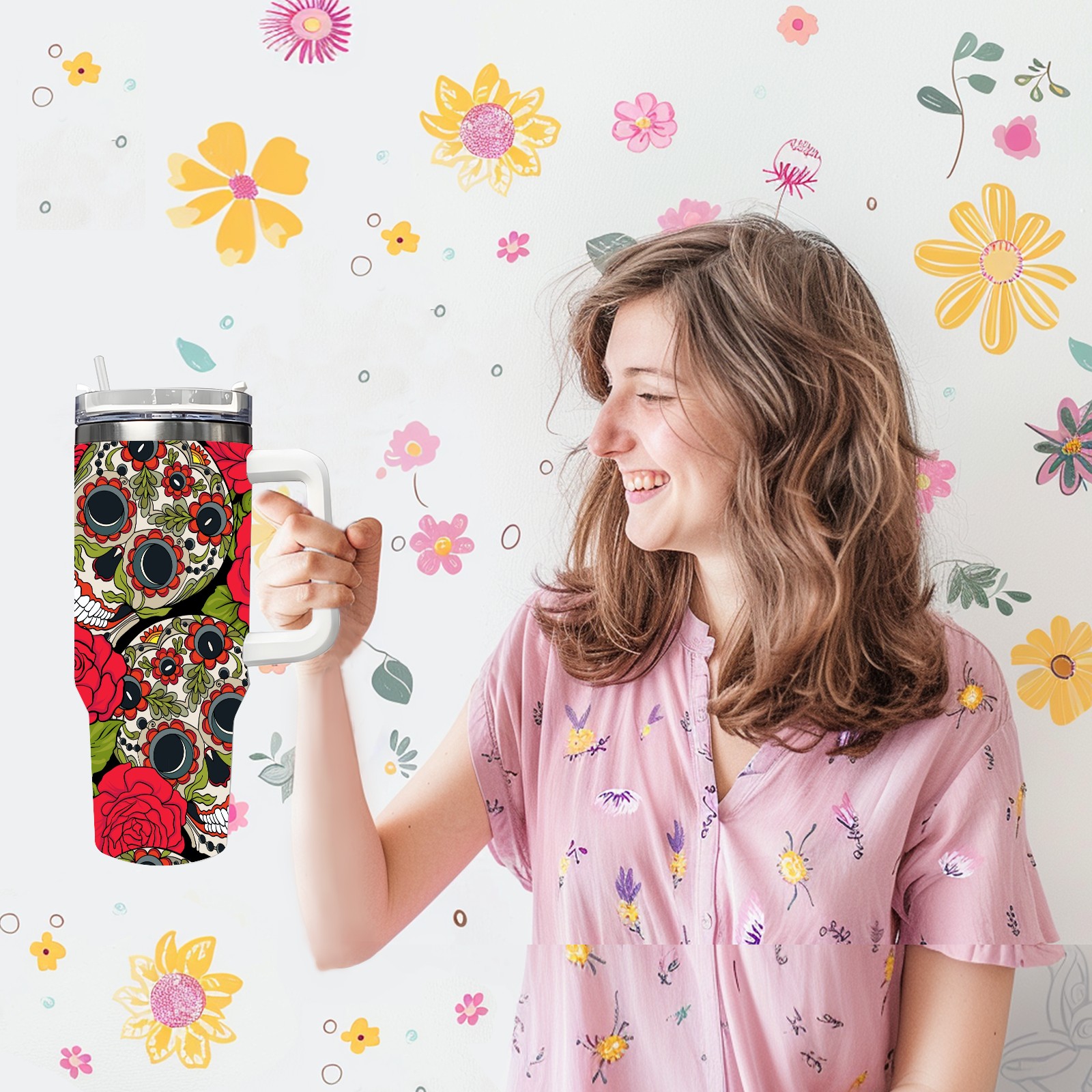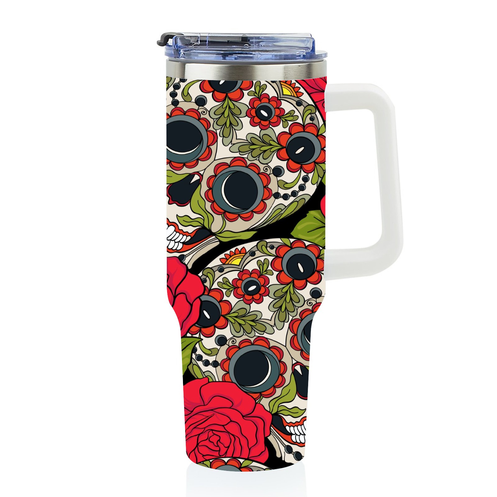 40 унций полностью напечатанный автомобильный стакан Sugar Skull Red Rose