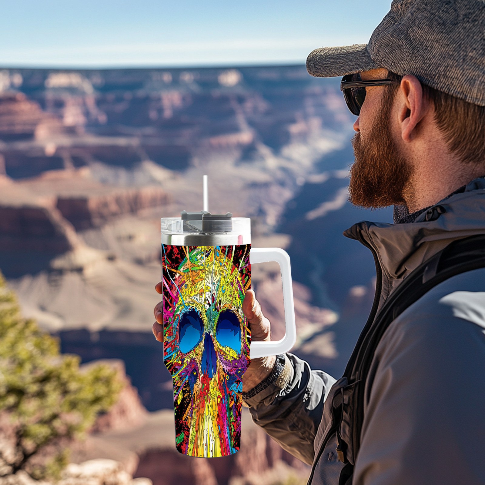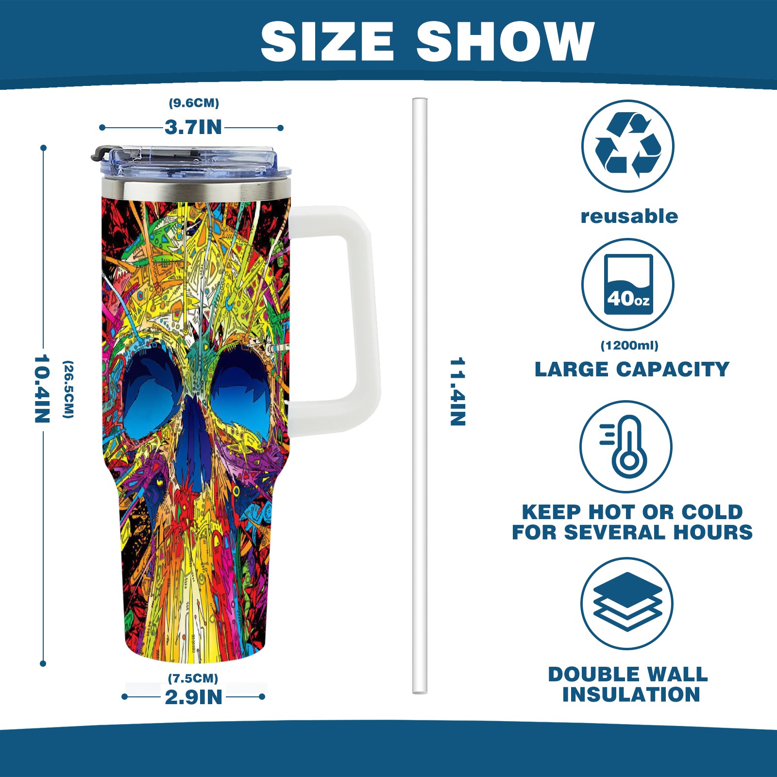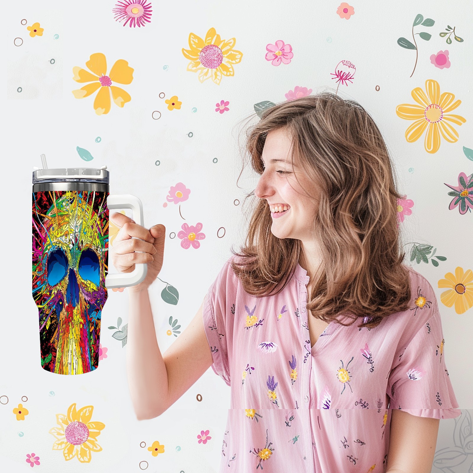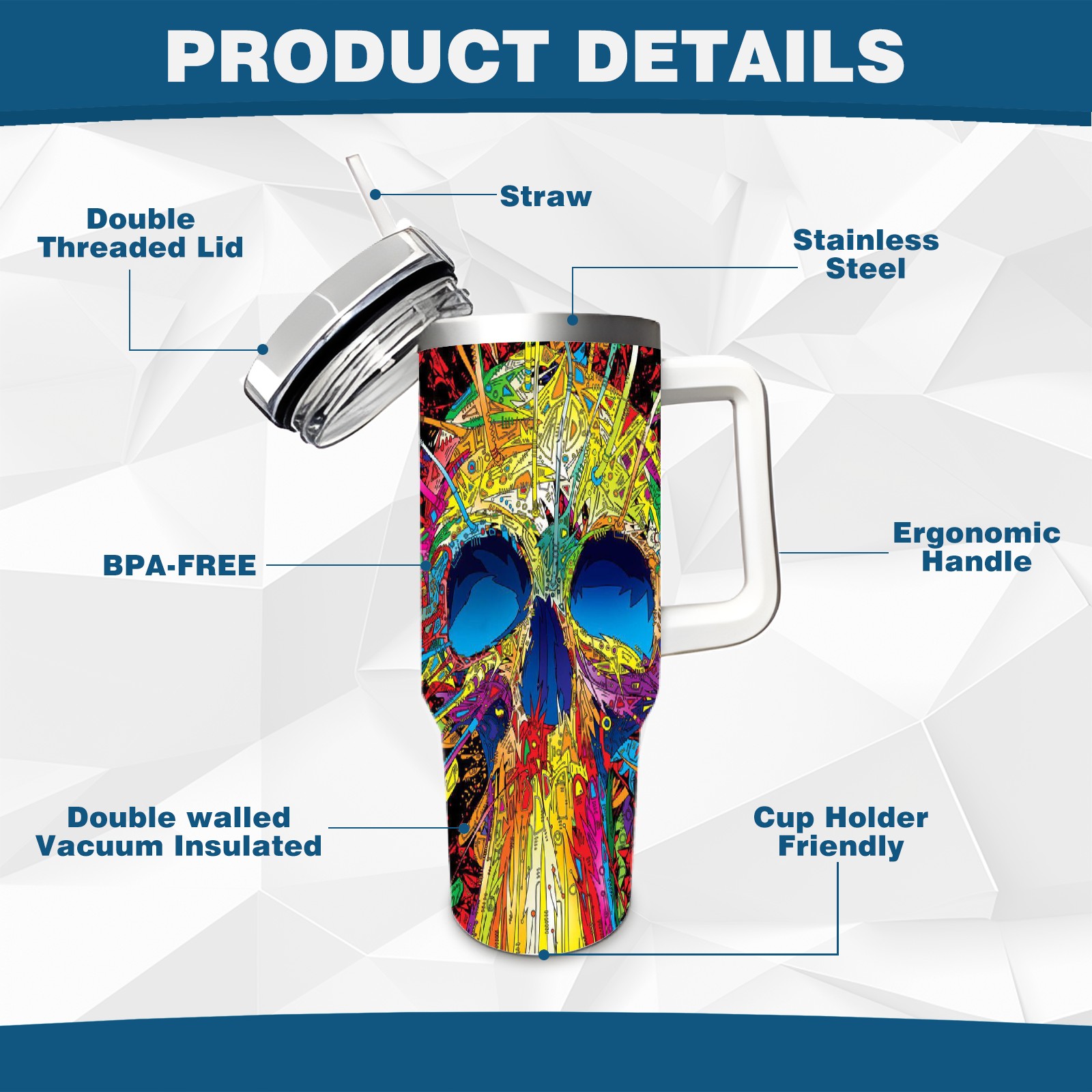 40 унций полностью напечатанный автомобильный стакан Colorful Skull