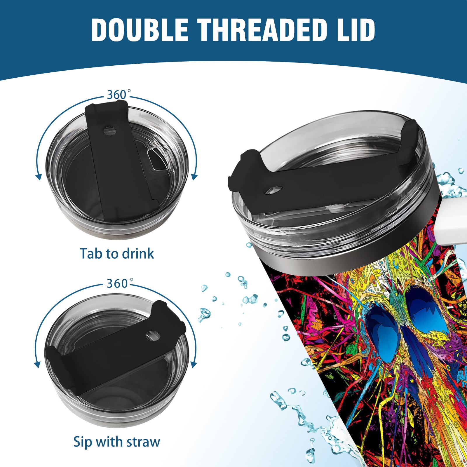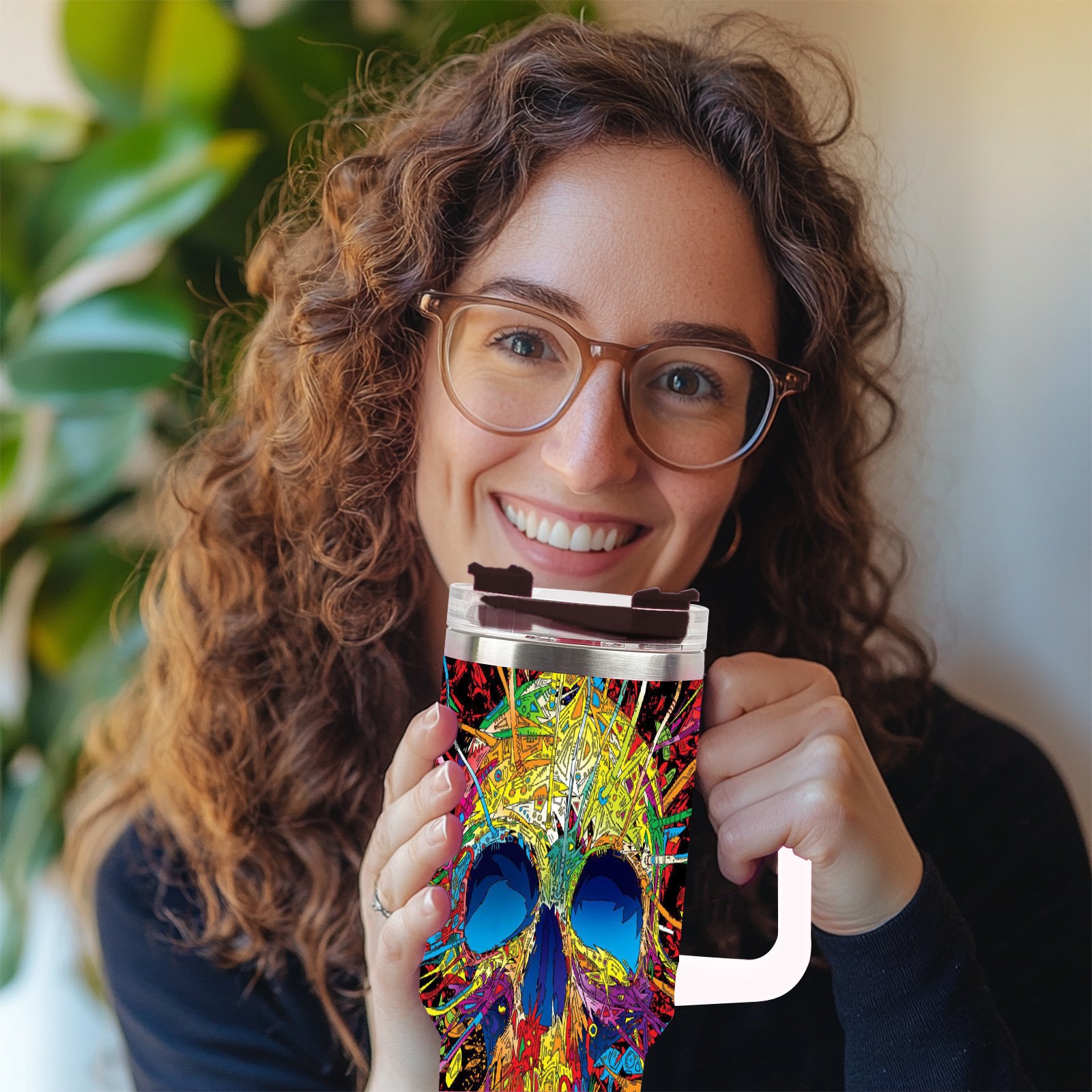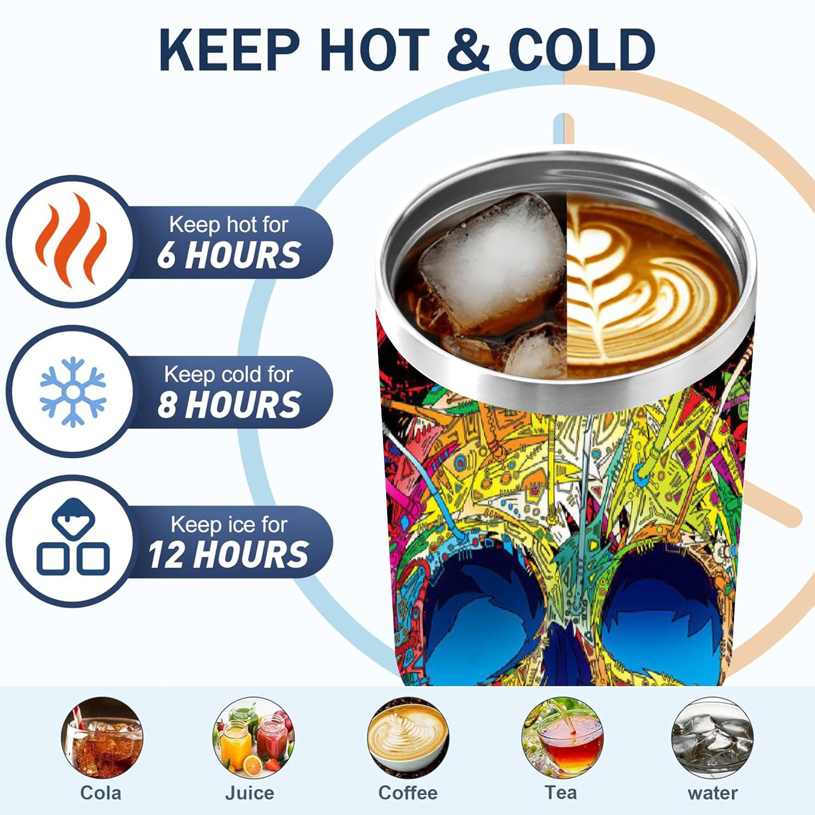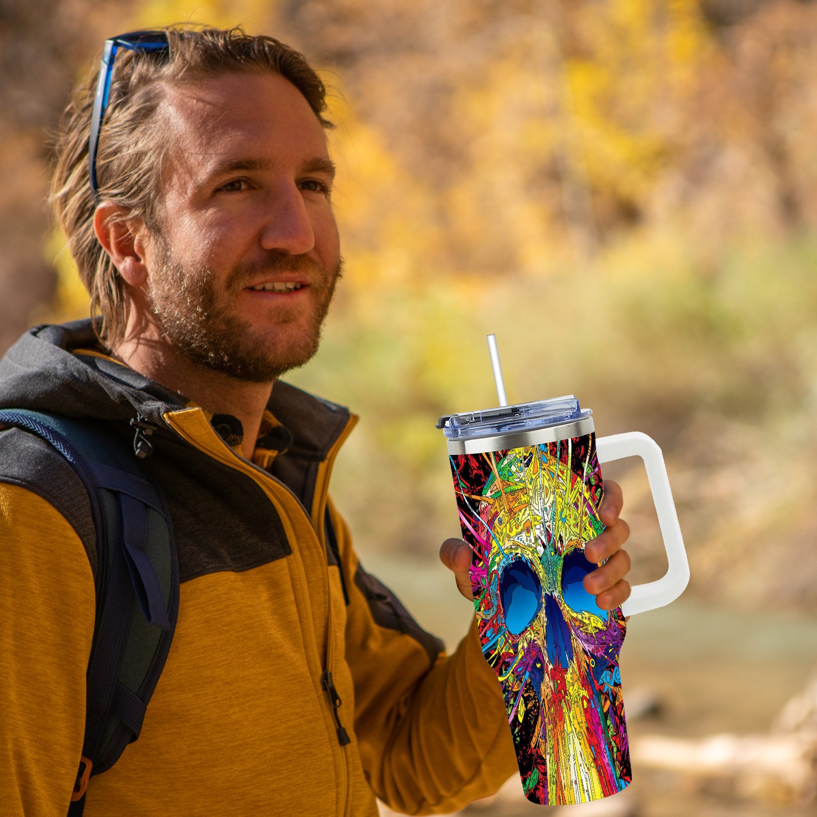40 унций полностью напечатанный автомобильный стакан Colorful Skull