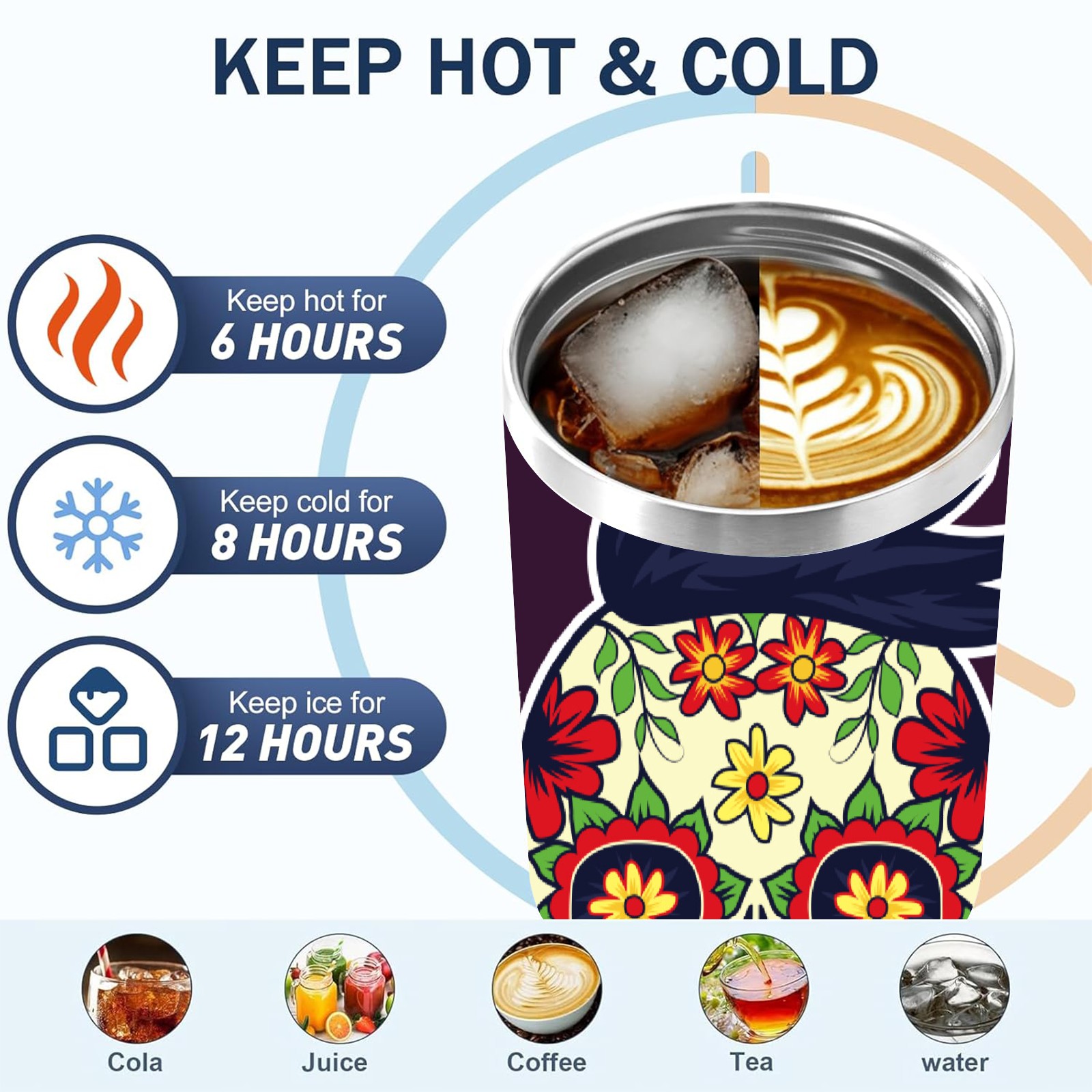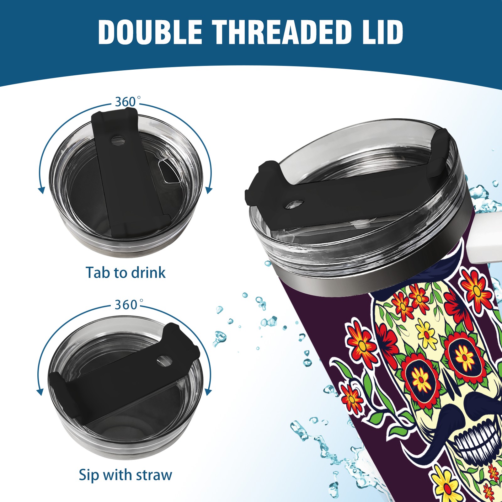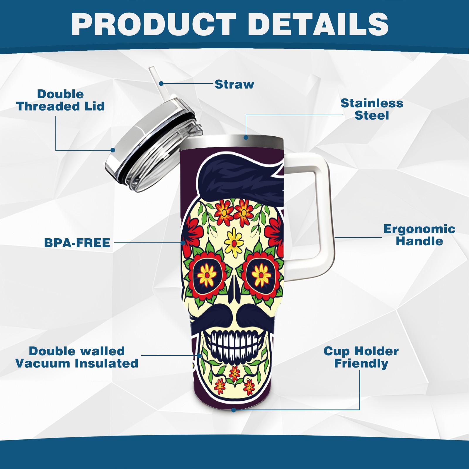 40 унций полностью напечатанный автомобильный стакан Sugar Skull Day Of The Dead
