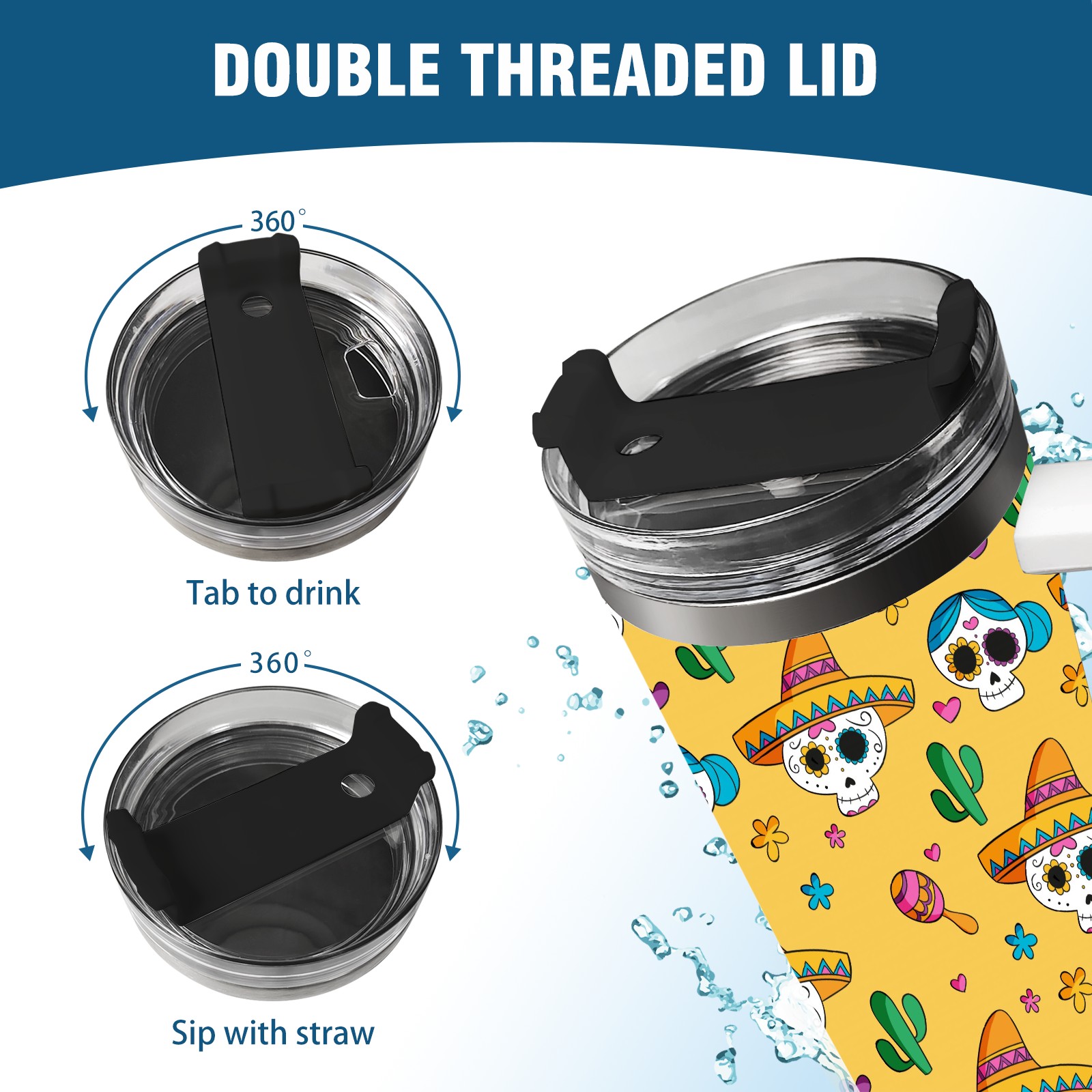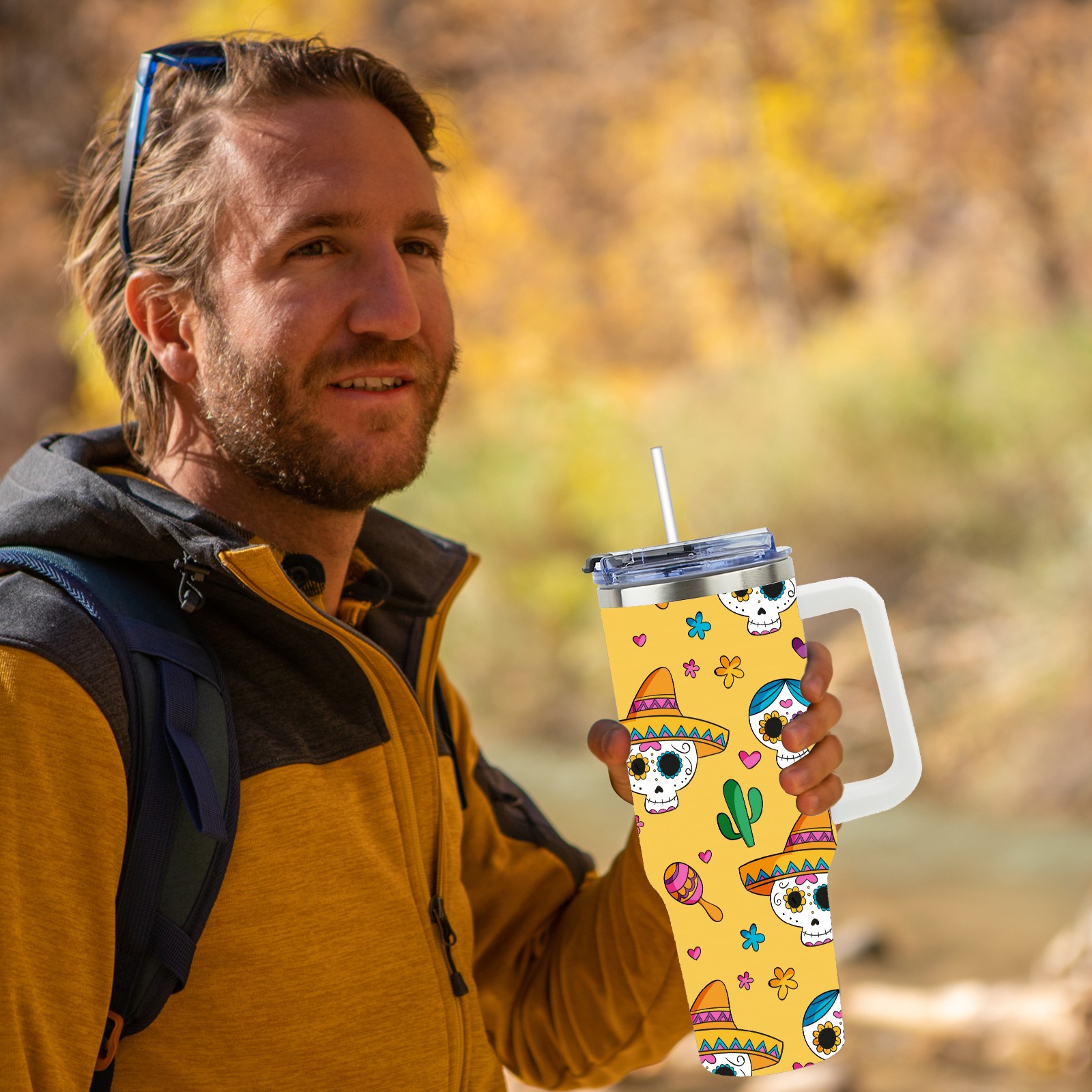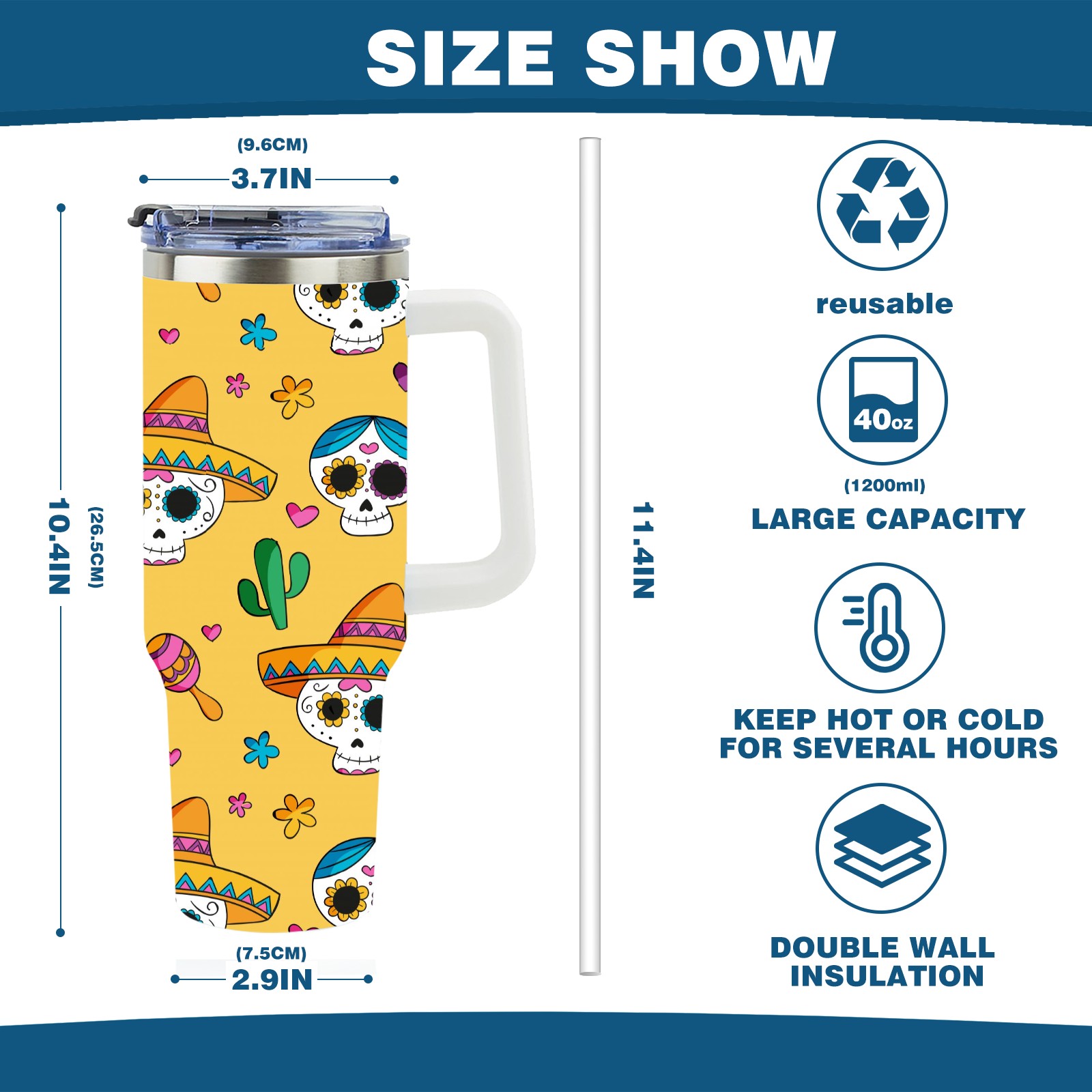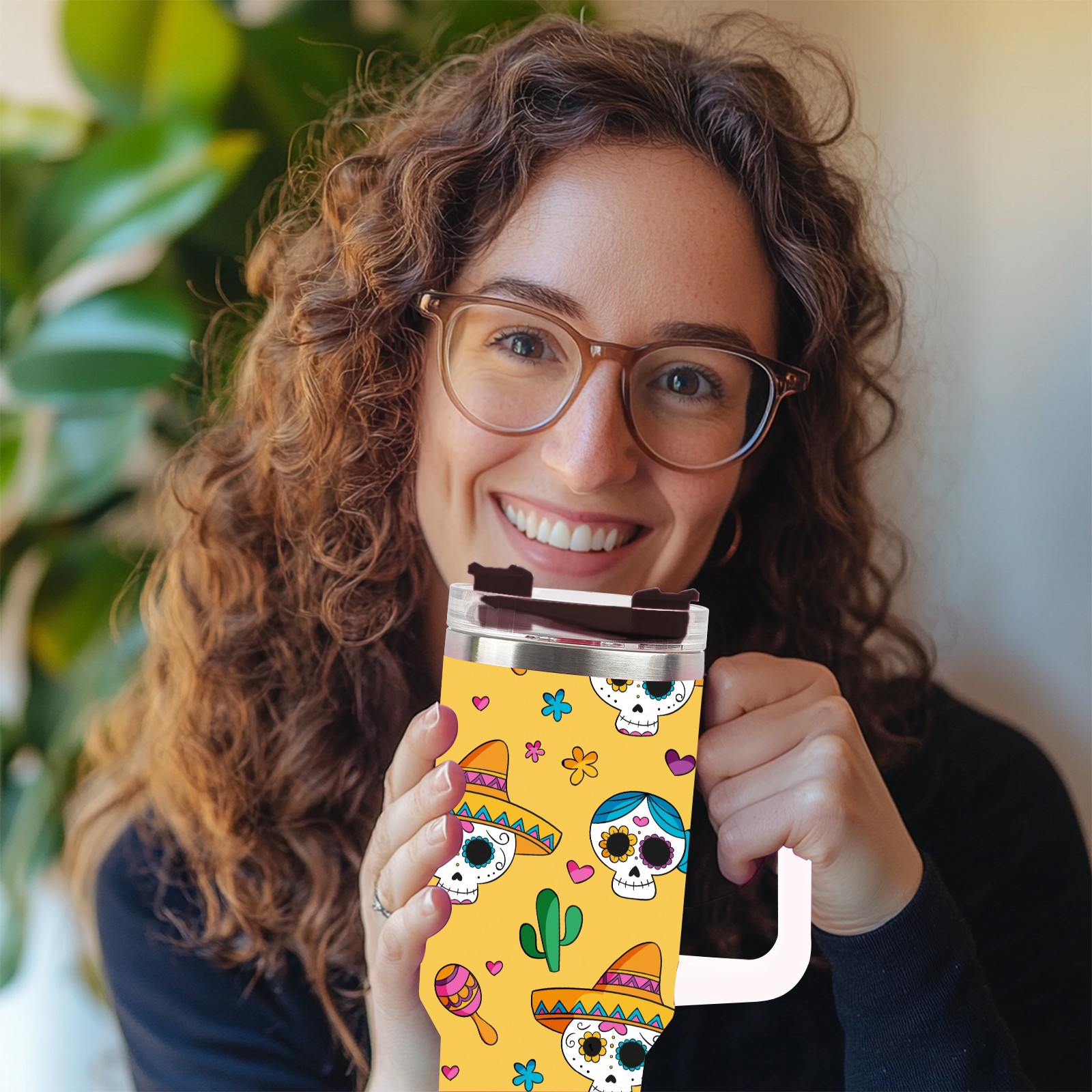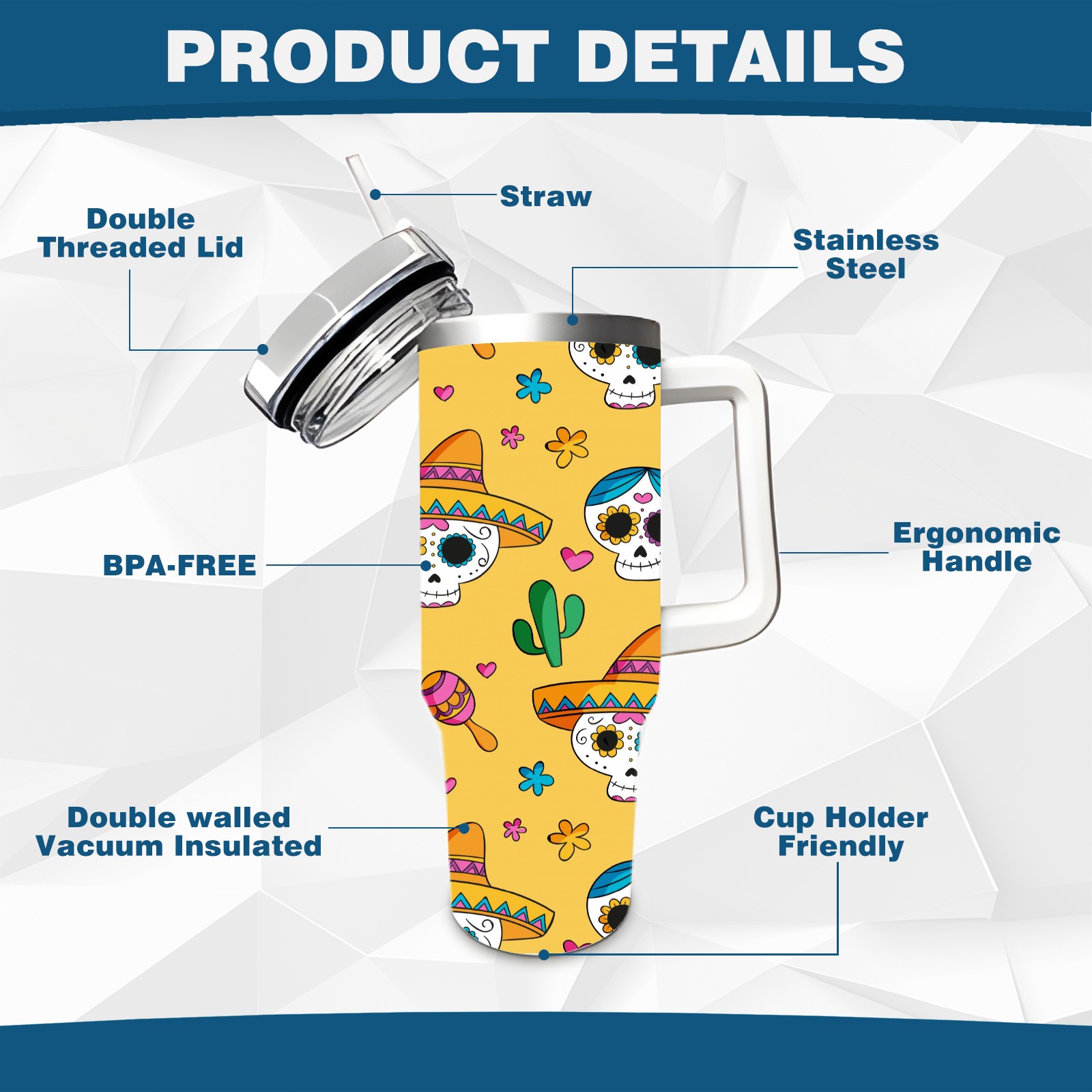 40 унций полностью напечатанный автомобильный стакан Skull Cactus