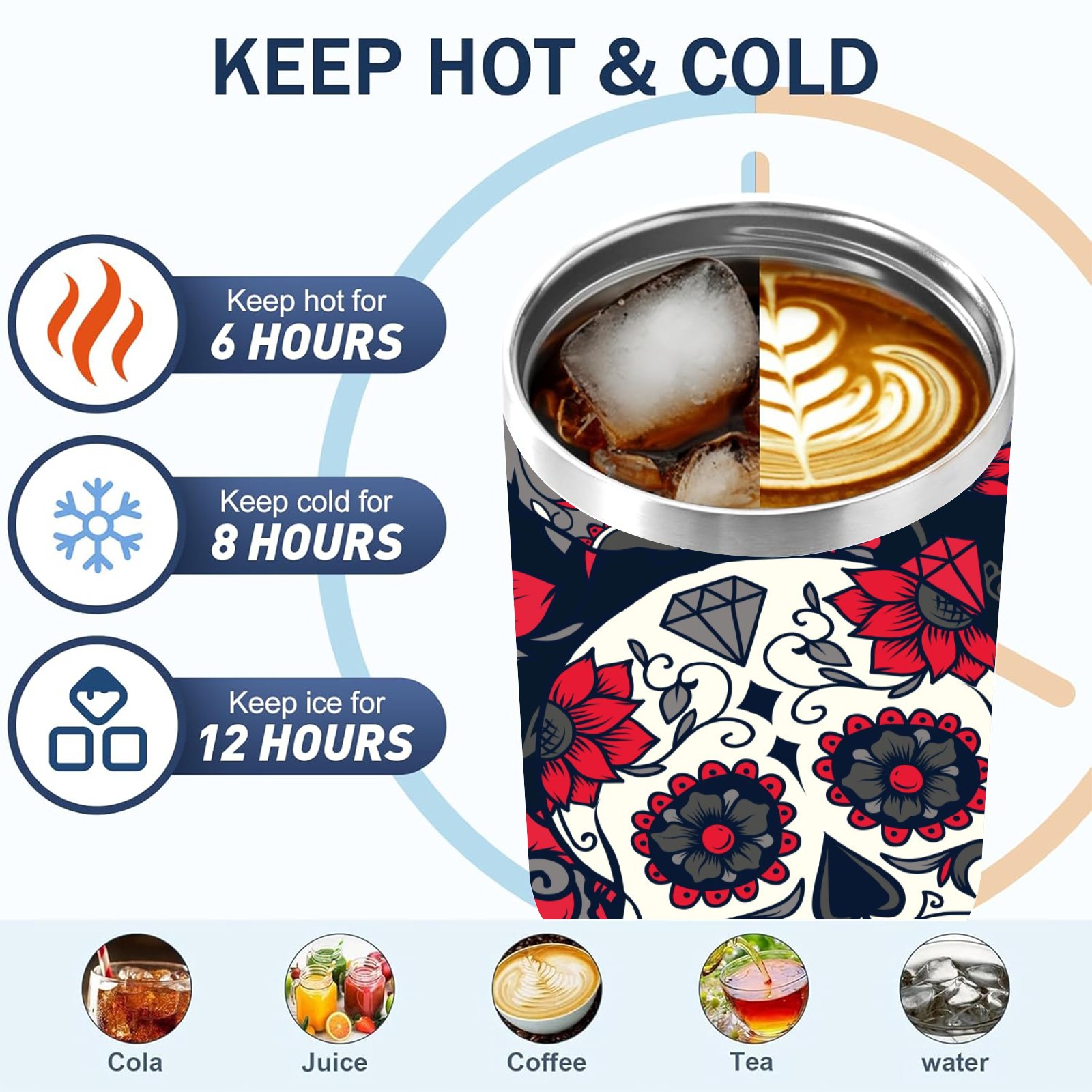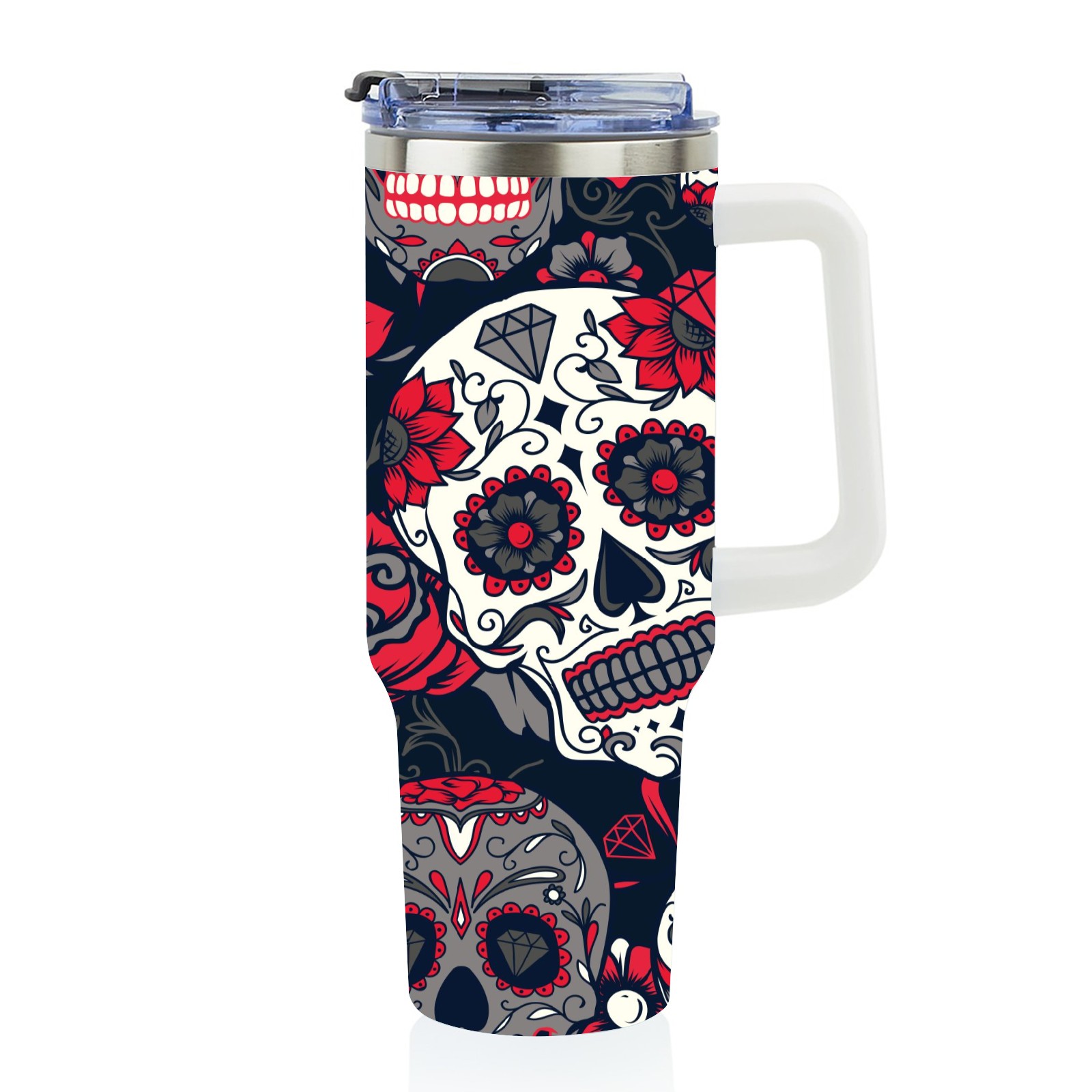 40 унций полностью напечатанный автомобильный стакан Mexico Sugar Skull Rose