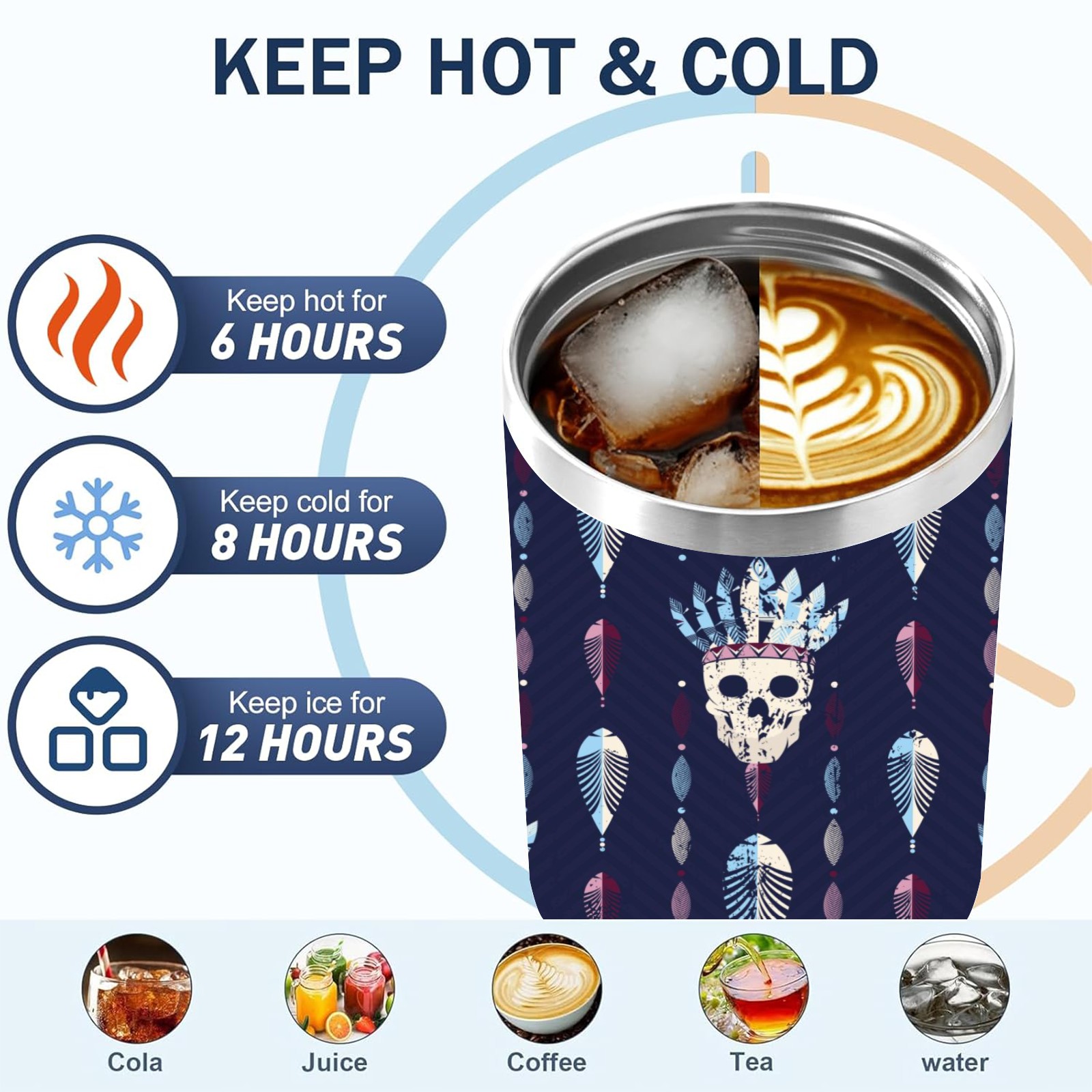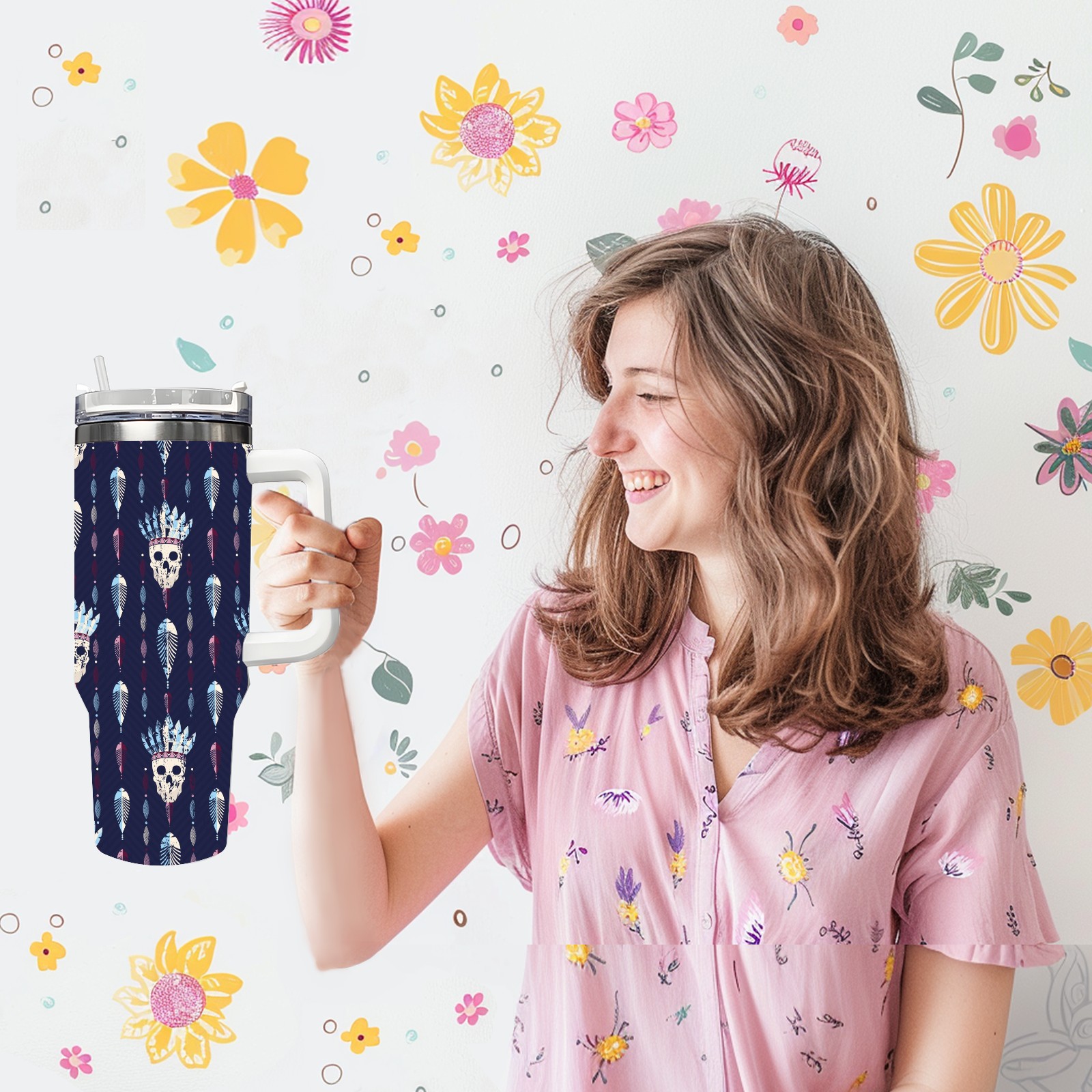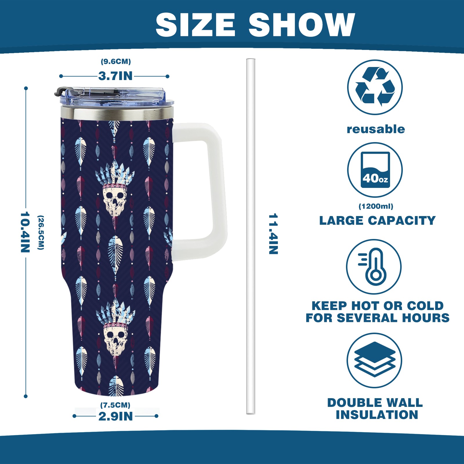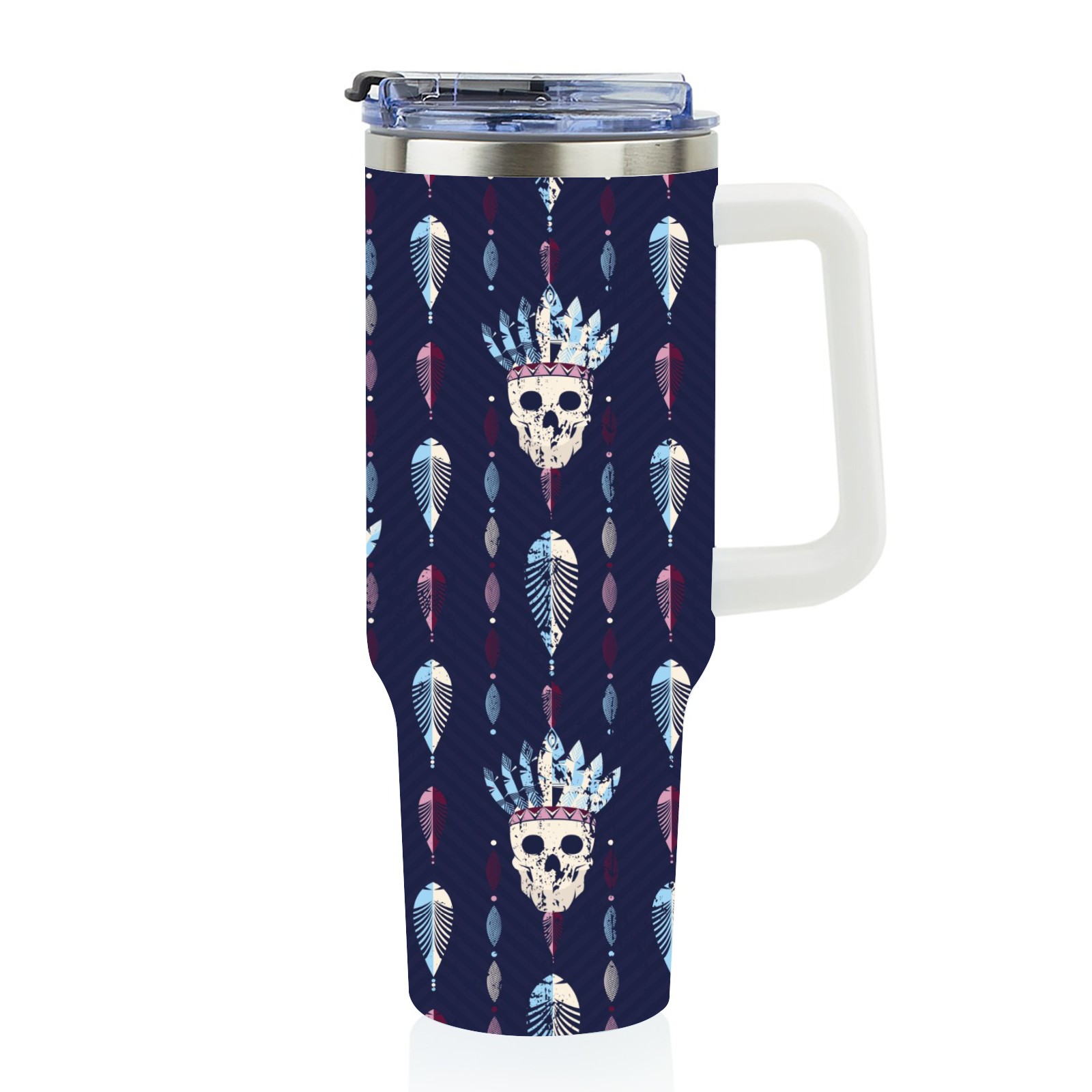 40 унций полностью напечатанный автомобильный стакан Skull Head Feather
