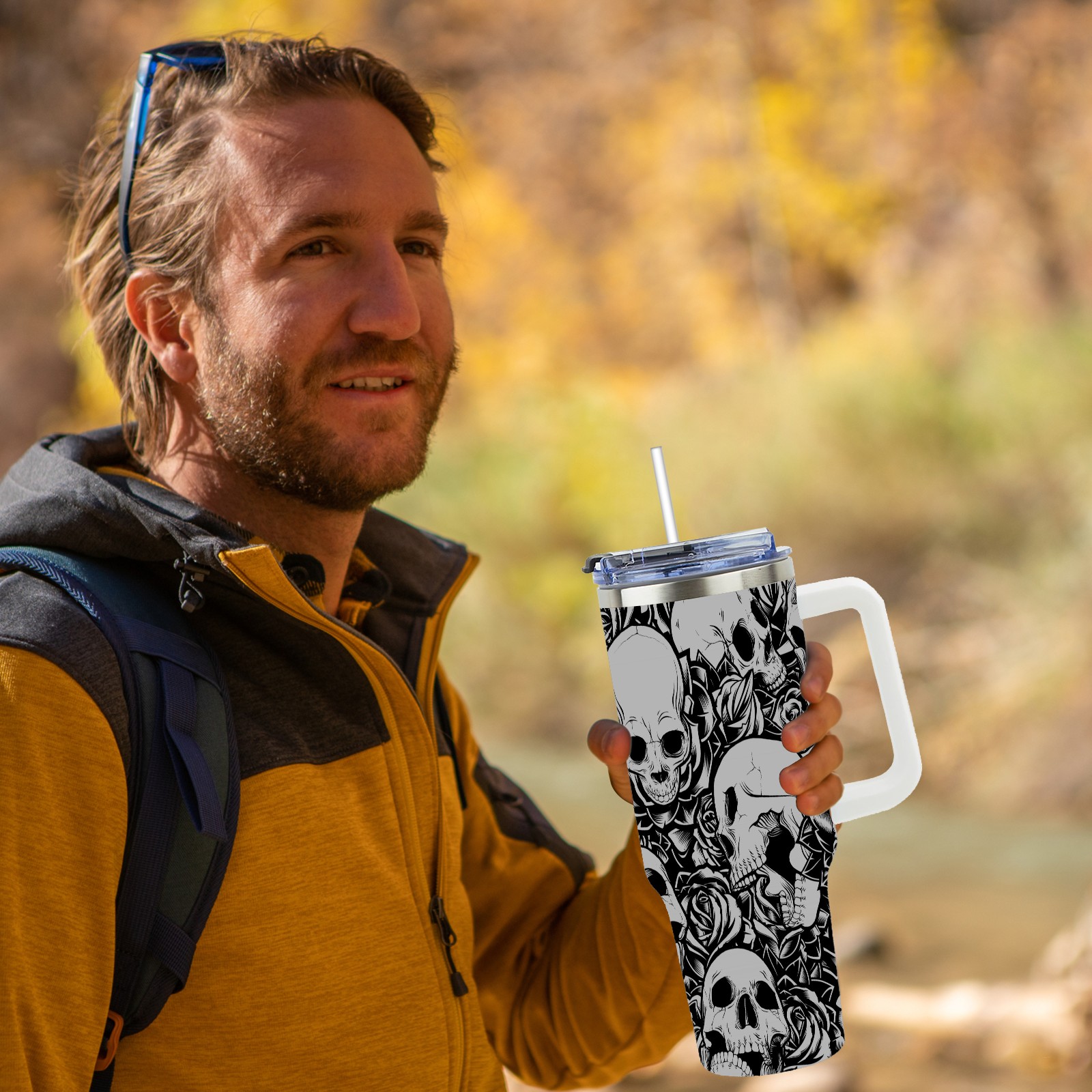 40 унций полностью напечатанный автомобильный стакан Skull Black Grey Funny