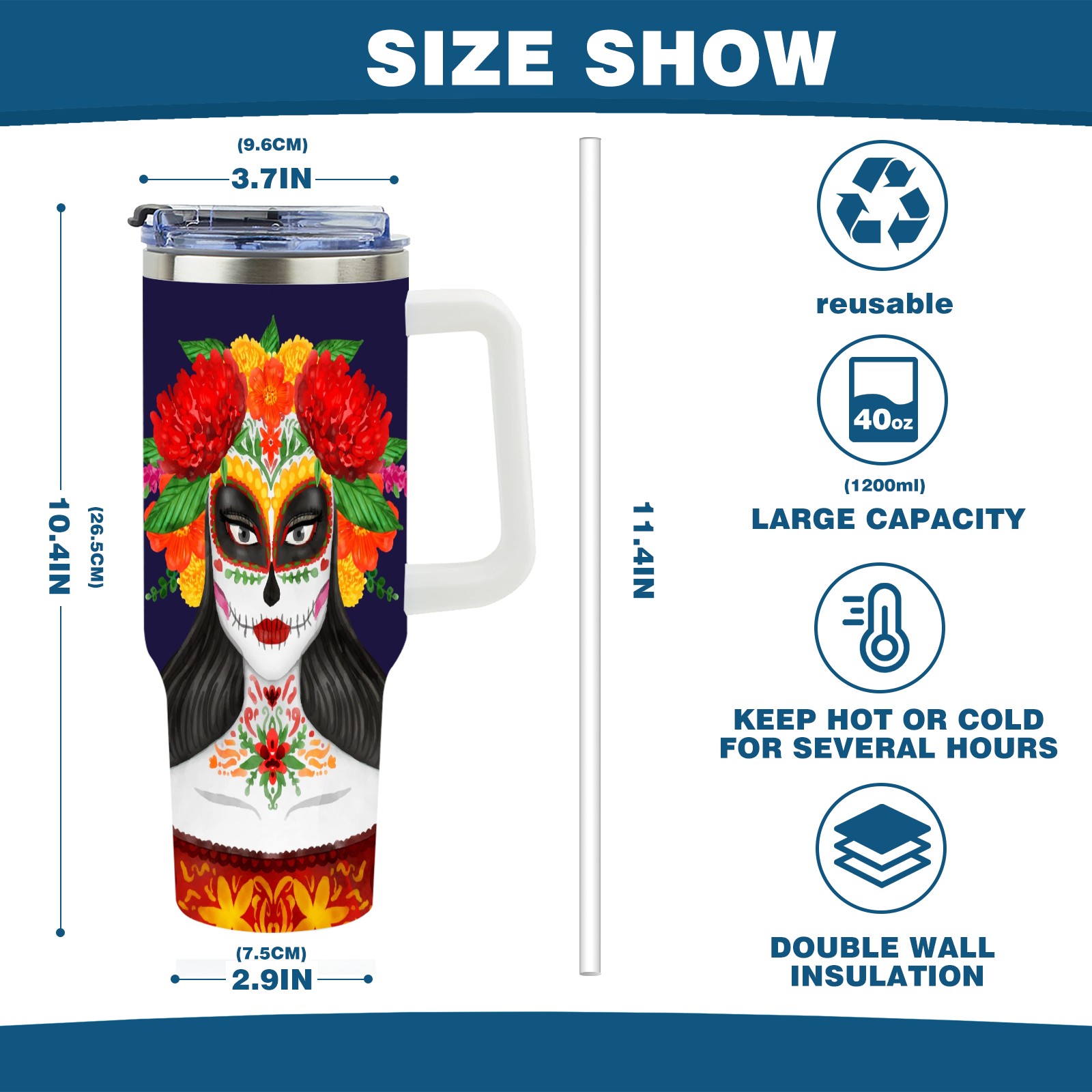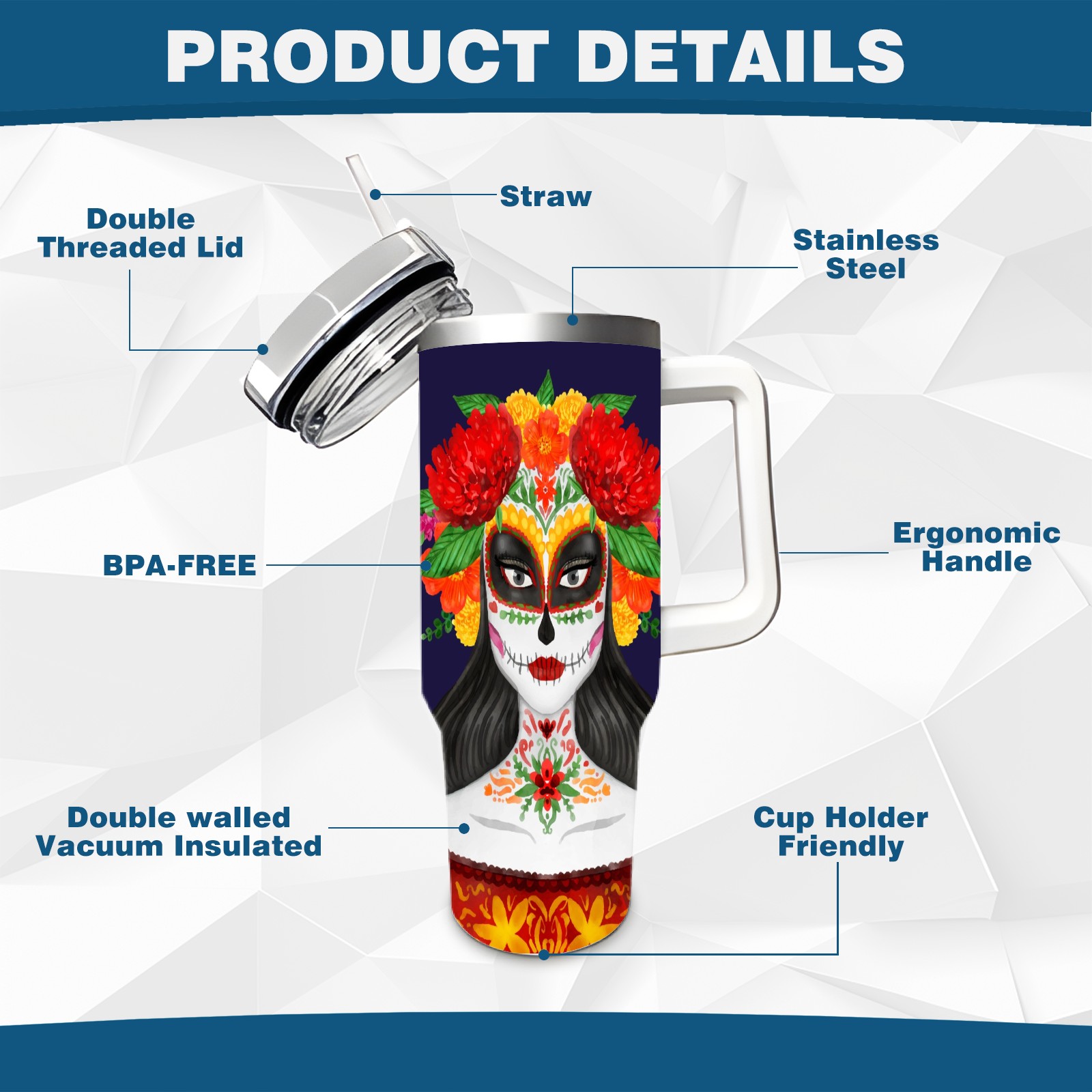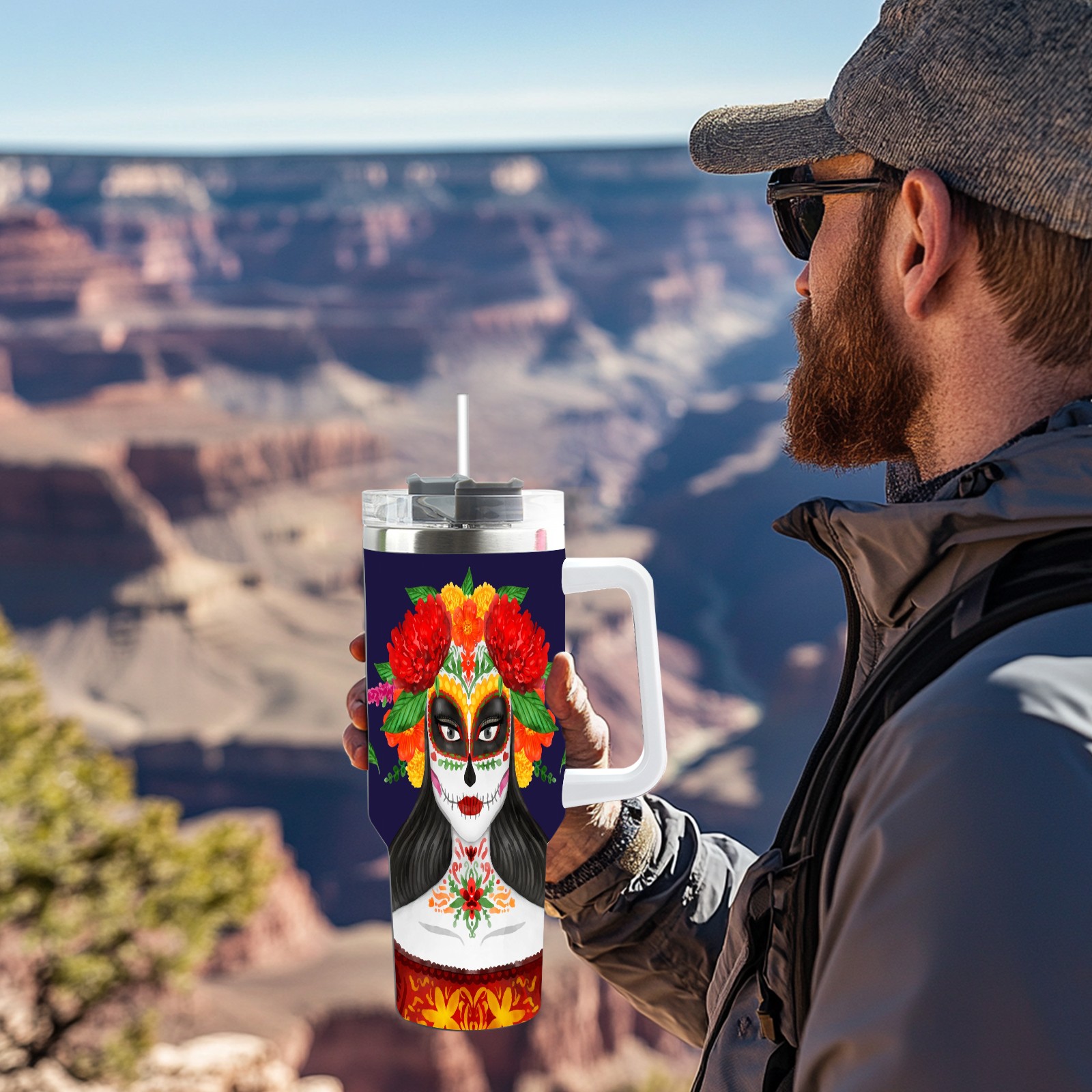 40 унций полностью напечатанный автомобильный стакан Mexican Skull
