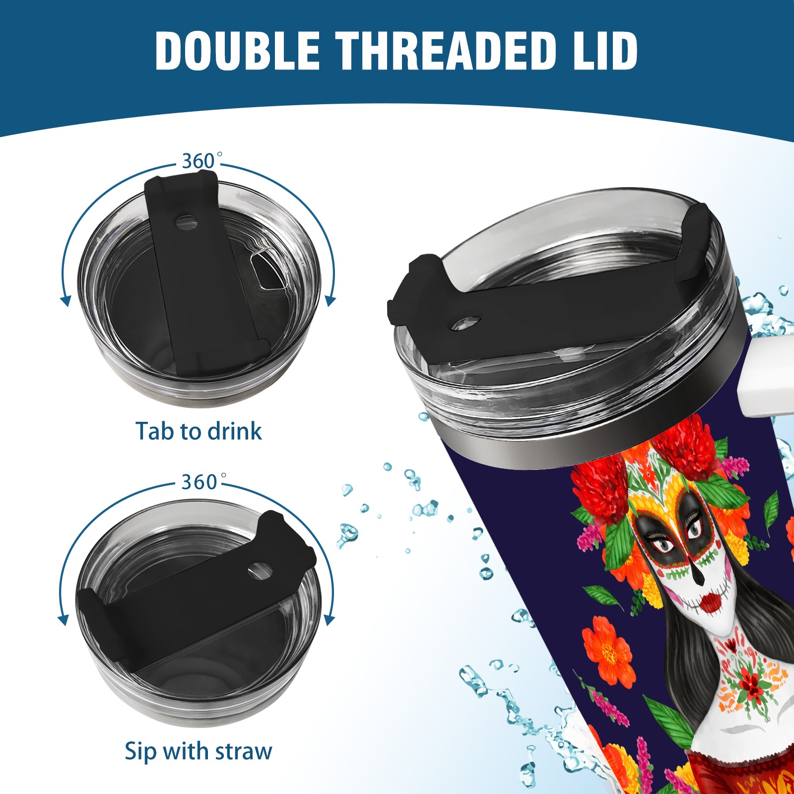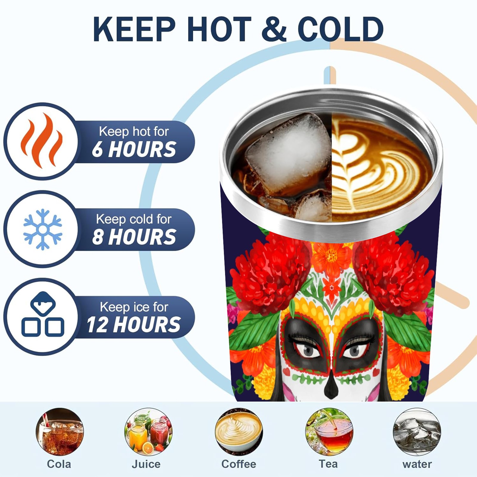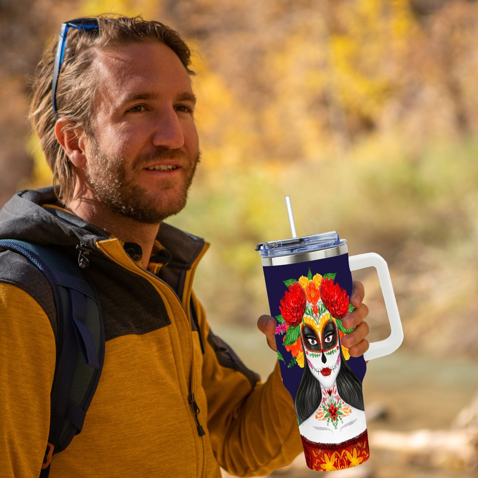 40 унций полностью напечатанный автомобильный стакан Mexican Skull