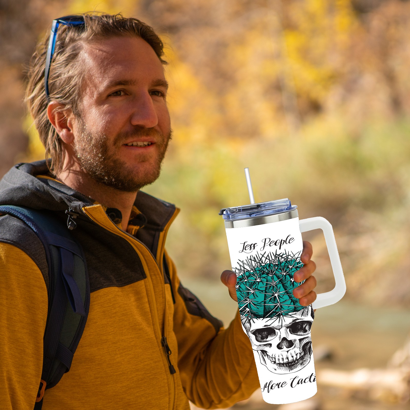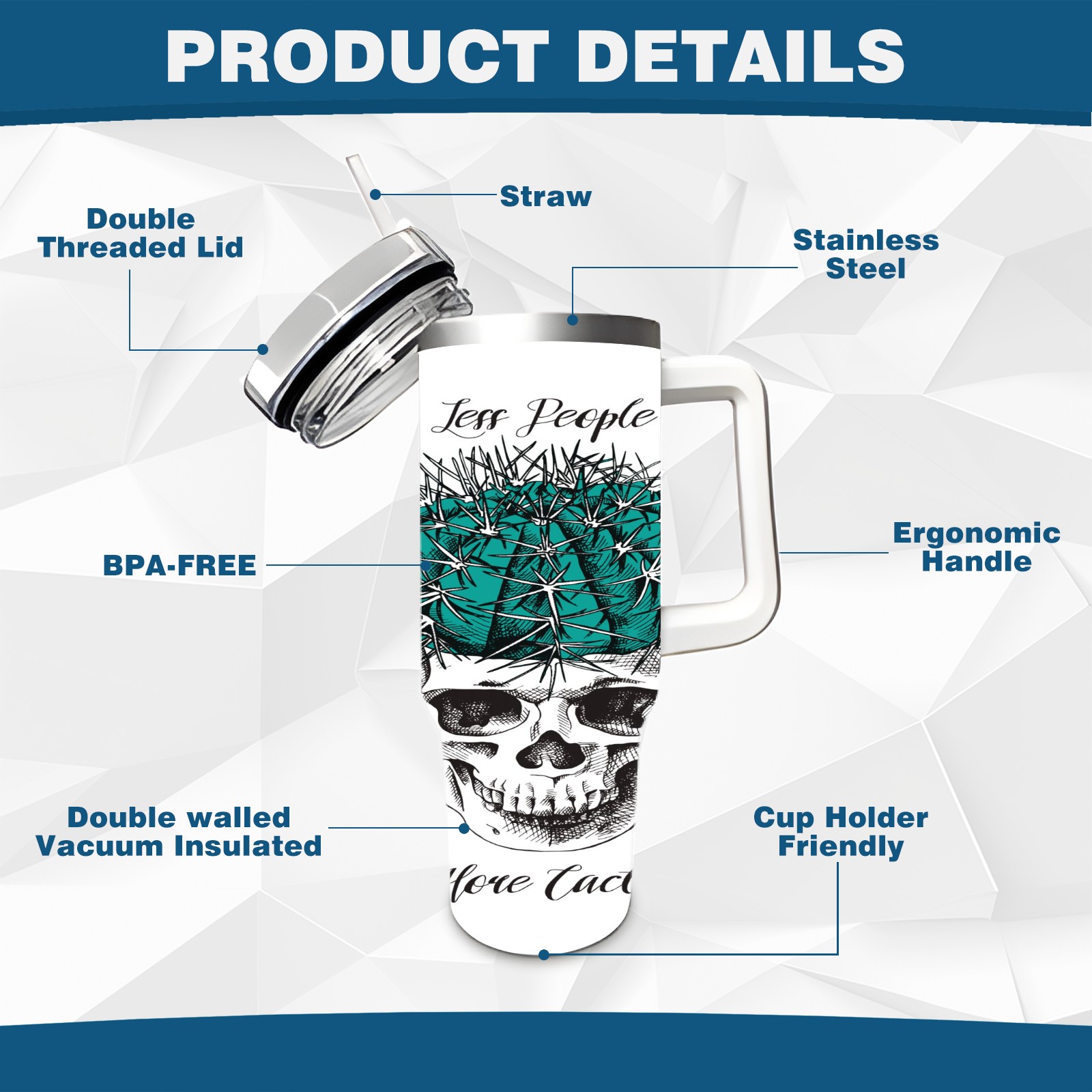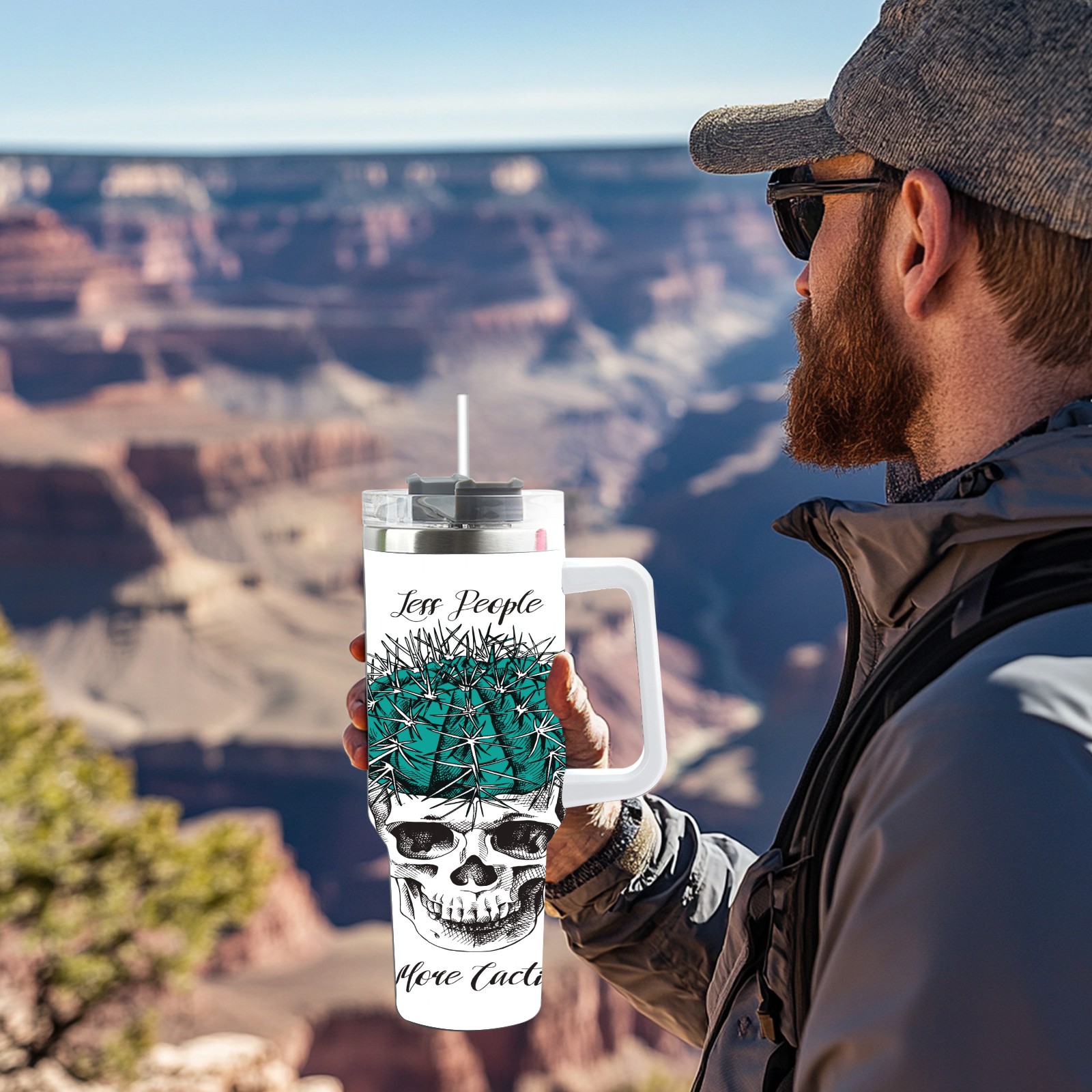 40 унций полностью напечатанный автомобильный стакан Skull Cactus