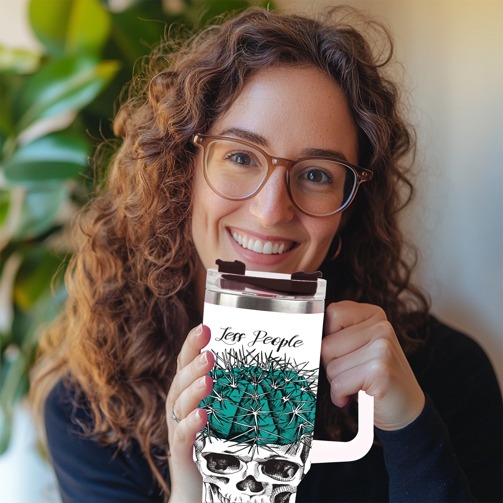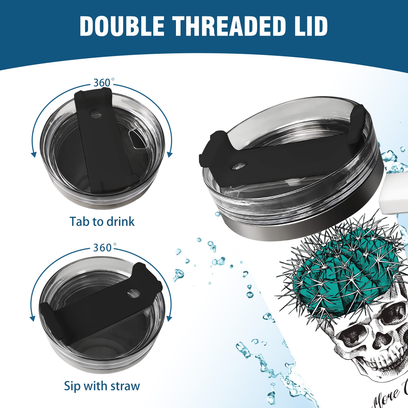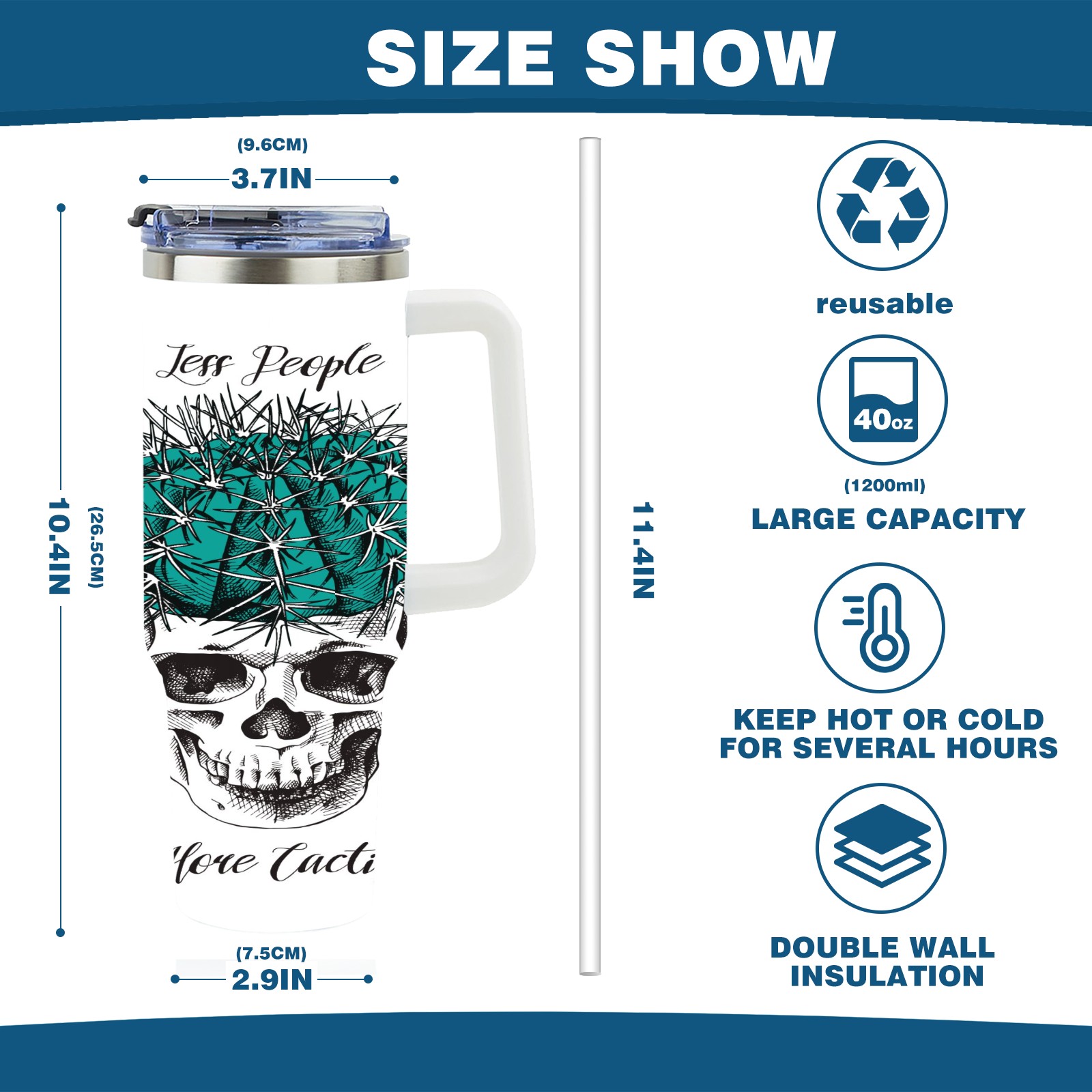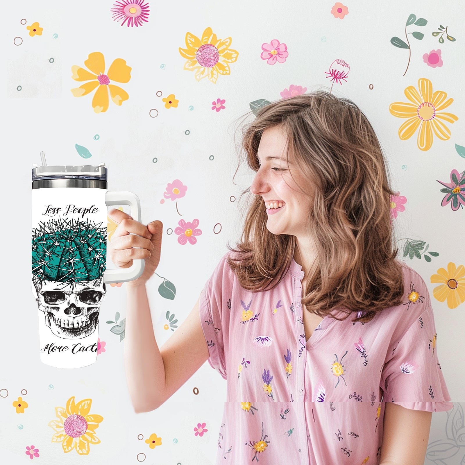 40 унций полностью напечатанный автомобильный стакан Skull Cactus