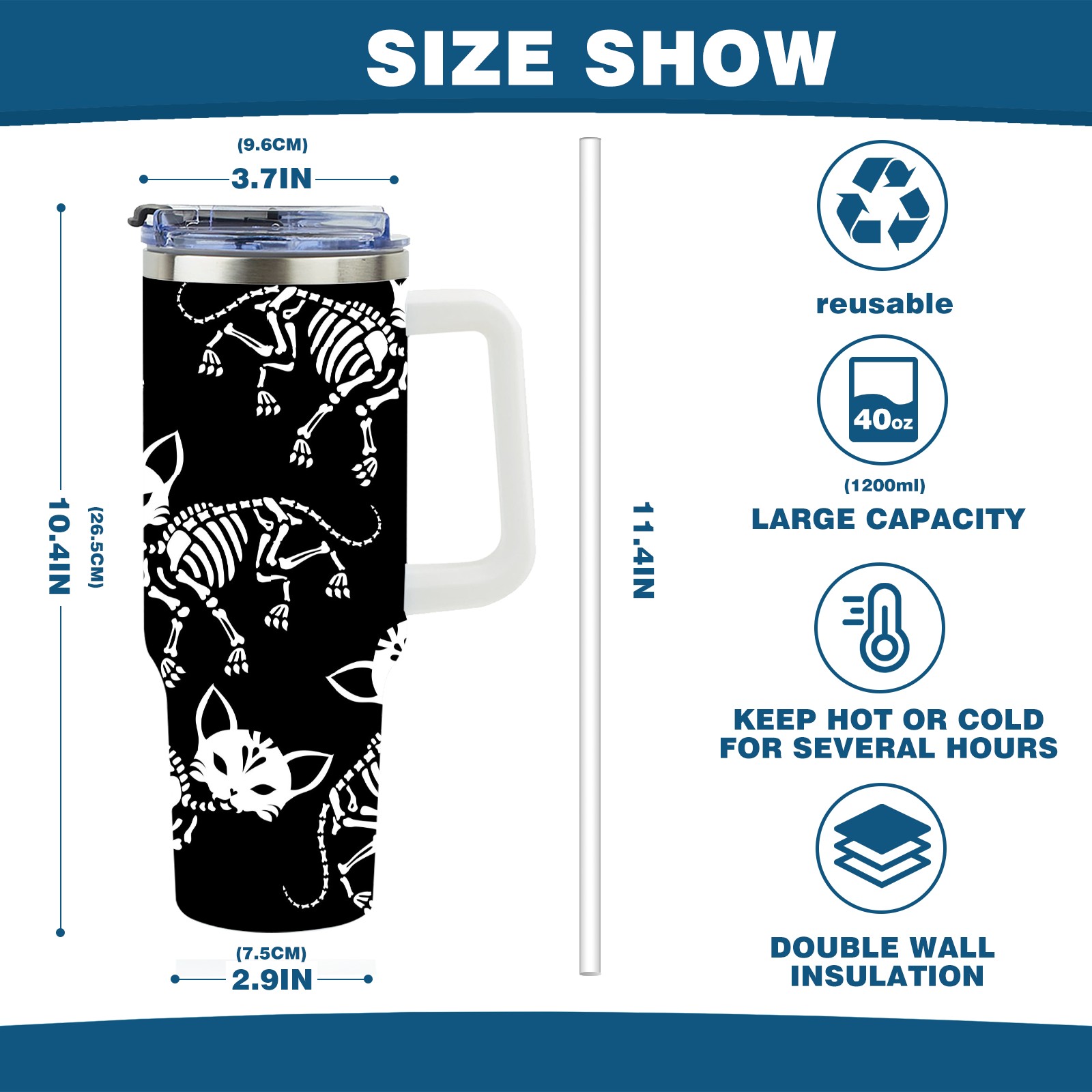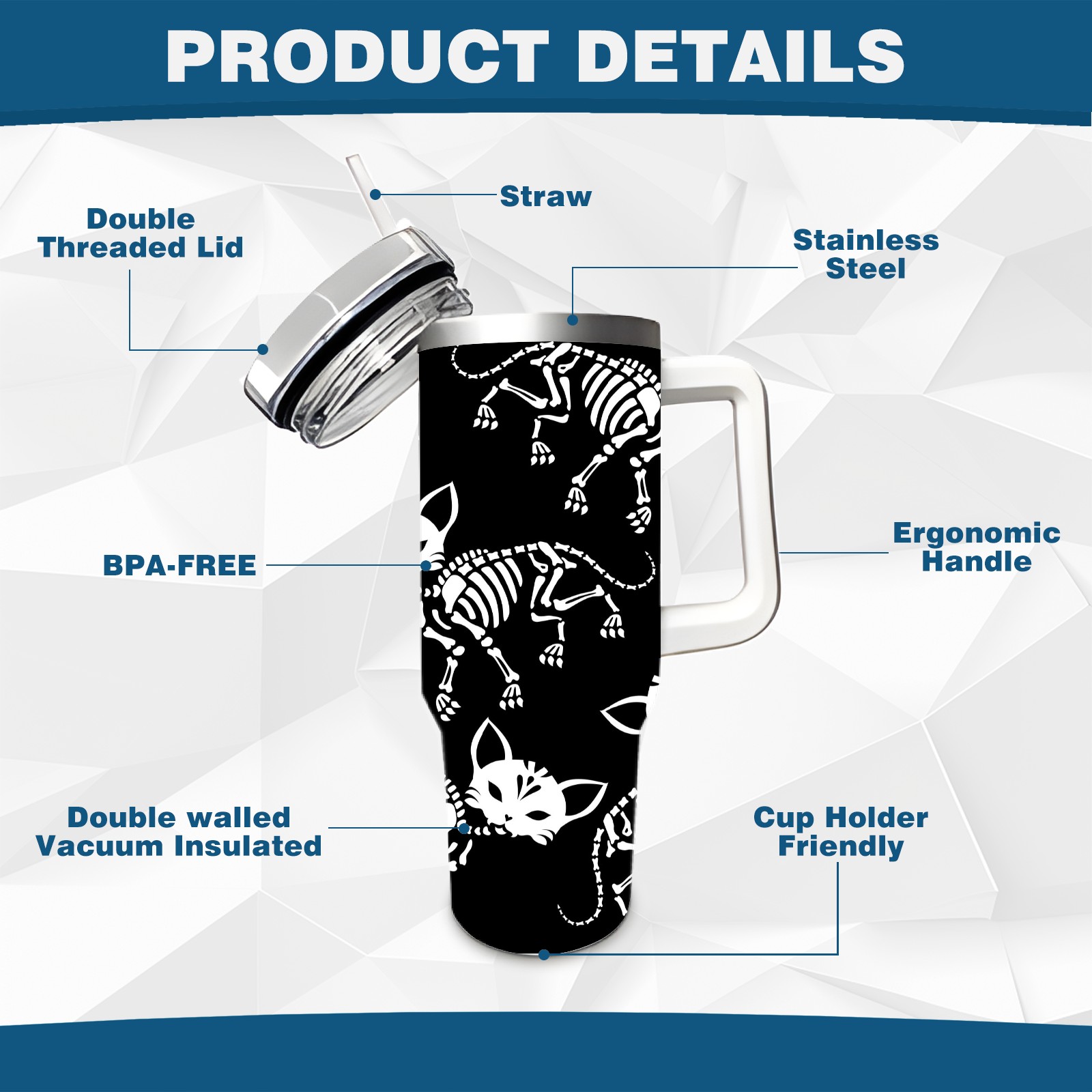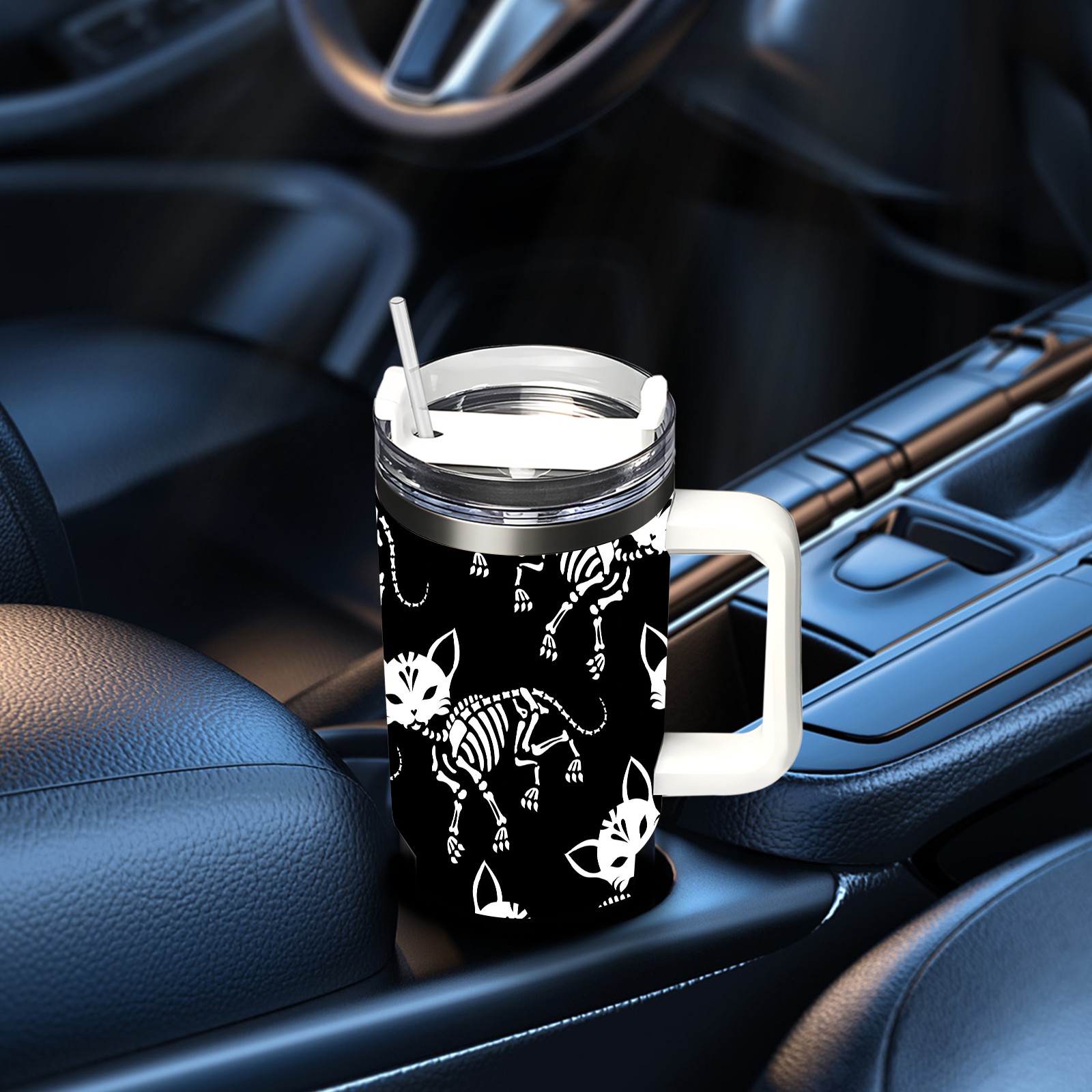 40 унций полностью напечатанный автомобильный стакан Skull Cats