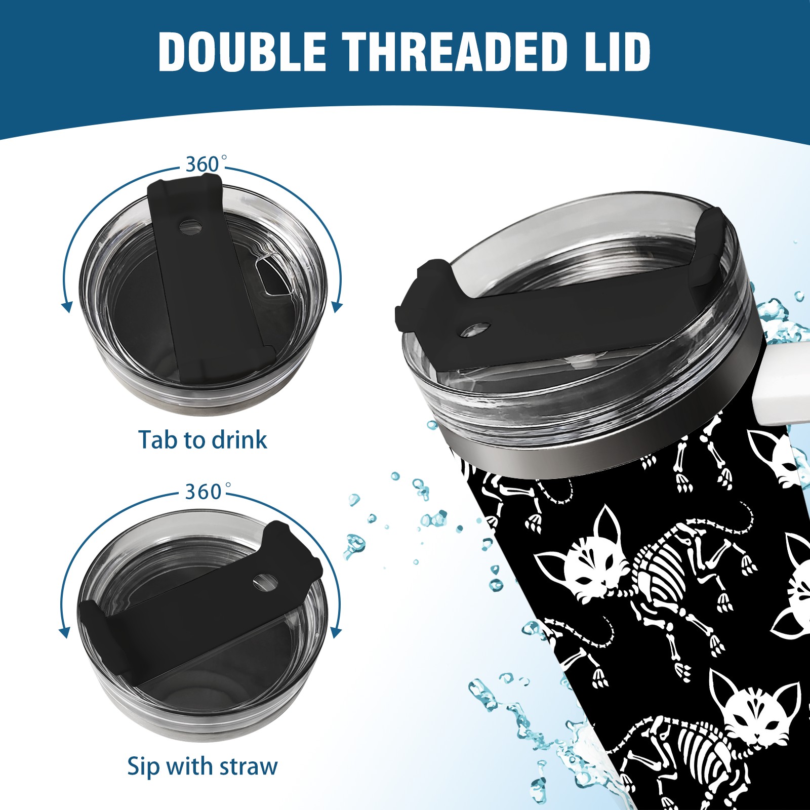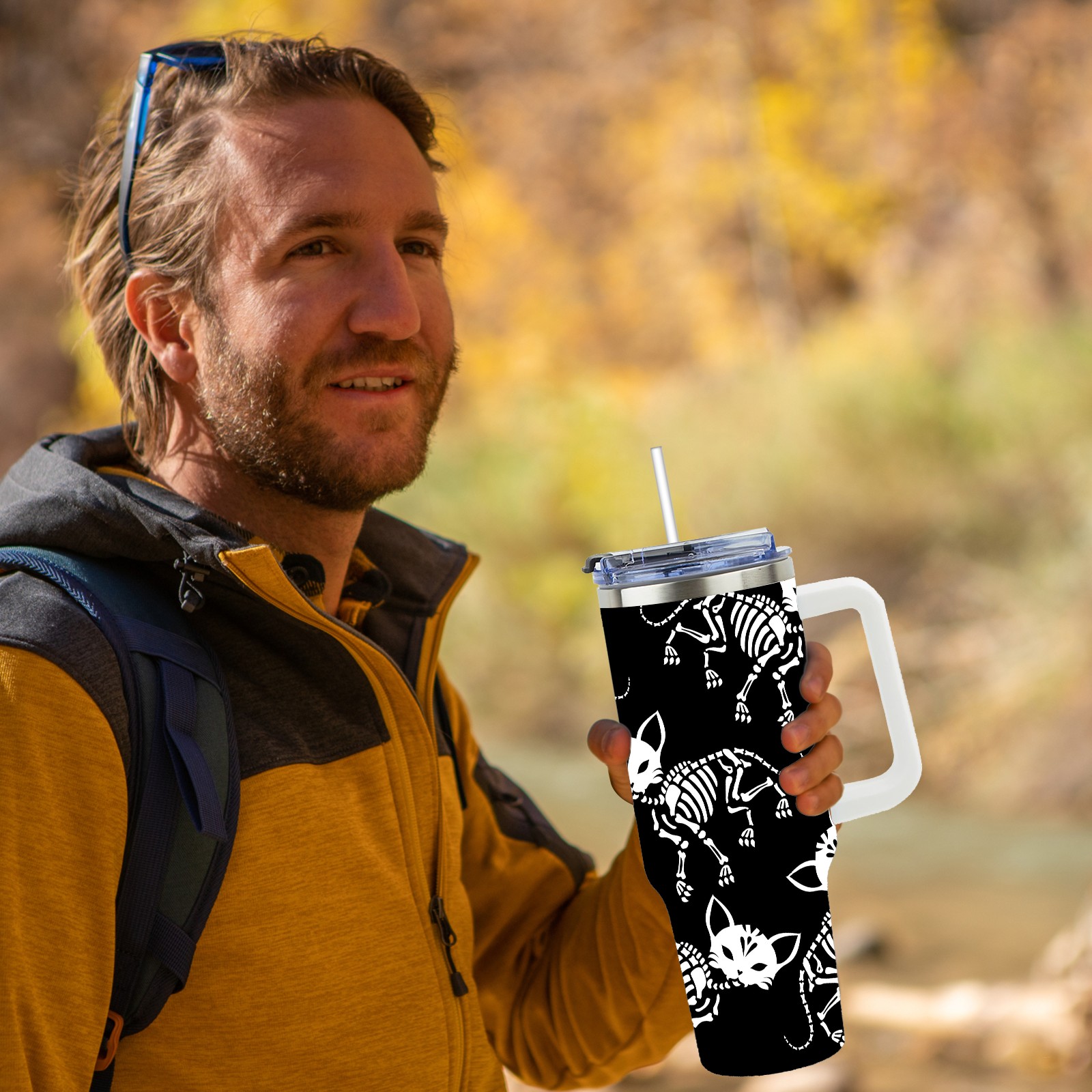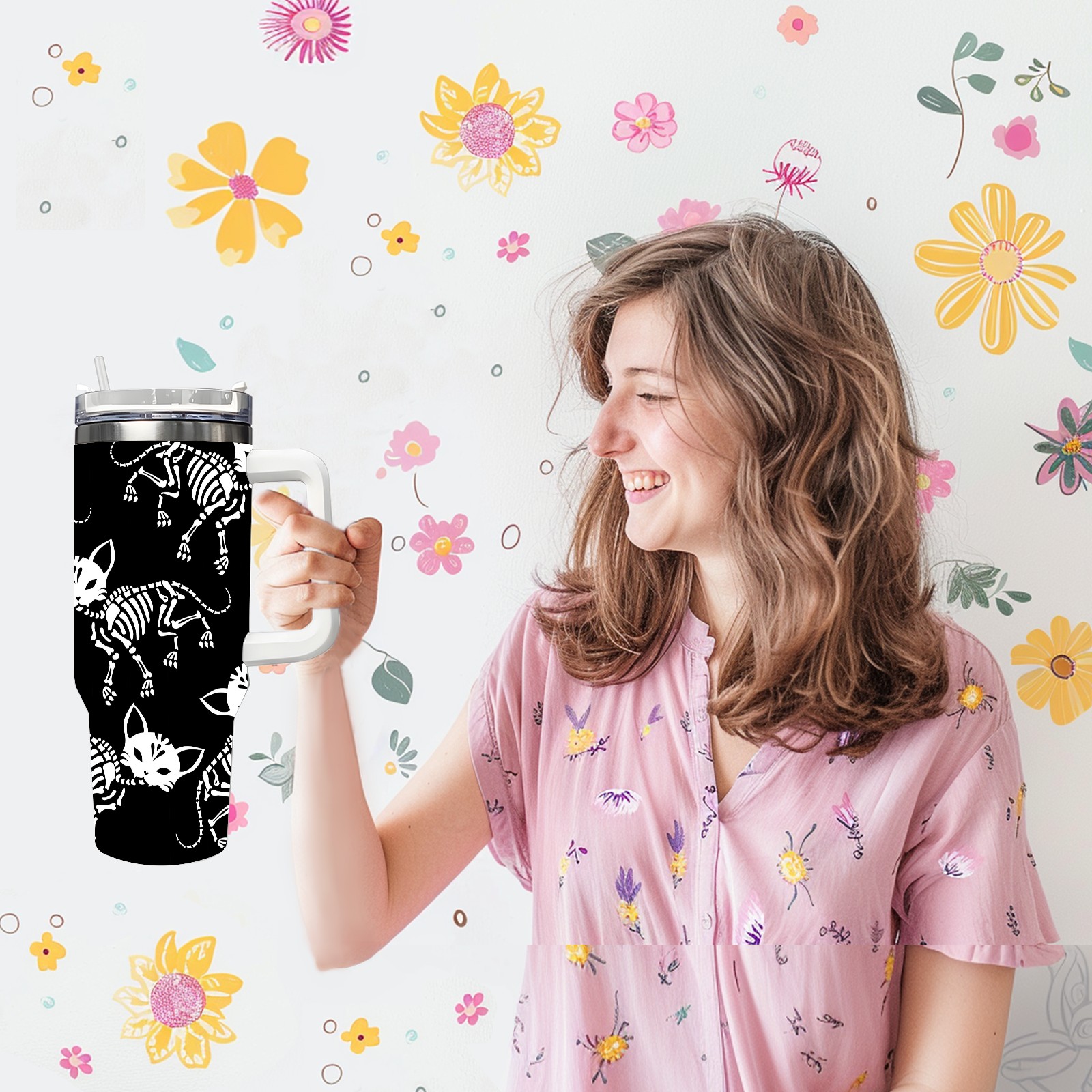 40 унций полностью напечатанный автомобильный стакан Skull Cats