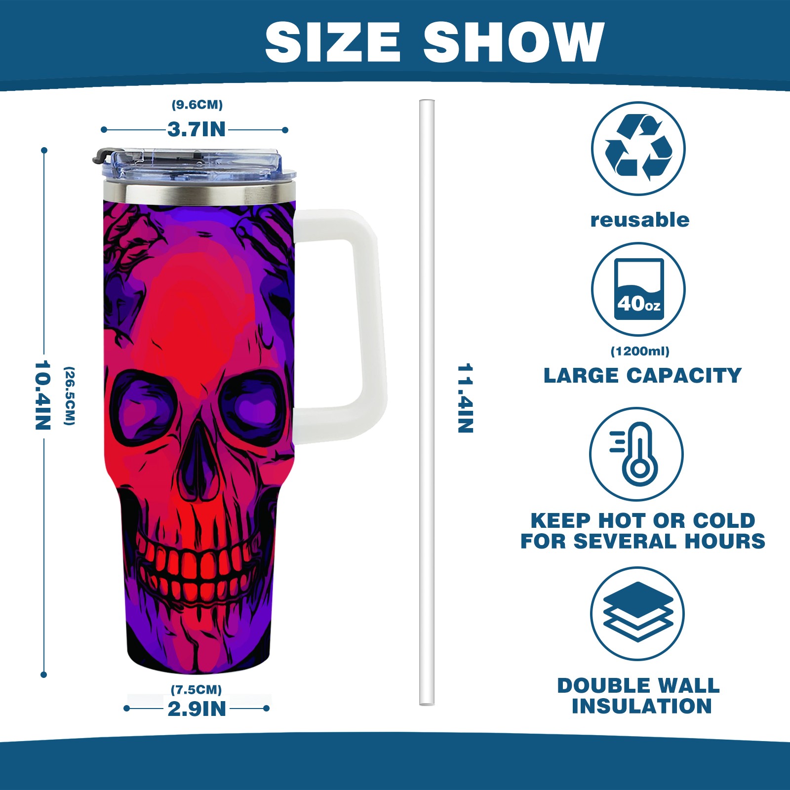 • С большой емкостью 40 унций, он обеспечивает вас гидратацией в течение всего дня, идеально подходит для воды, кофе, сока или других напитков. Эргономичный дизайн идеально вписывается в автомобильные держатели для бутылок, а прочный, герметичный колпачок предотвращает утечки во время передвижения. Путешествие. Антискользящее основание обеспечивает устойчивость, а гладкие поверхности делают уборку легкой — просто мойте вручную или кладите в посудомоечную машину (рекомендуется верхний поддон).