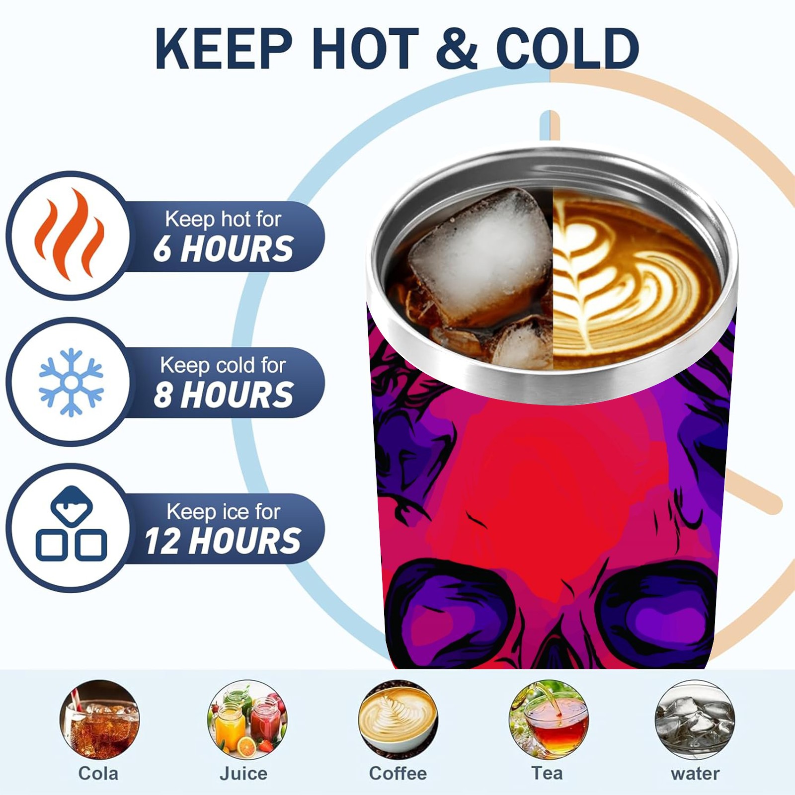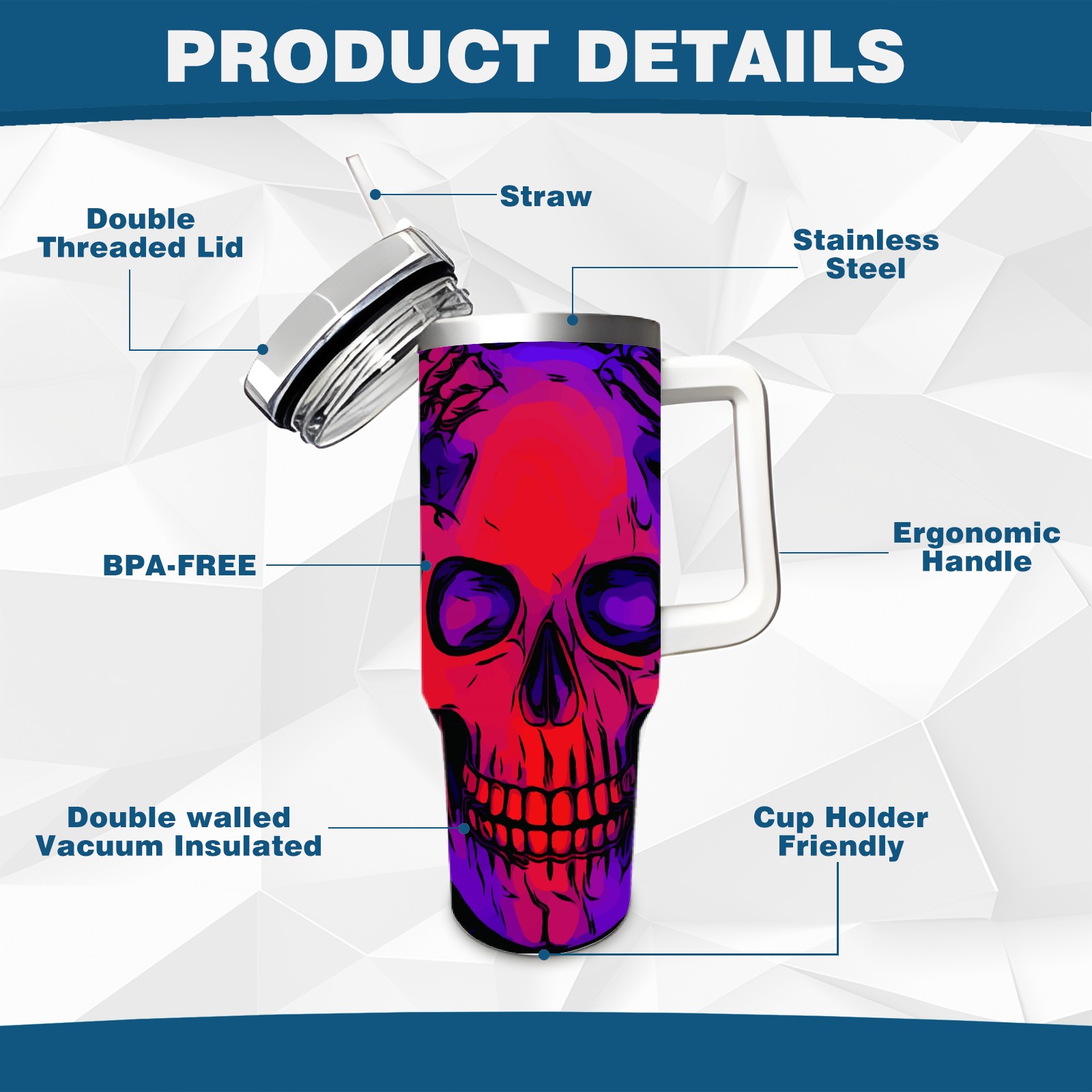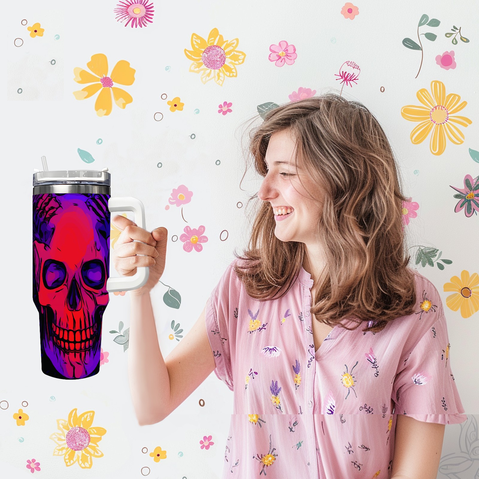 40 унций полностью напечатанный автомобильный стакан Day Of The Dead Skull