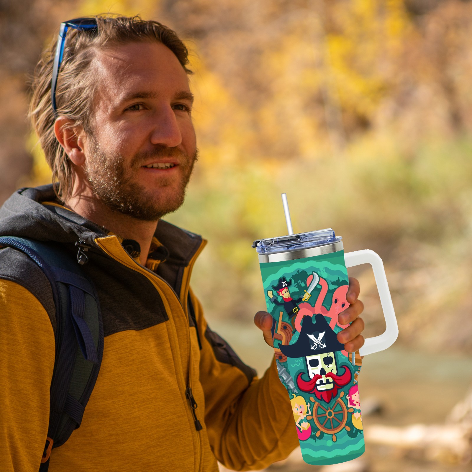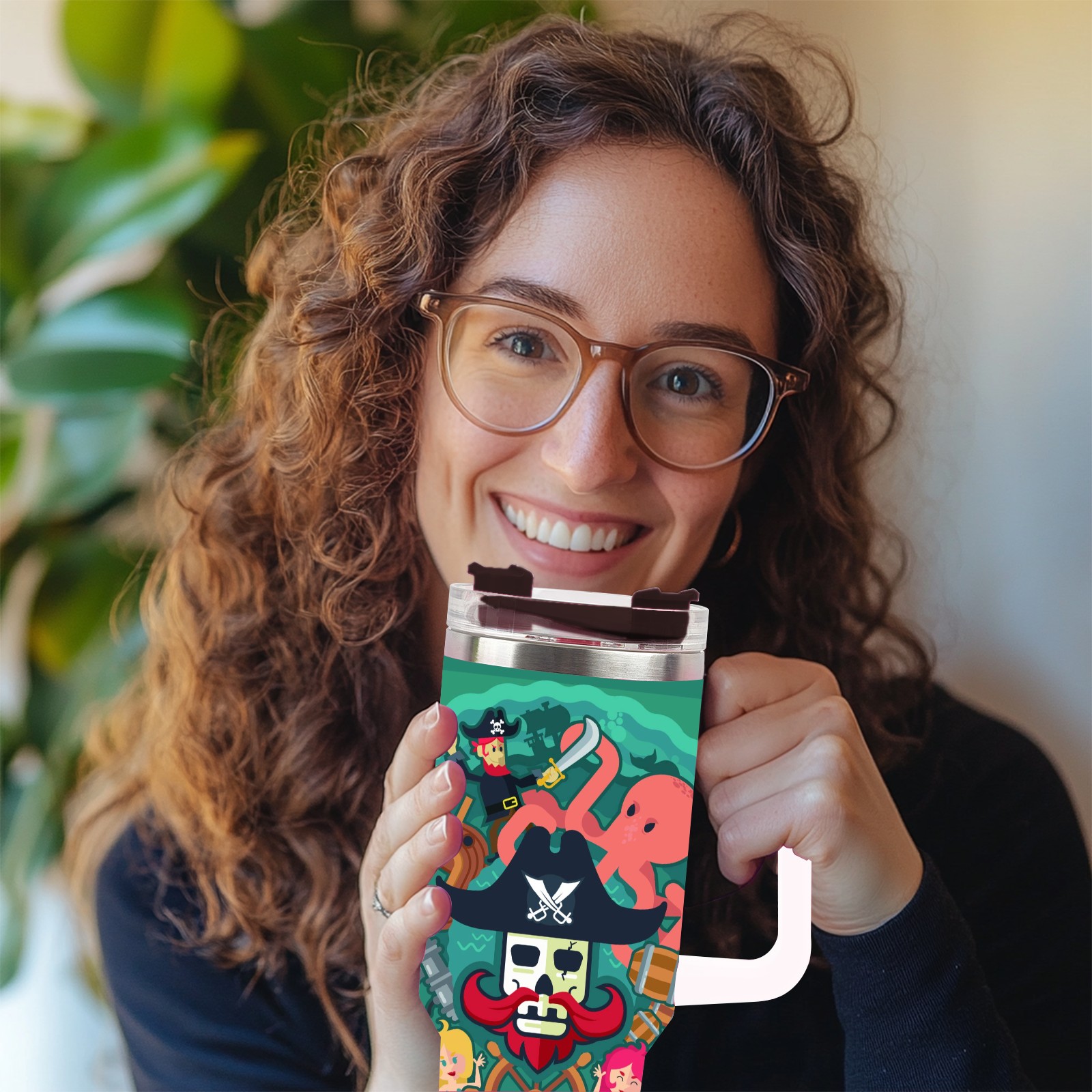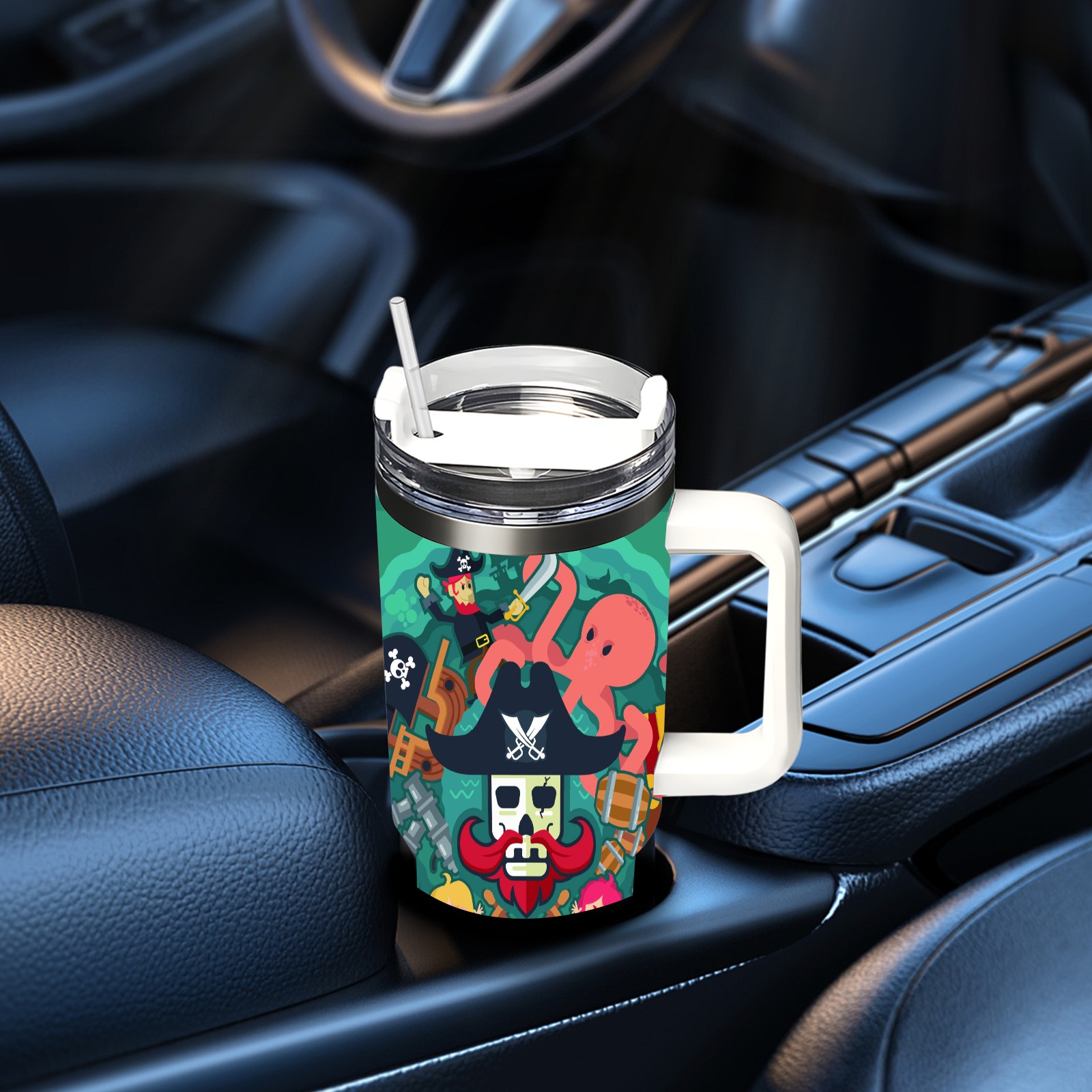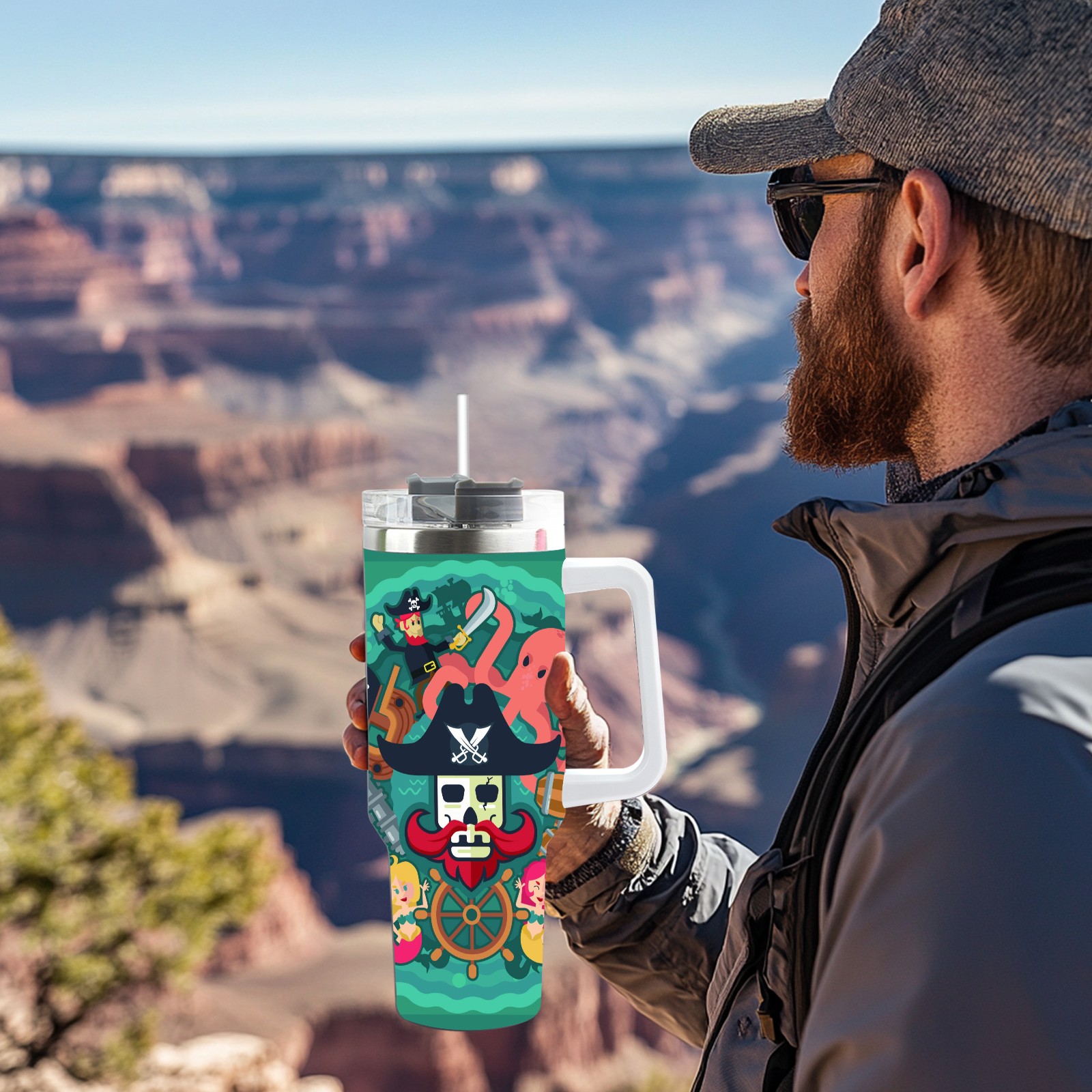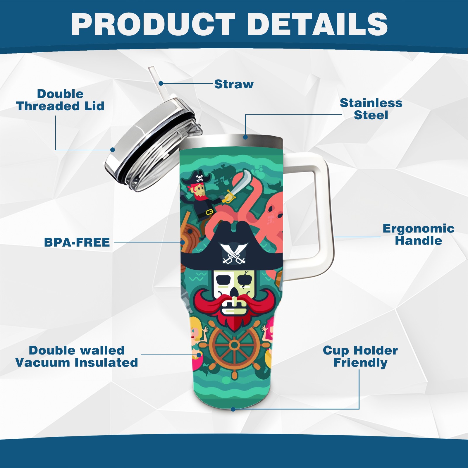 40 унций полностью напечатанный автомобильный стакан Pirate Skull Navigation Treasure