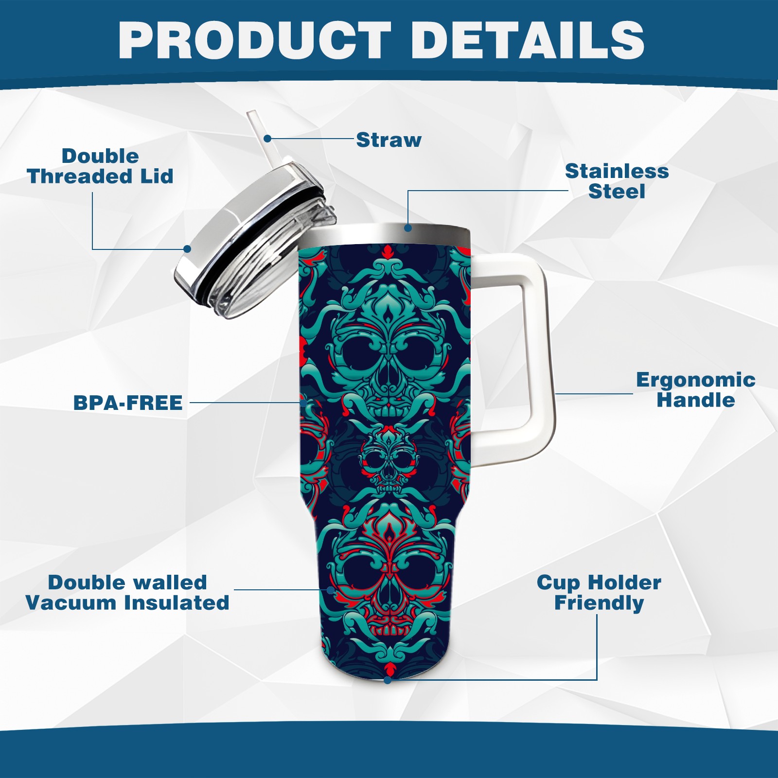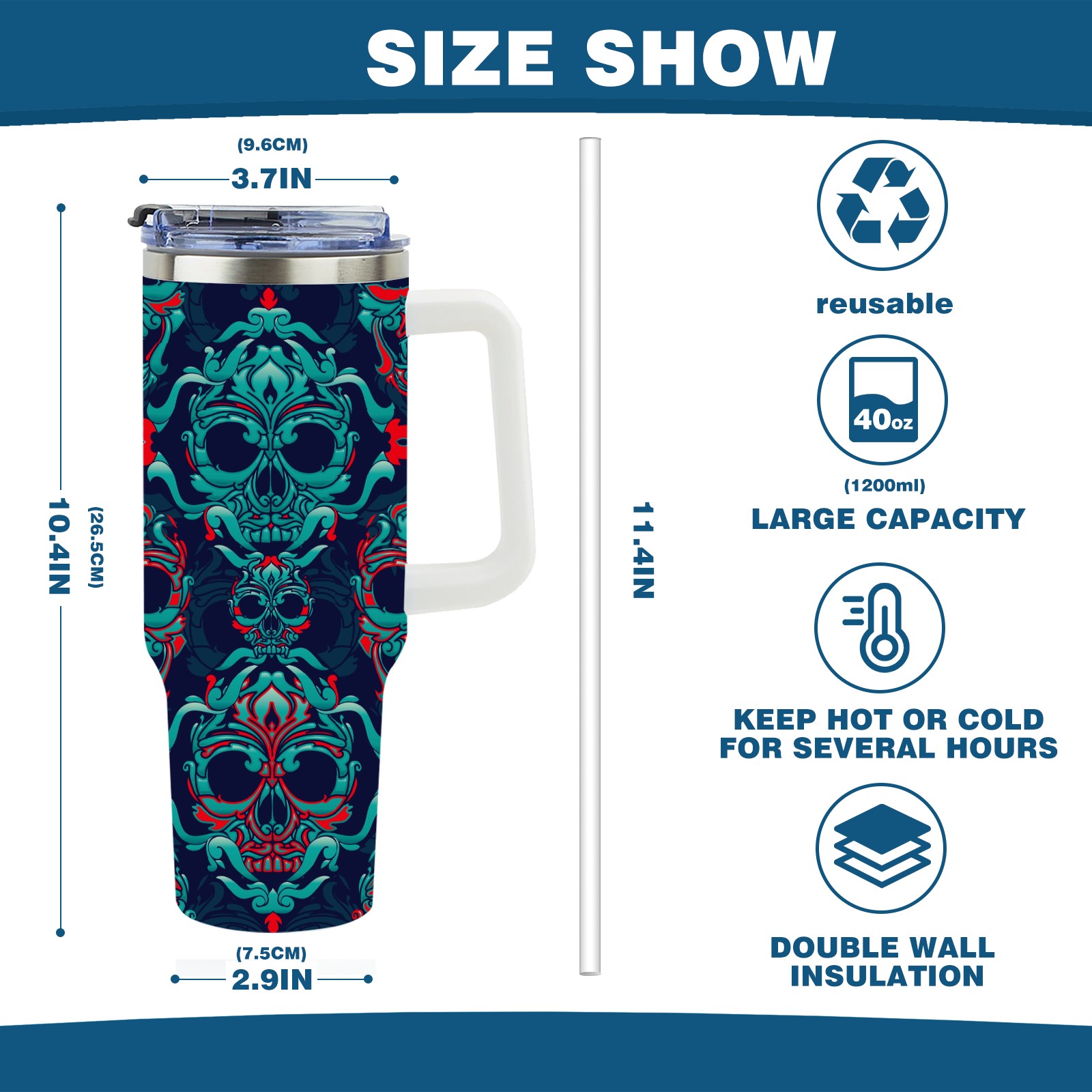 40 унций полностью напечатанный автомобильный стакан Mexico Sugar Skull Dark Green
