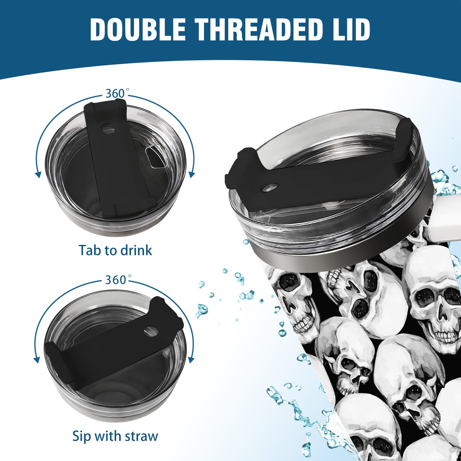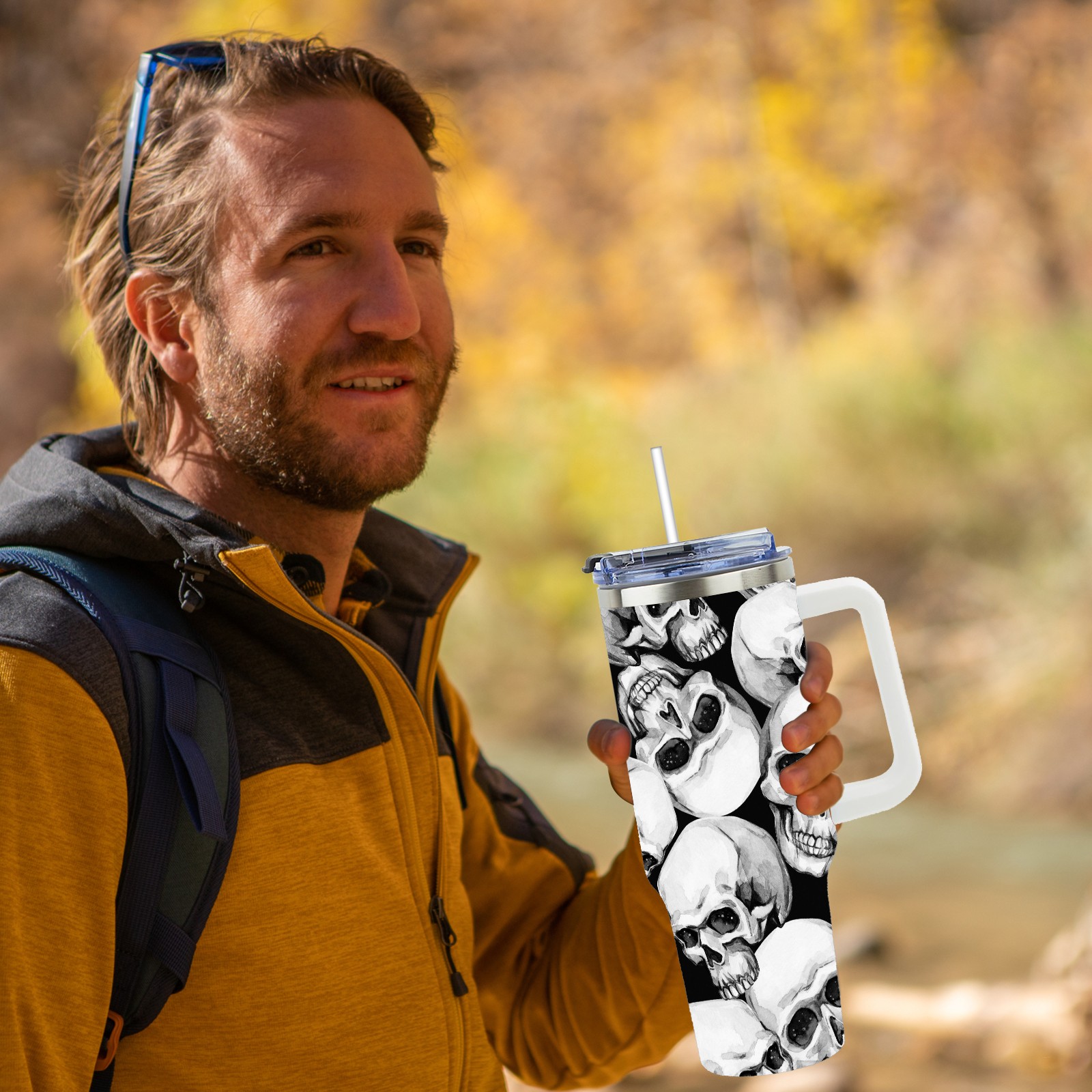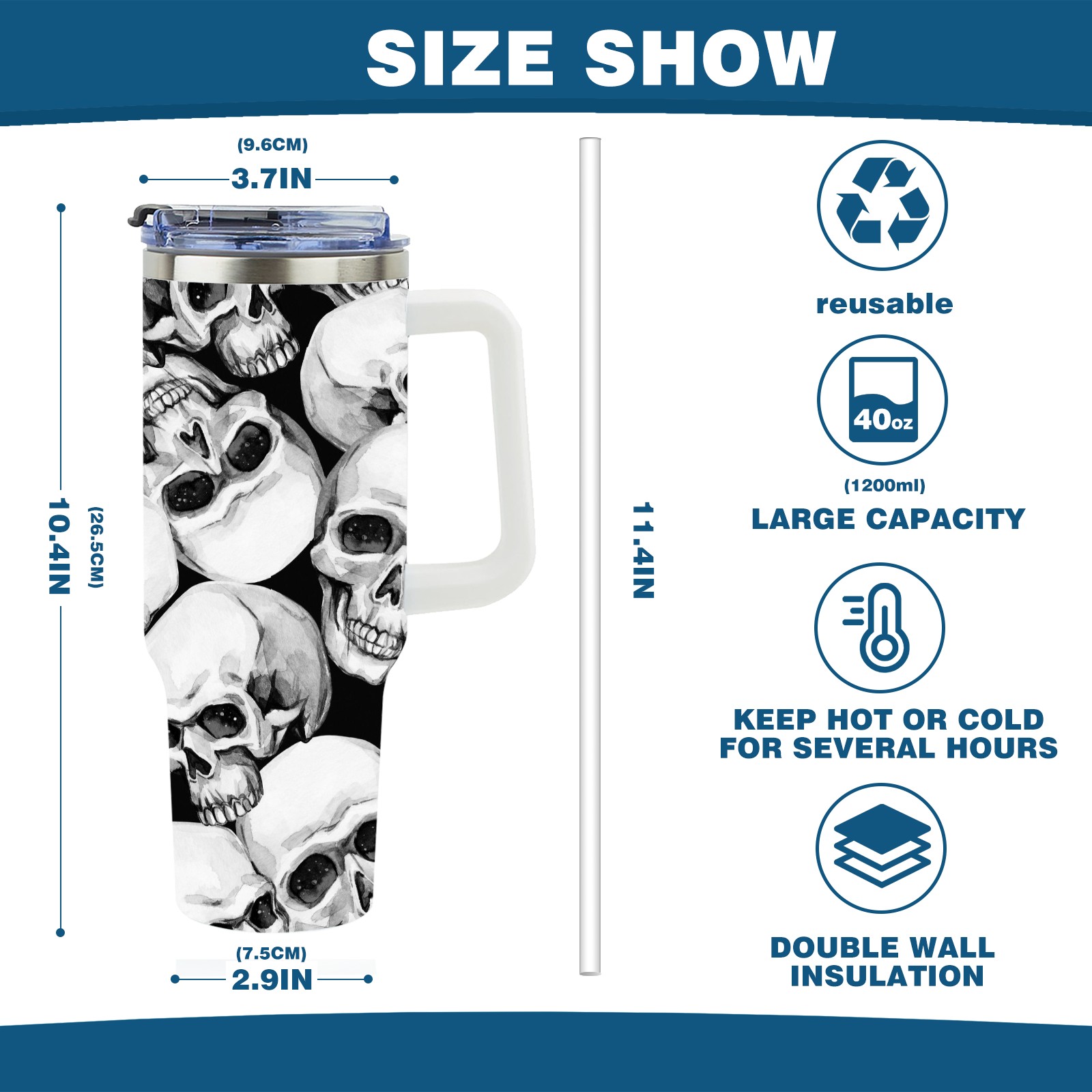 40 унций полностью напечатанный автомобильный стакан Vintage Skull White