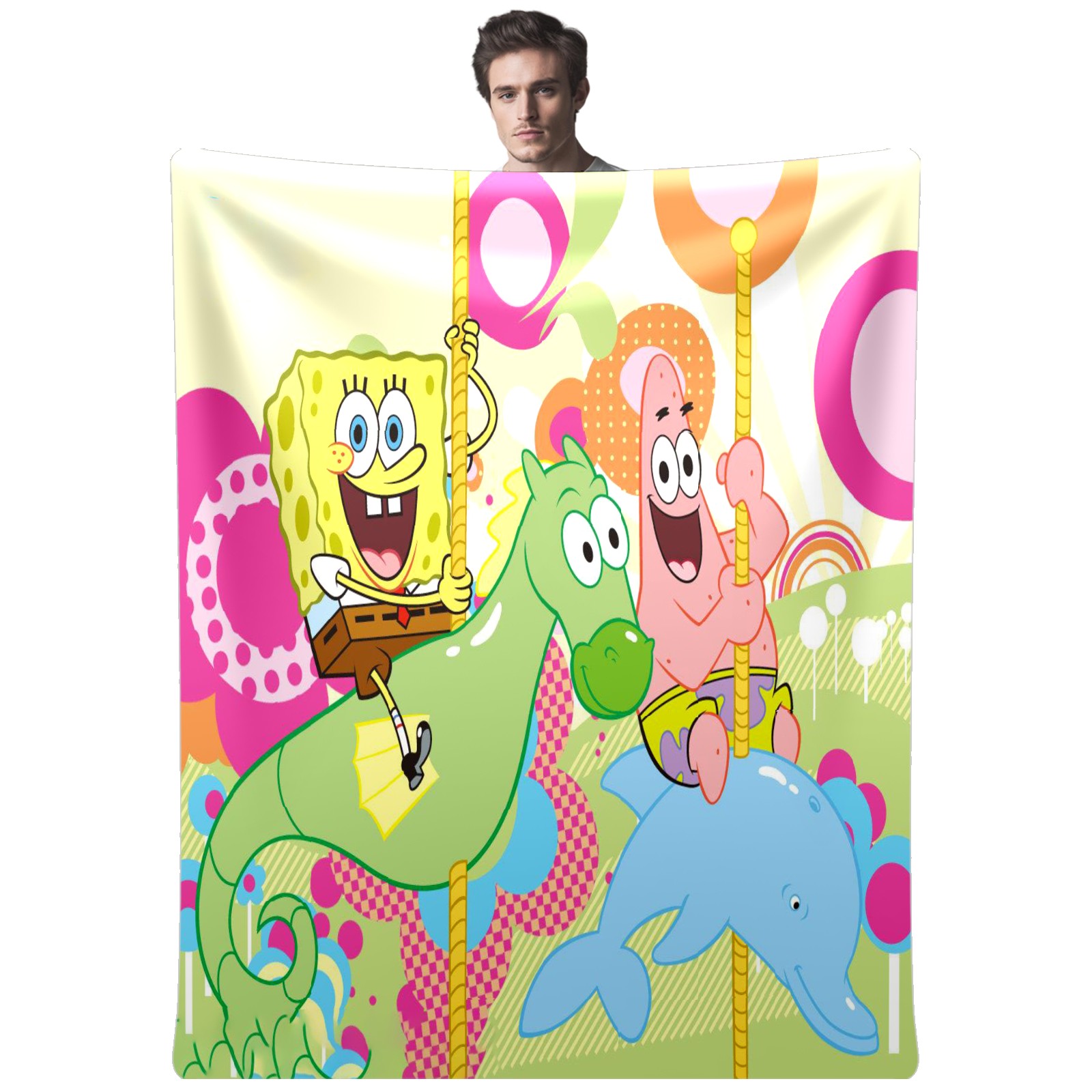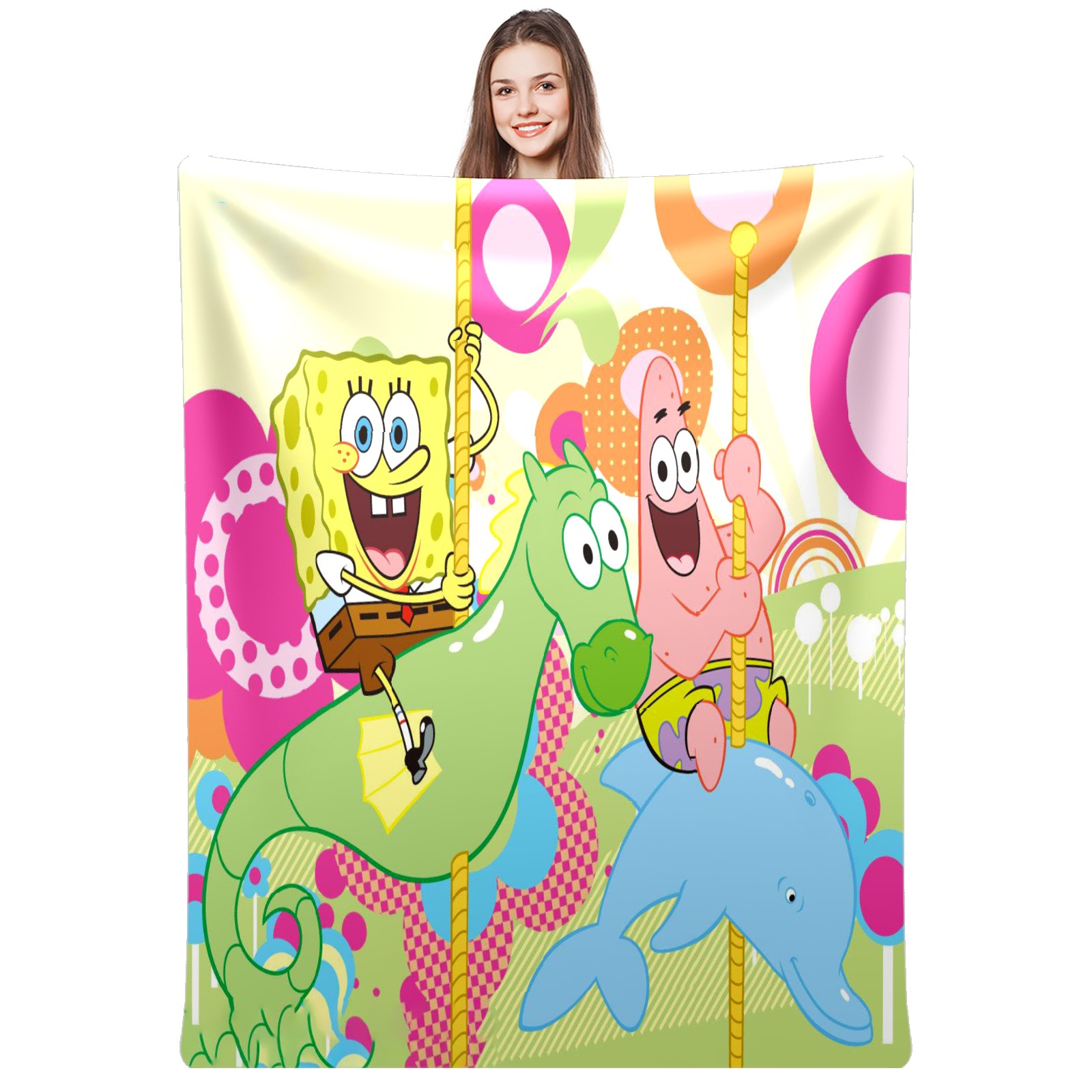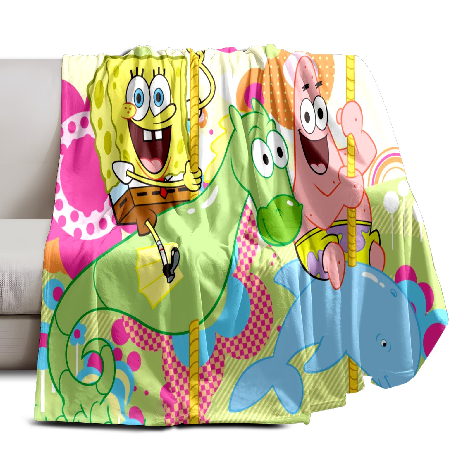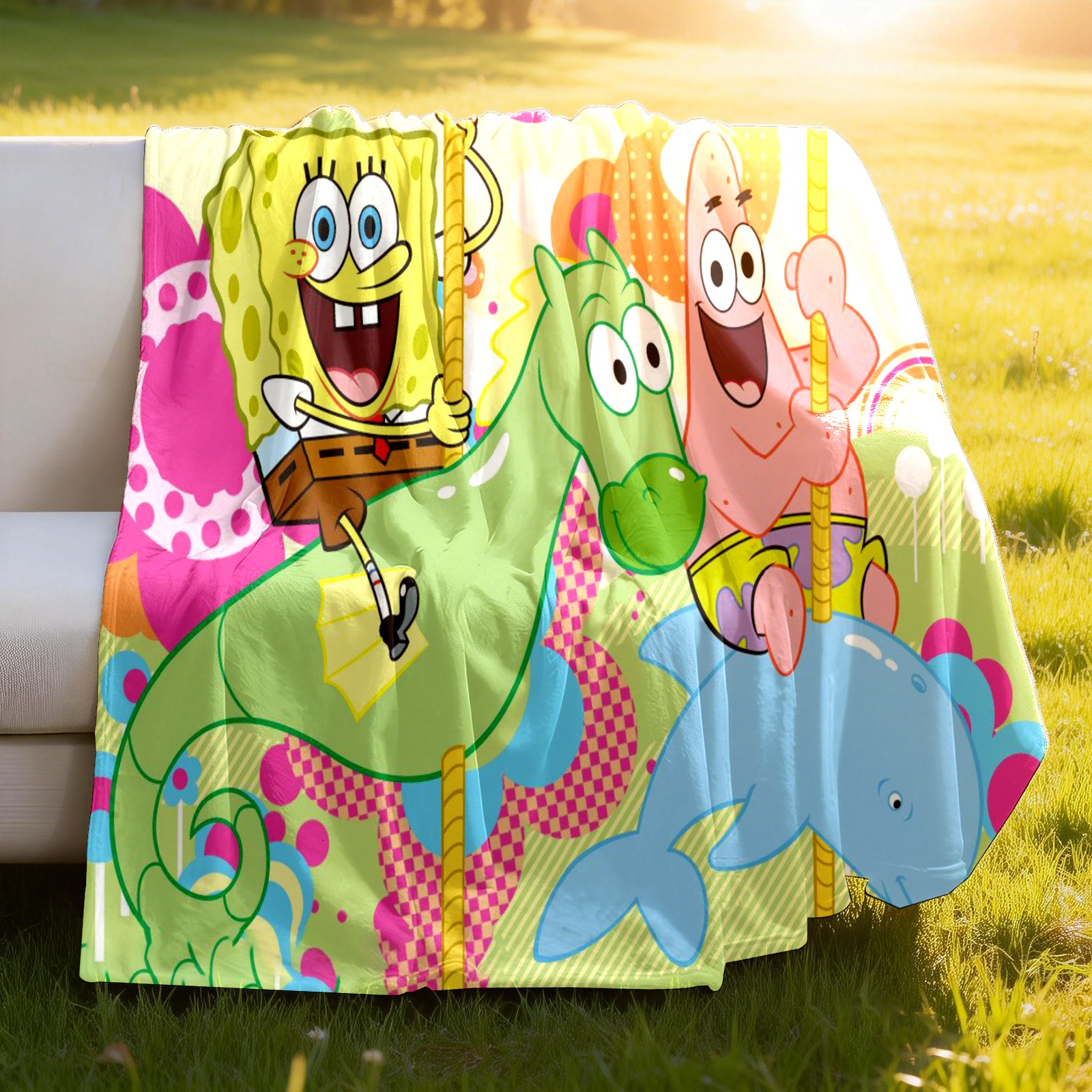 Премиальная фланелевая одеяло Spongebob Patrick Carousel Dolphin Hippo Colorful