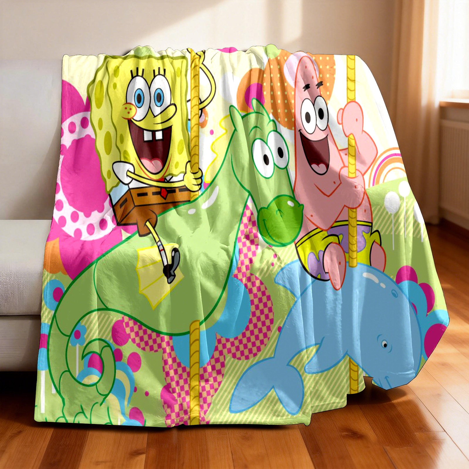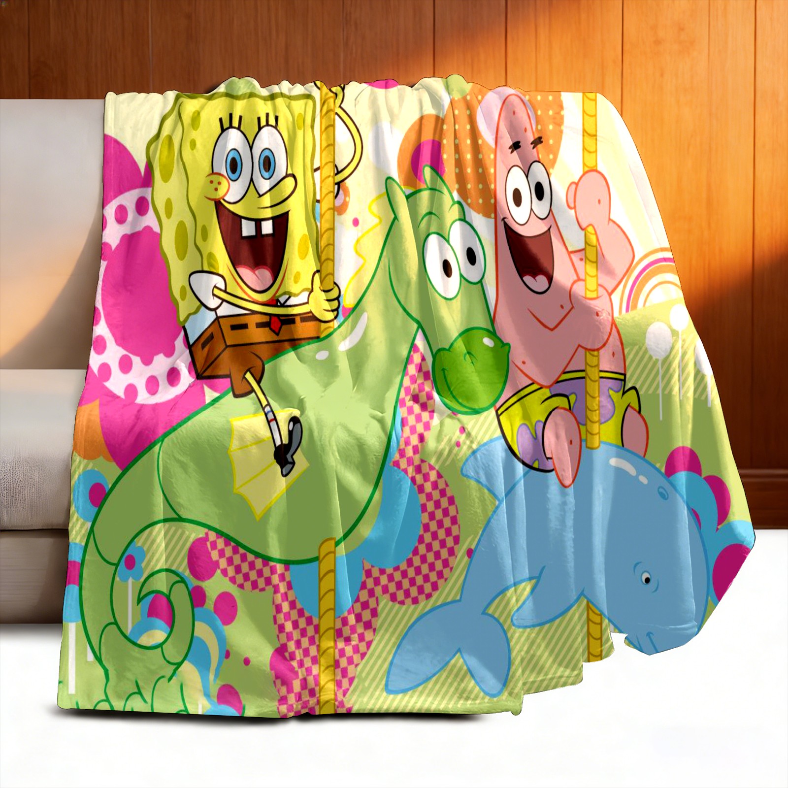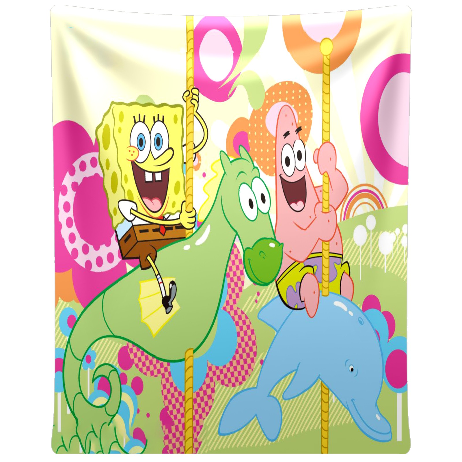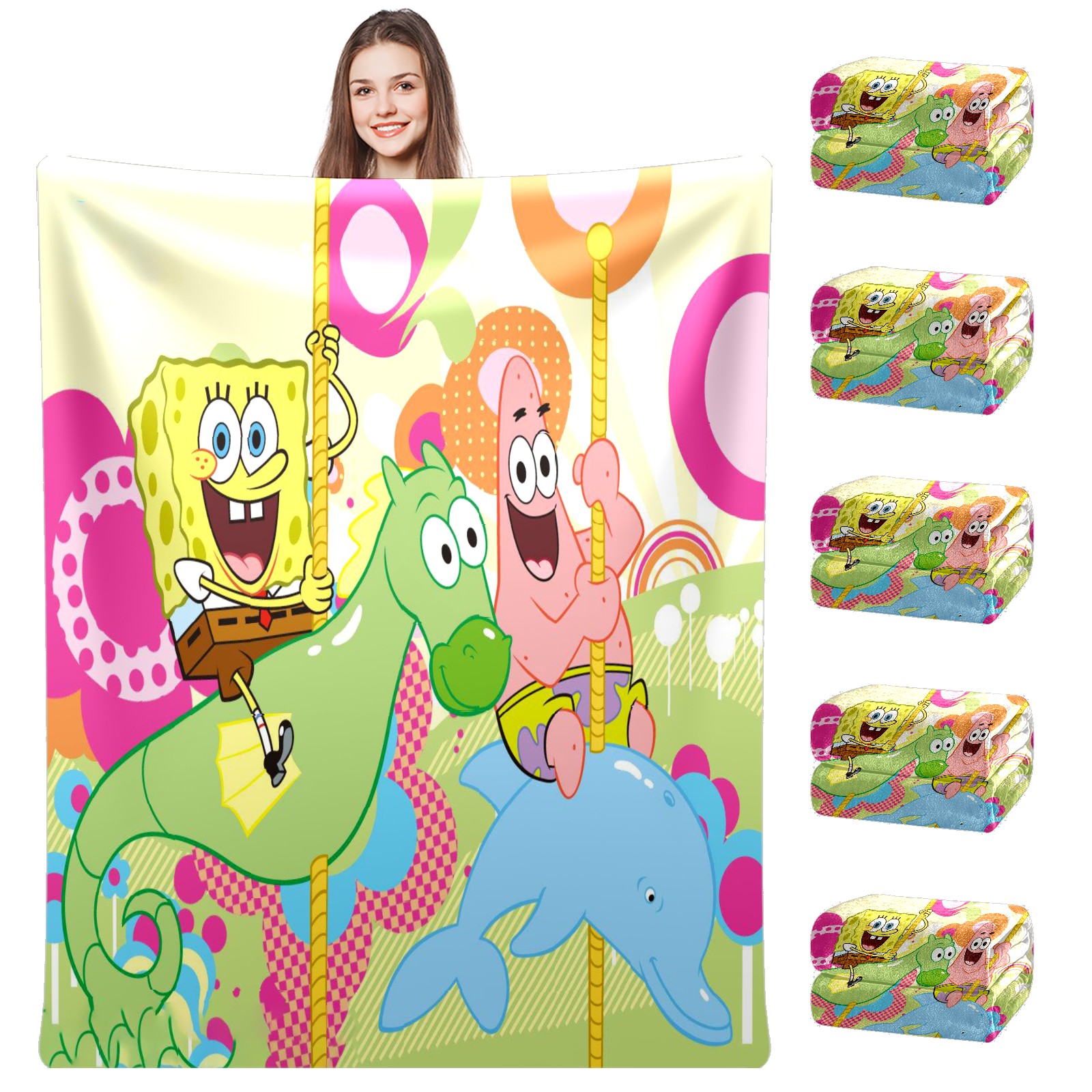 Премиальная фланелевая одеяло Spongebob Patrick Carousel Dolphin Hippo Colorful