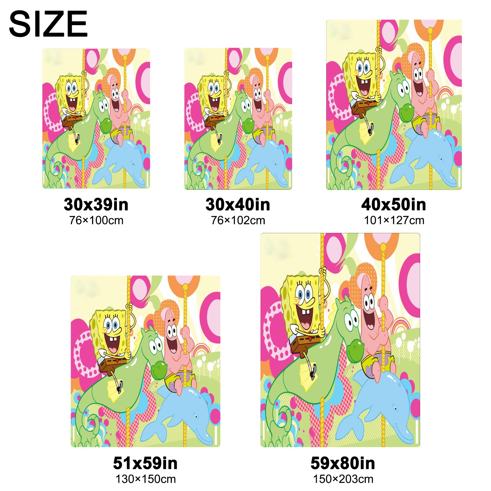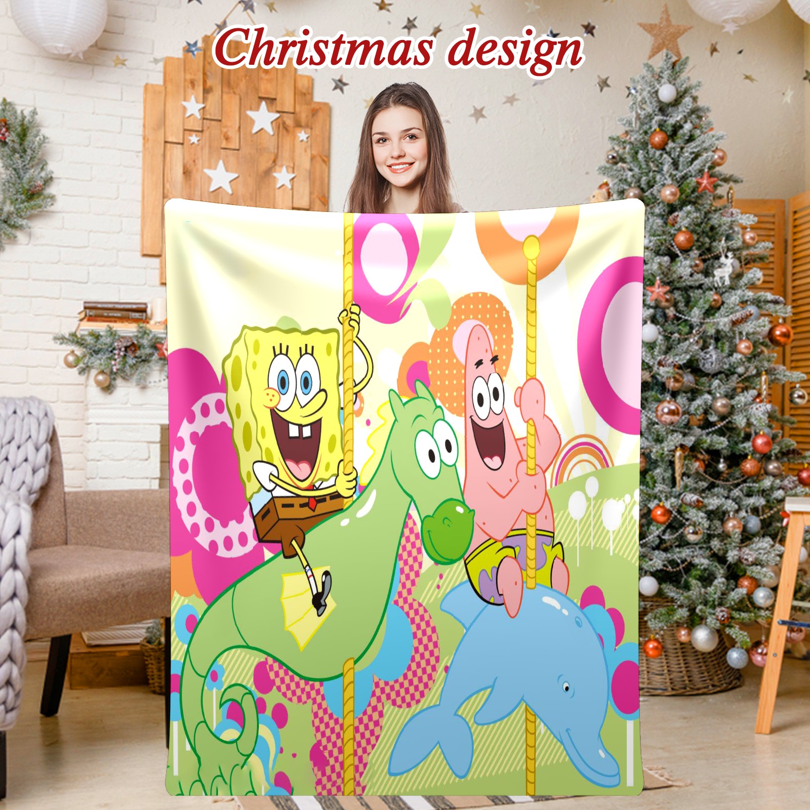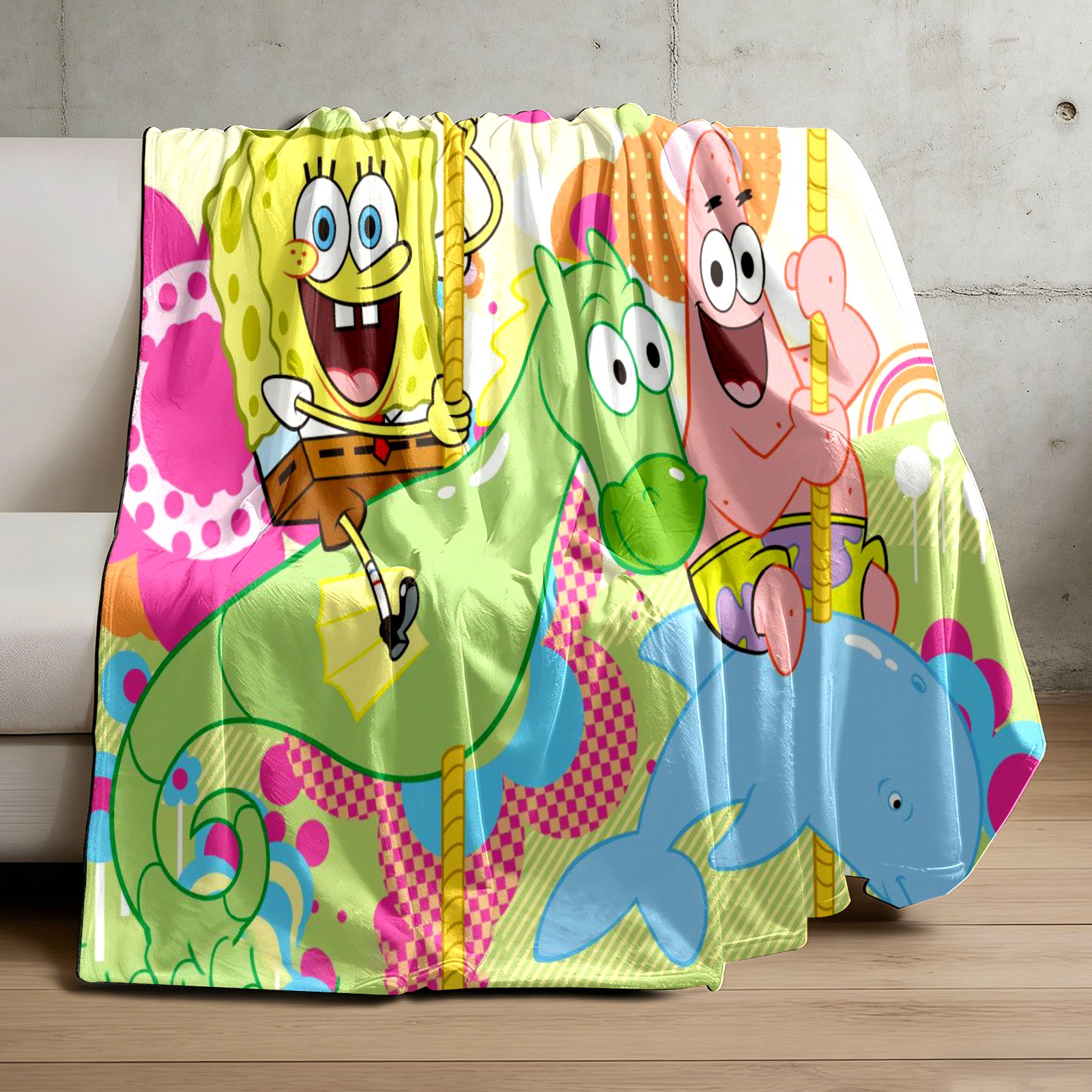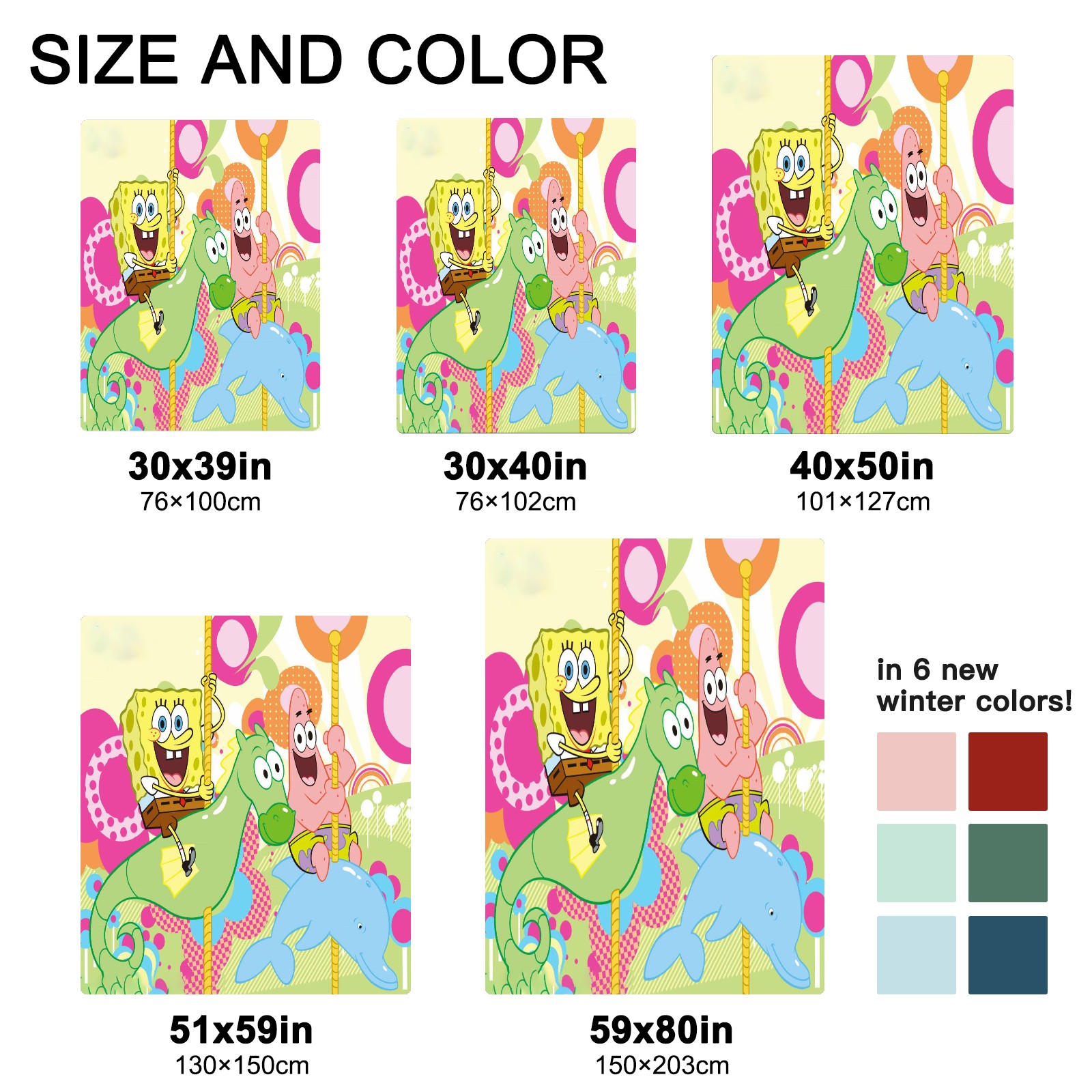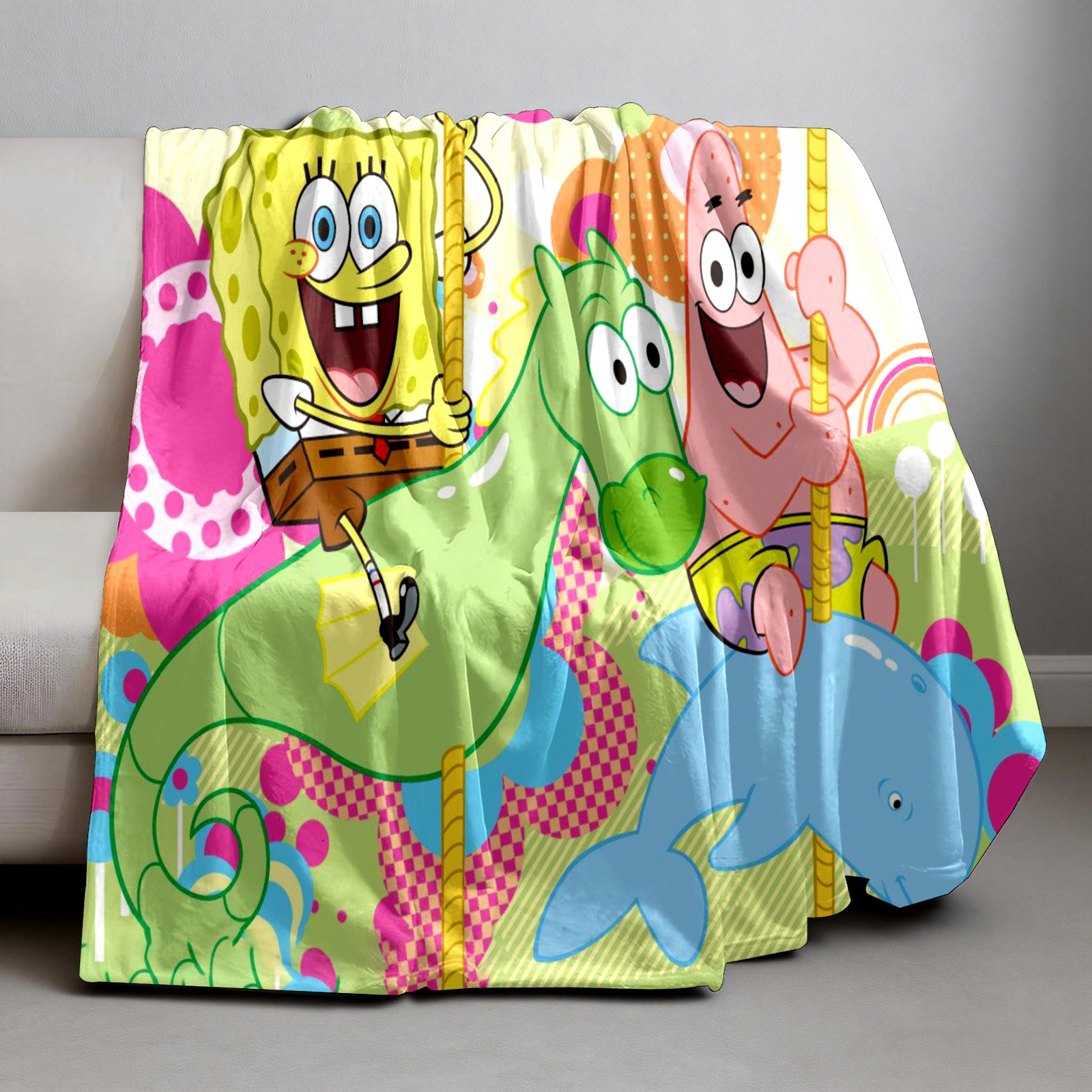 Премиальная фланелевая одеяло Spongebob Patrick Carousel Dolphin Hippo Colorful