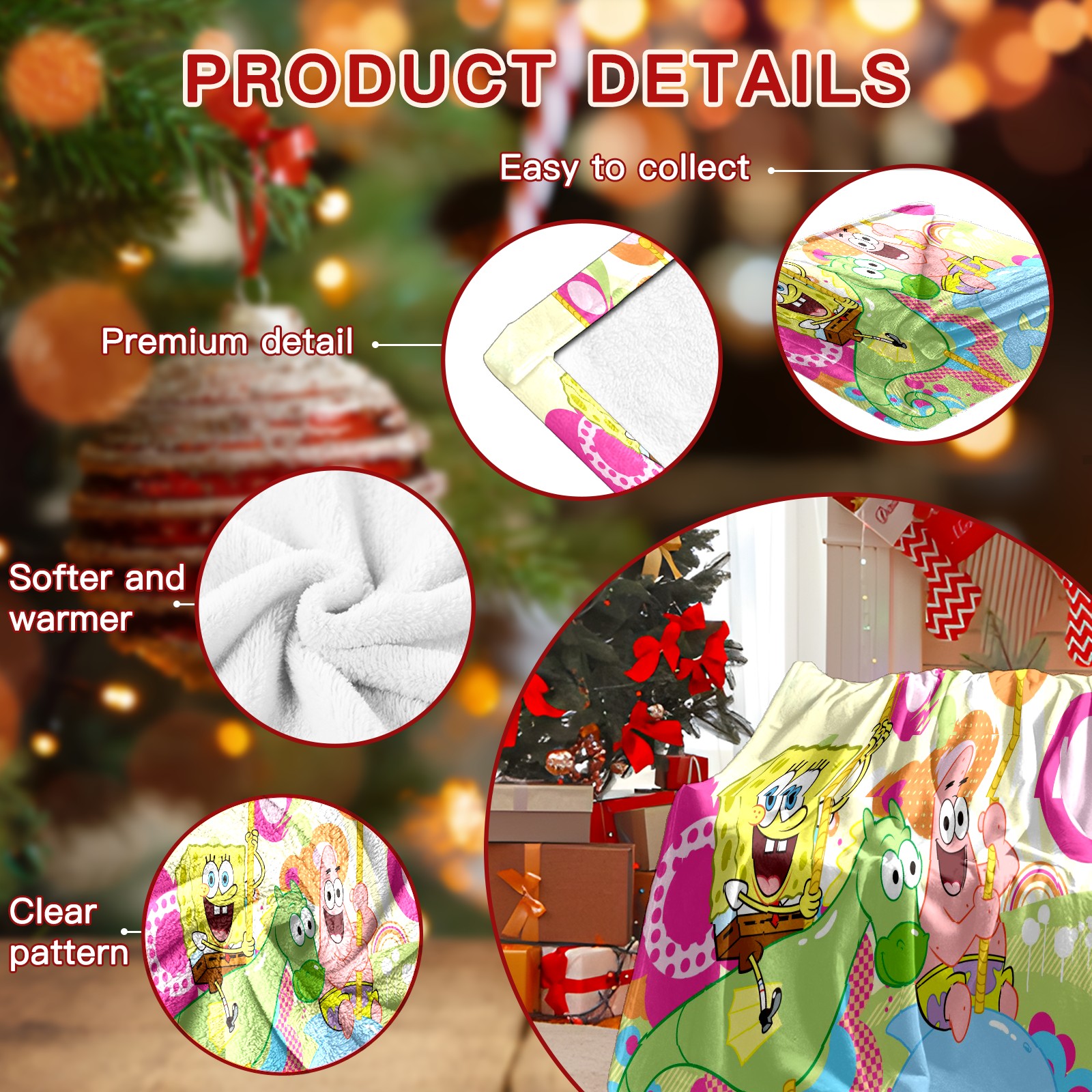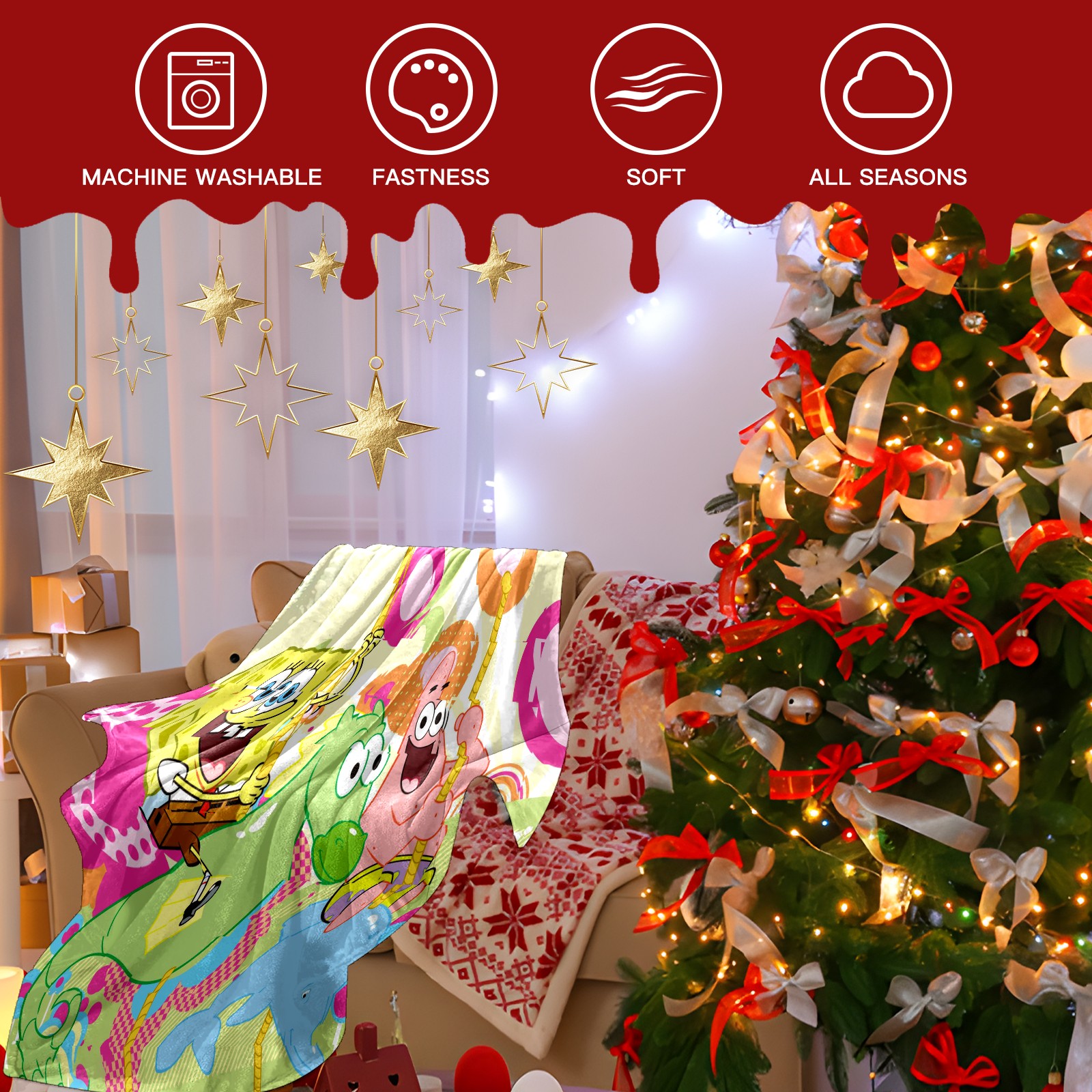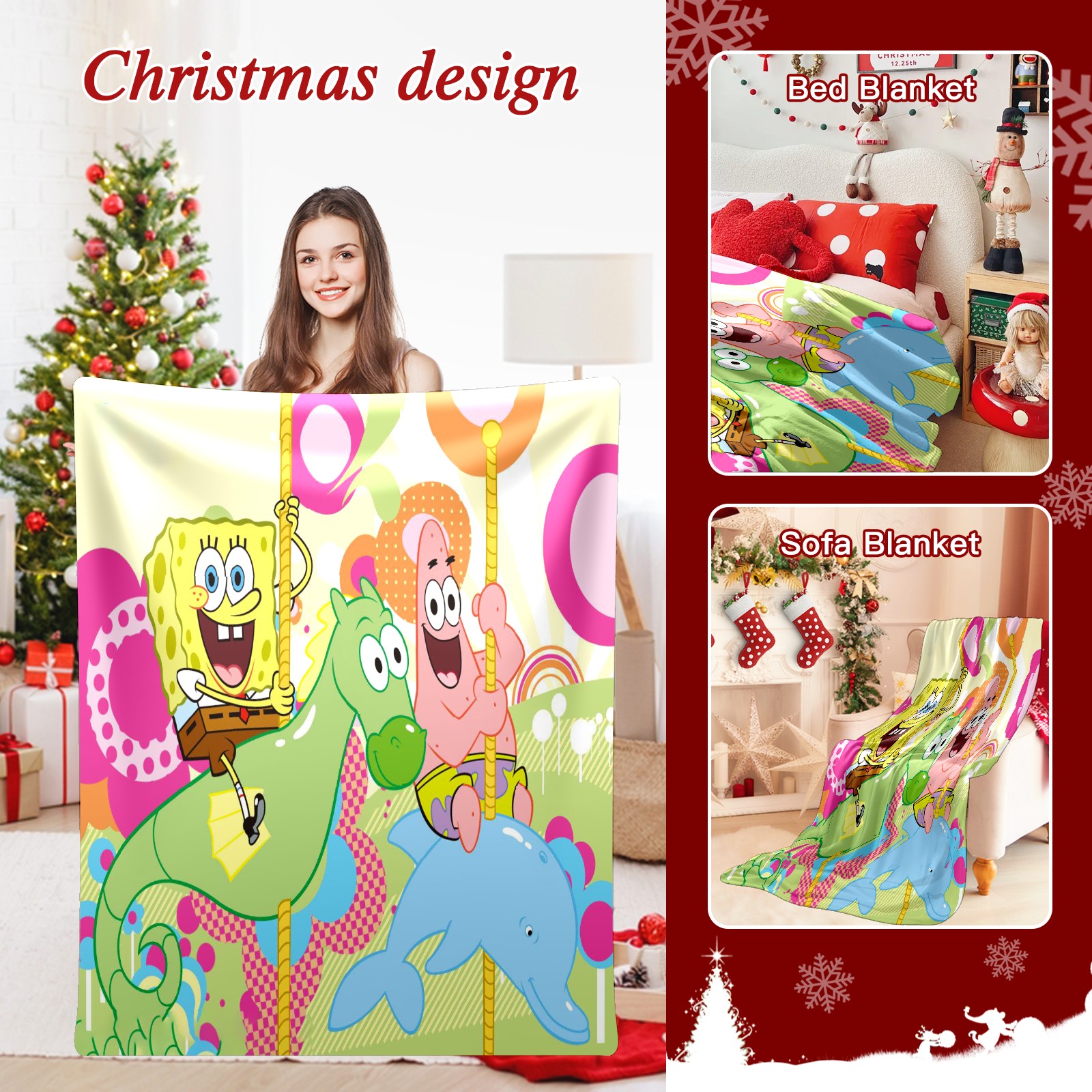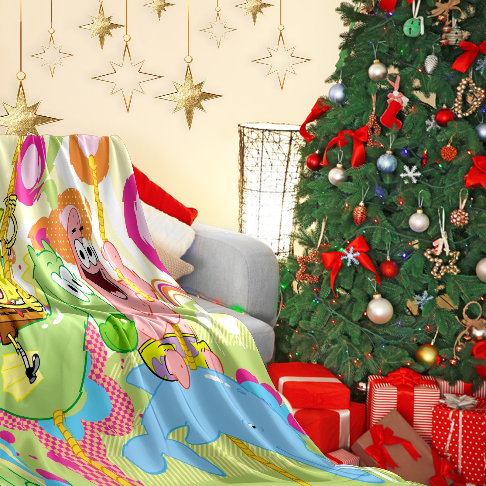 Премиальная фланелевая одеяло Spongebob Patrick Carousel Dolphin Hippo Colorful