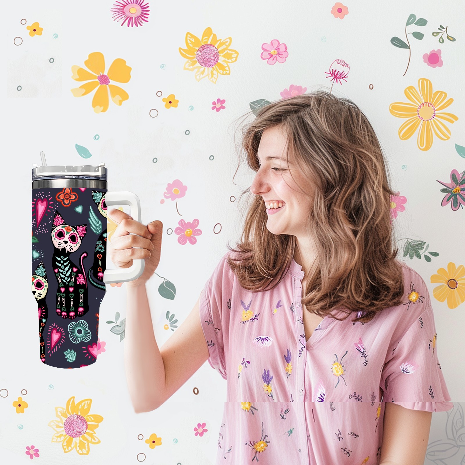 40 унций полностью напечатанный автомобильный стакан Gothic Punk Skull Cat
