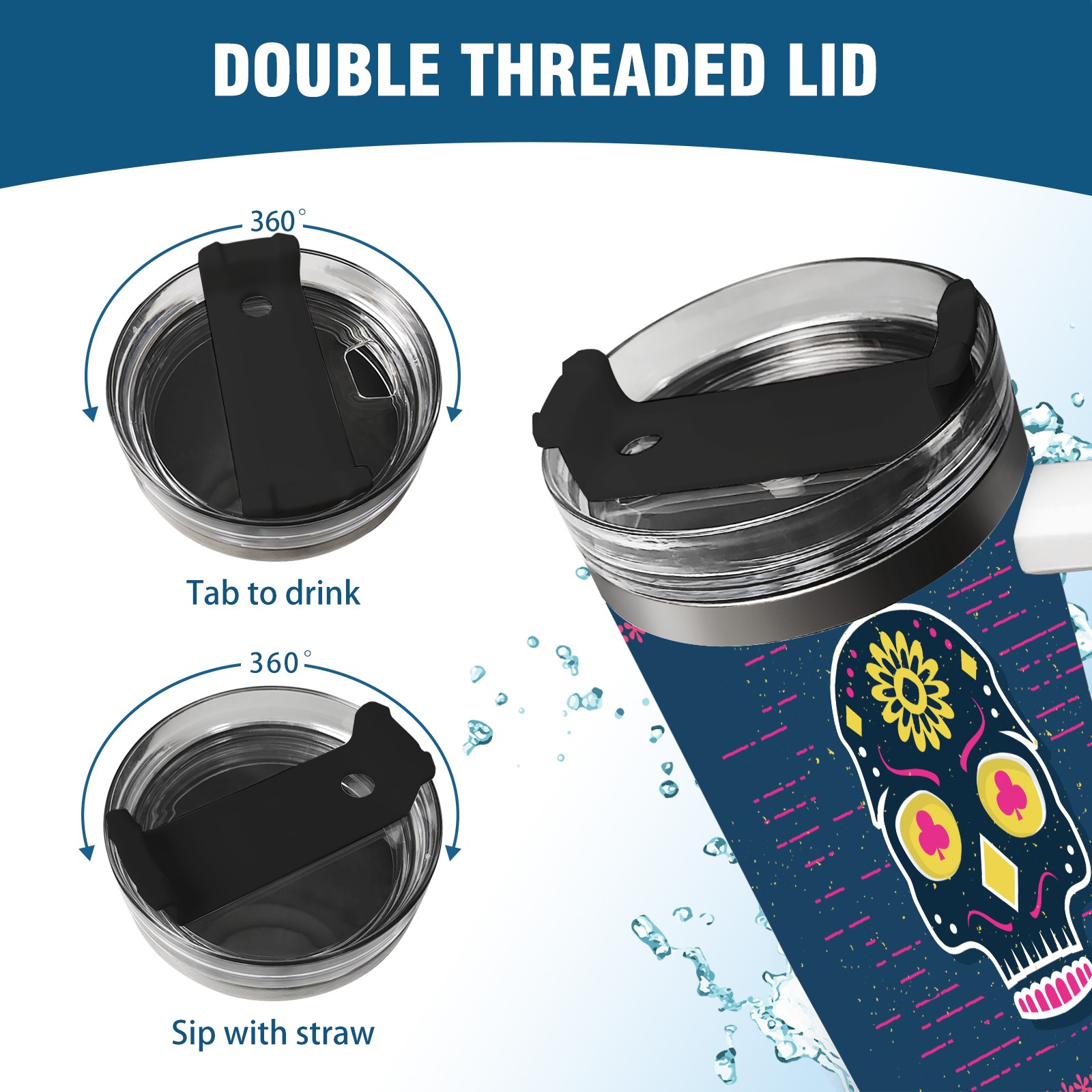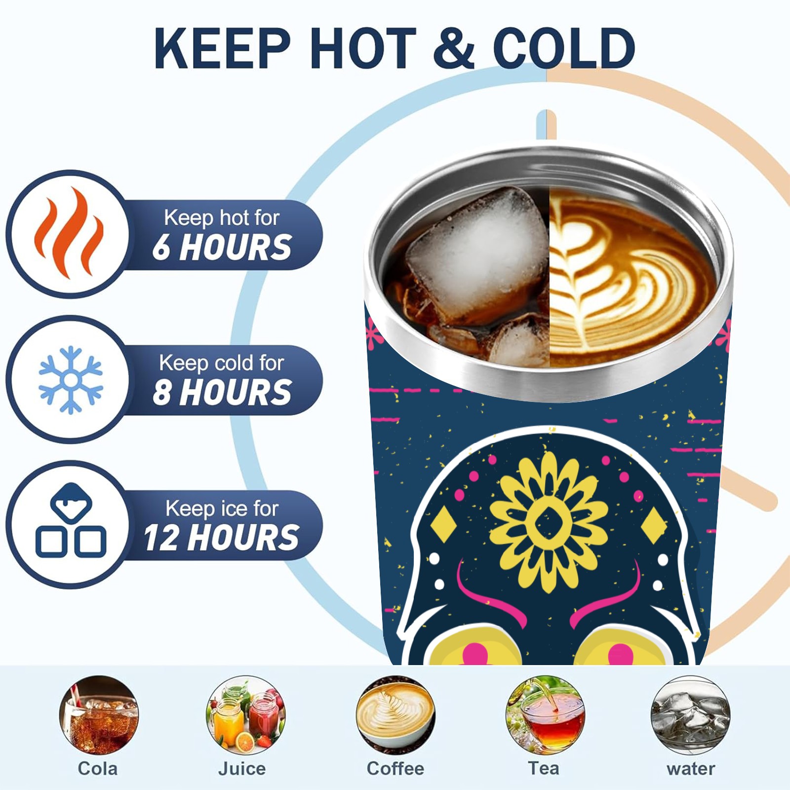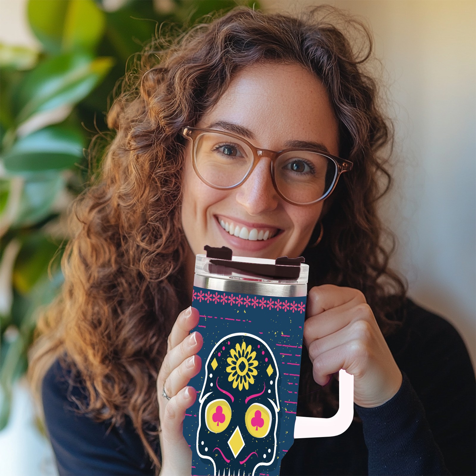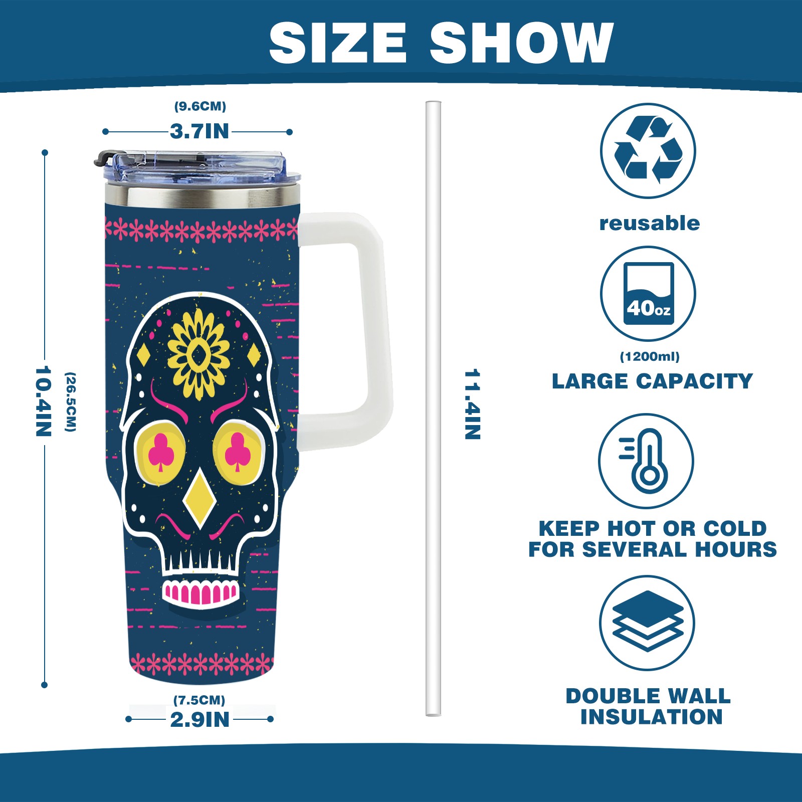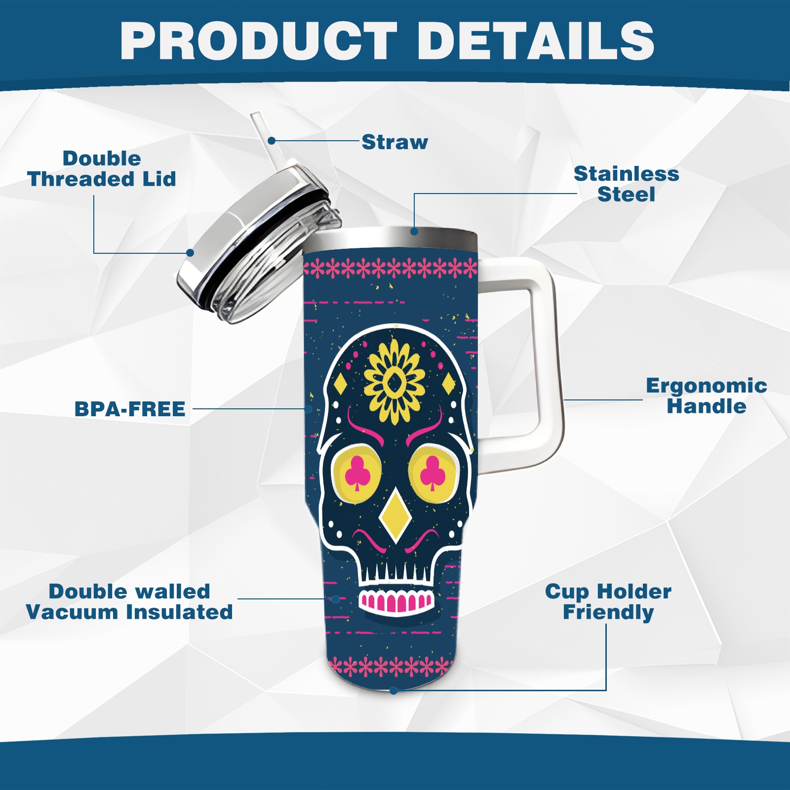 40 унций полностью напечатанный автомобильный стакан Sugar Skull
