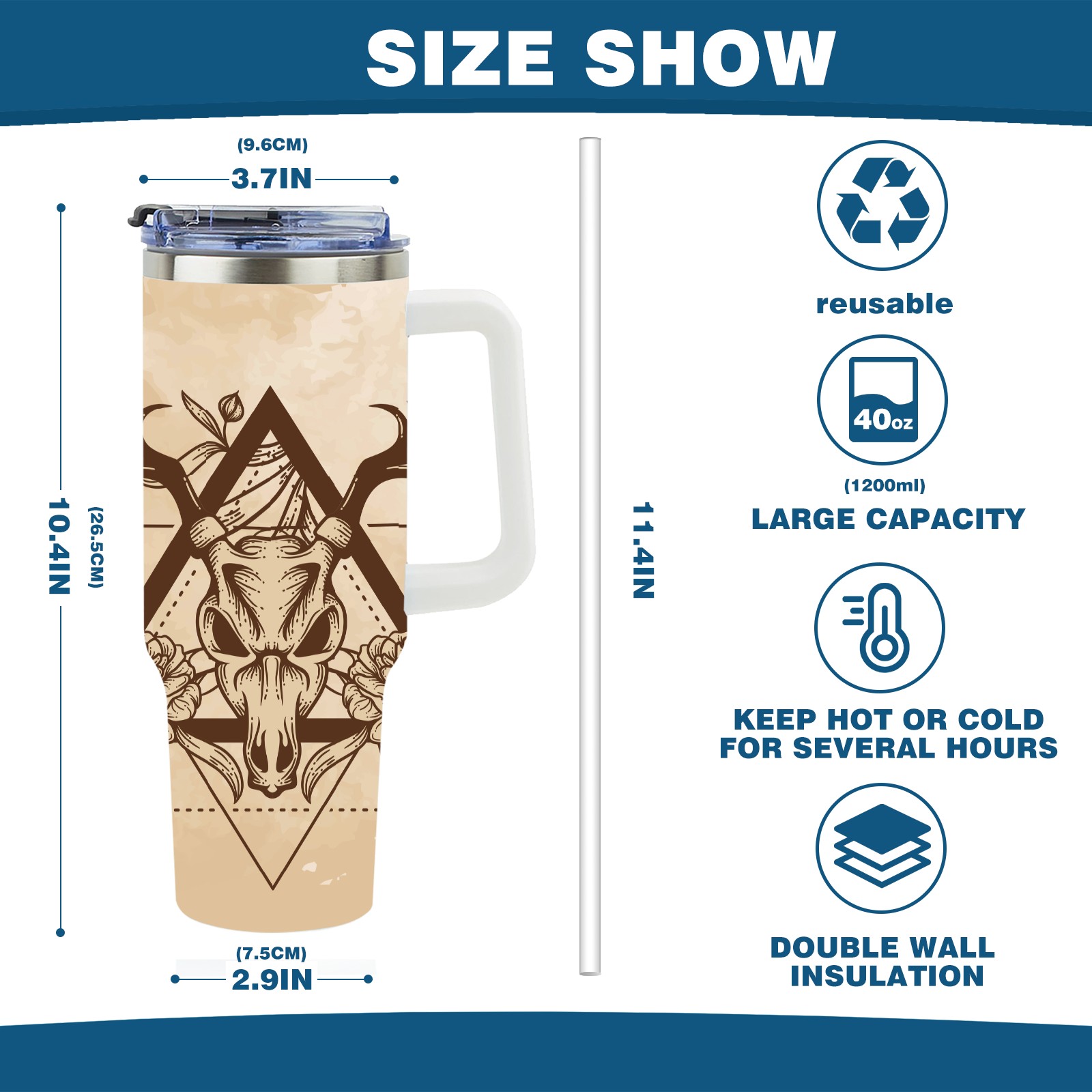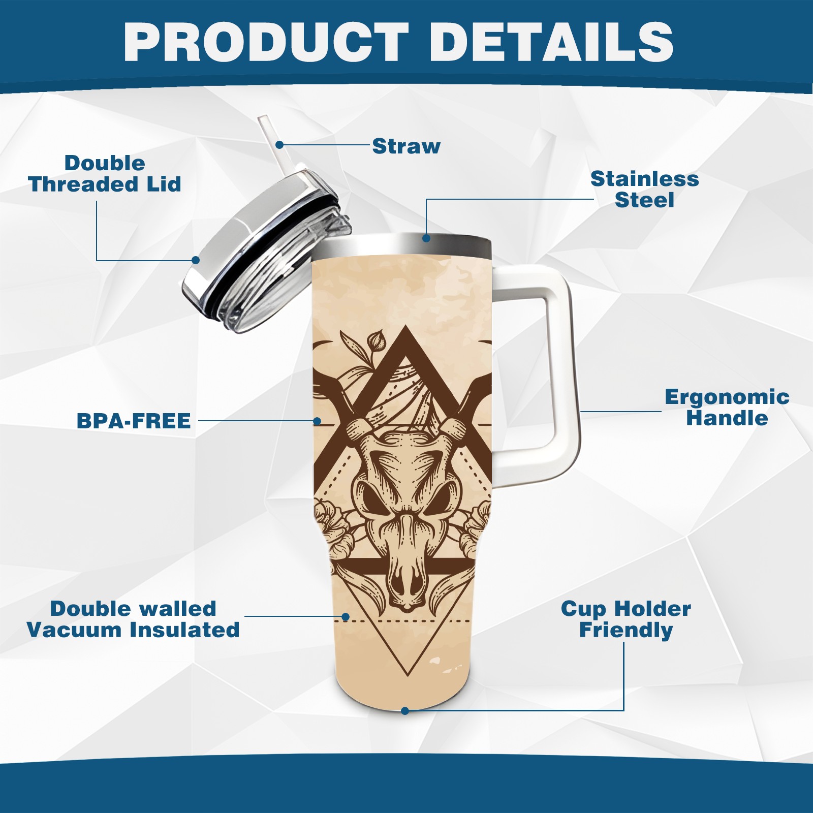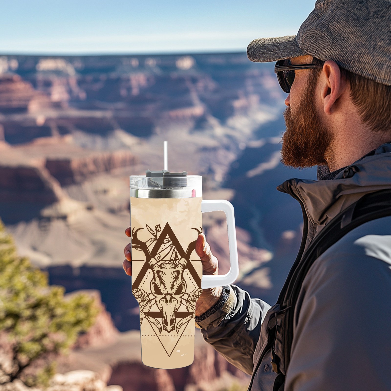 40 унций полностью напечатанный автомобильный стакан Vintage Old Deer Skull
