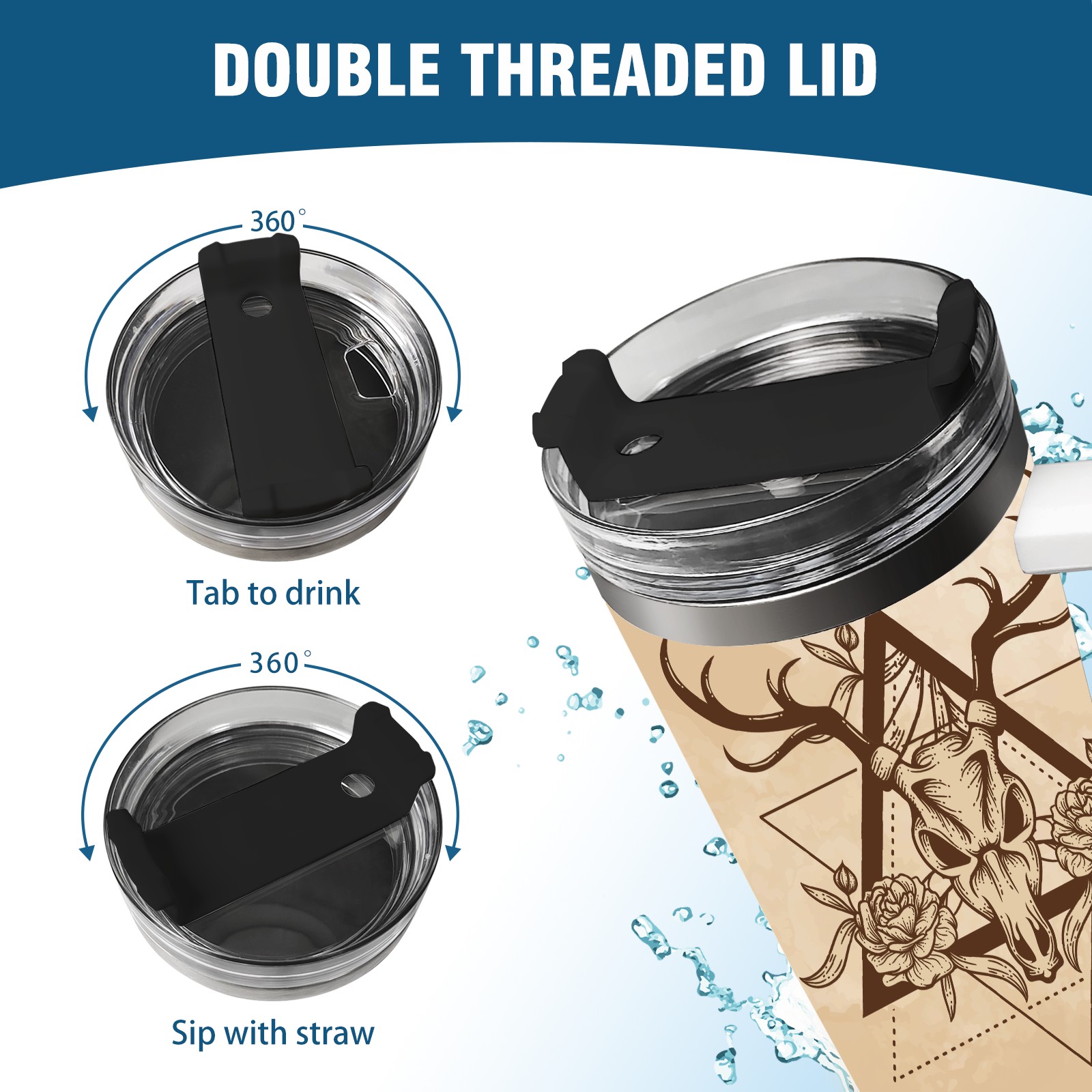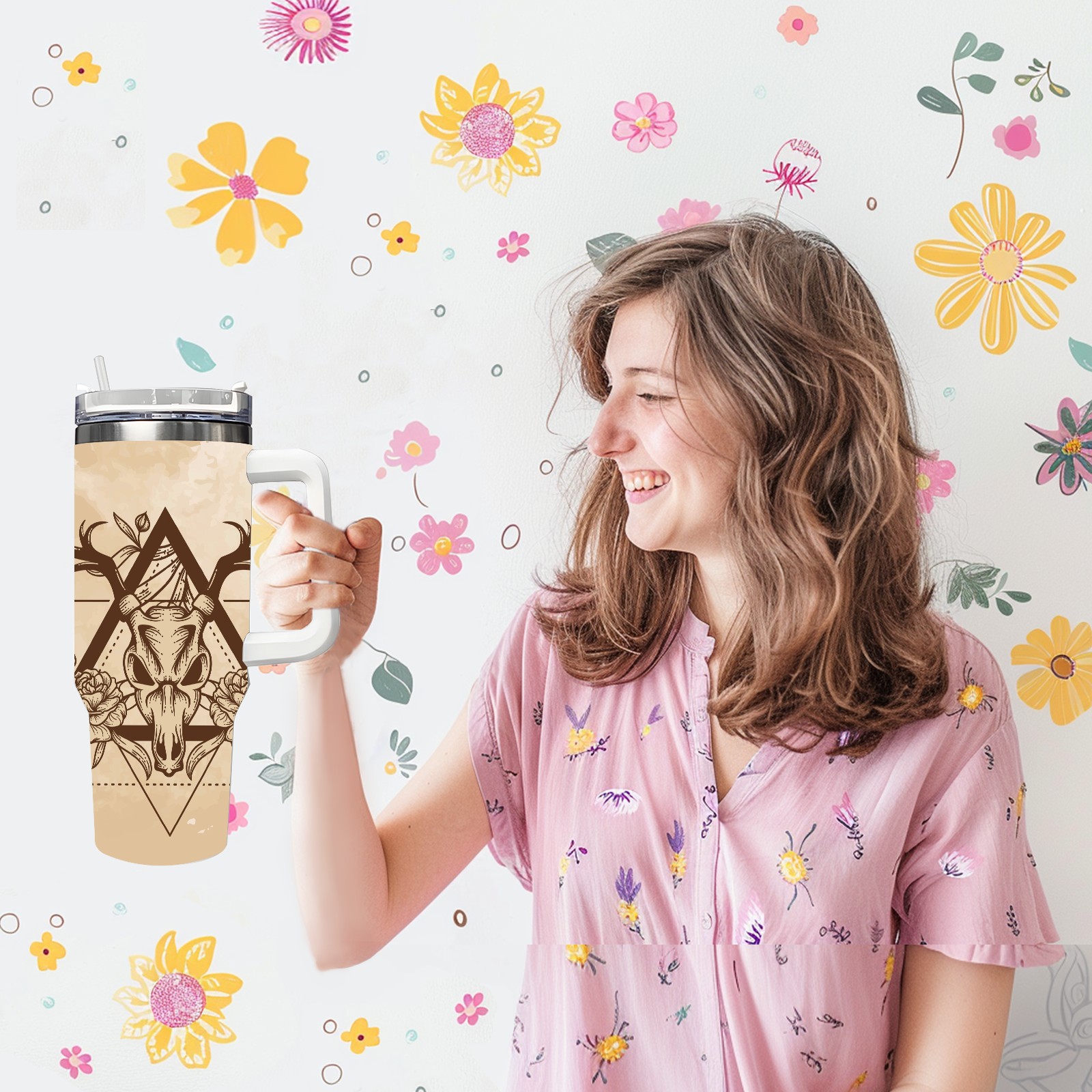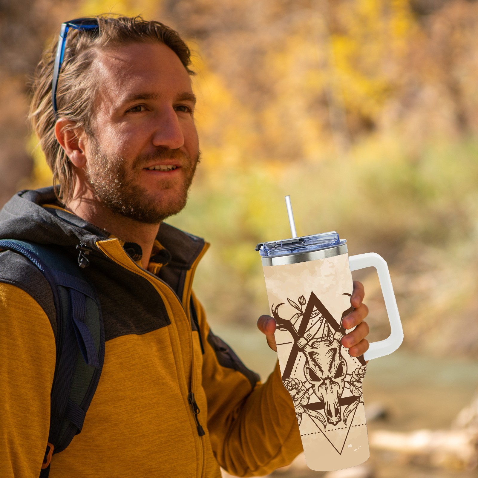 40 унций полностью напечатанный автомобильный стакан Vintage Old Deer Skull